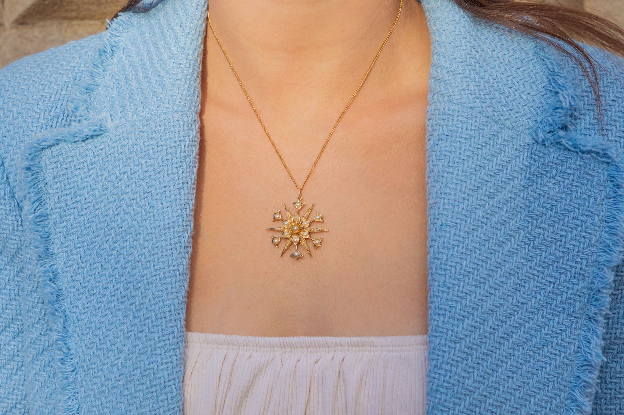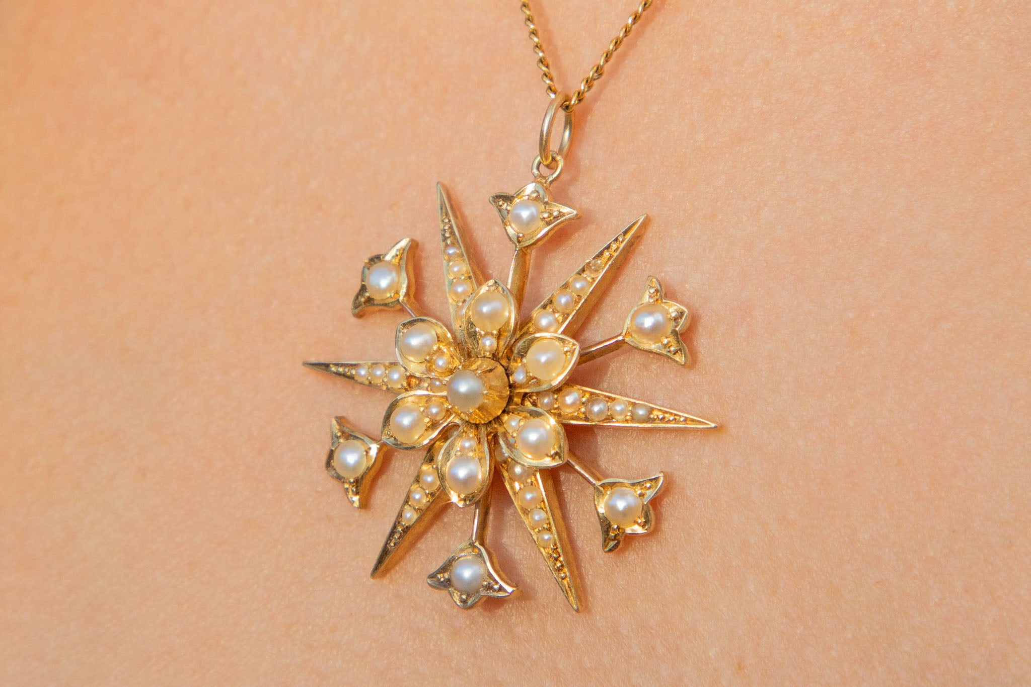 アンティーク 15ct ゴールド パール「スターバースト」ペンダント