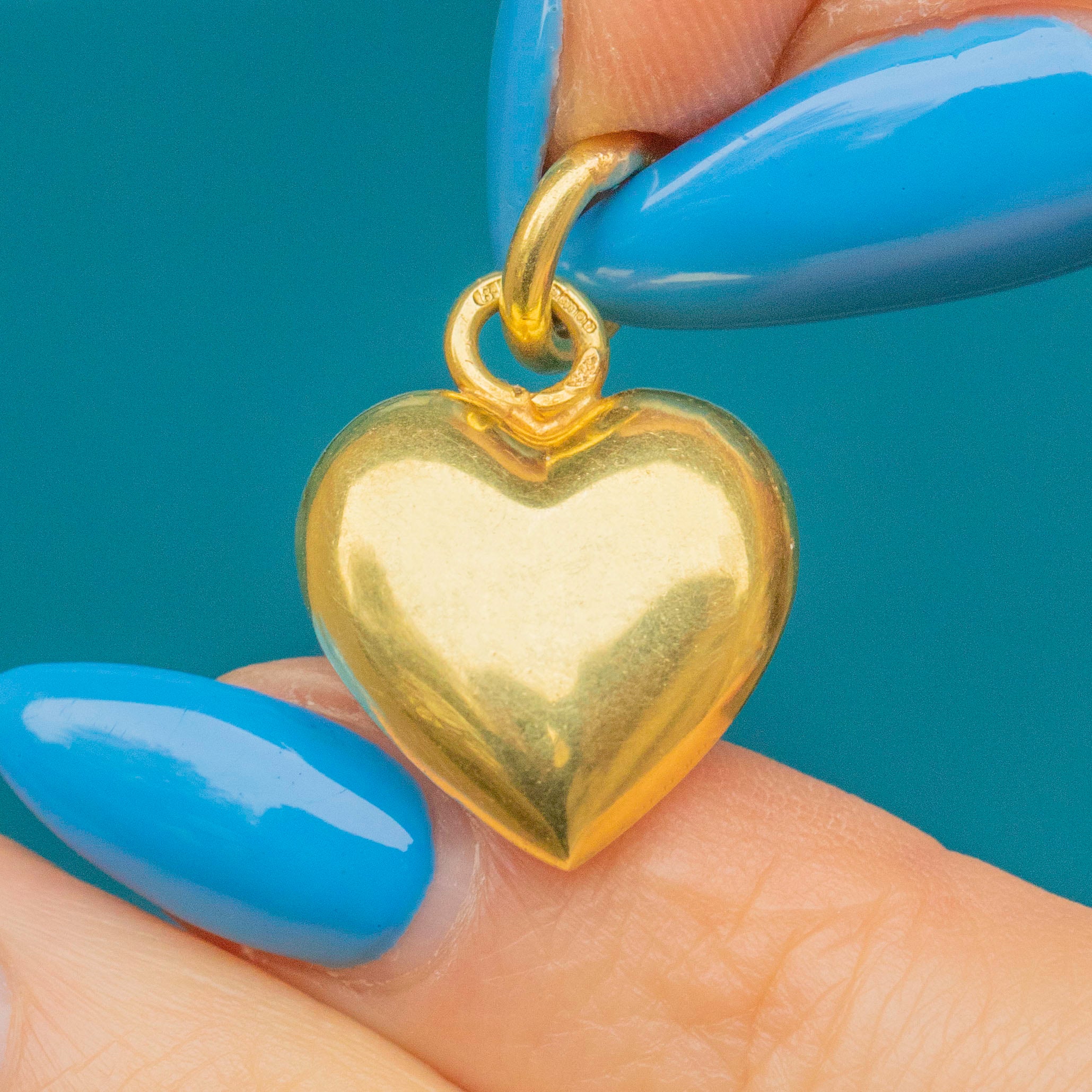 The cute puffy heart shape of this dinky charm is crafted from lustrous 15ct Gold that is so saturated that she can't be missed! She is lightweight and easy to wear, making for the perfect addition to your antique collection.