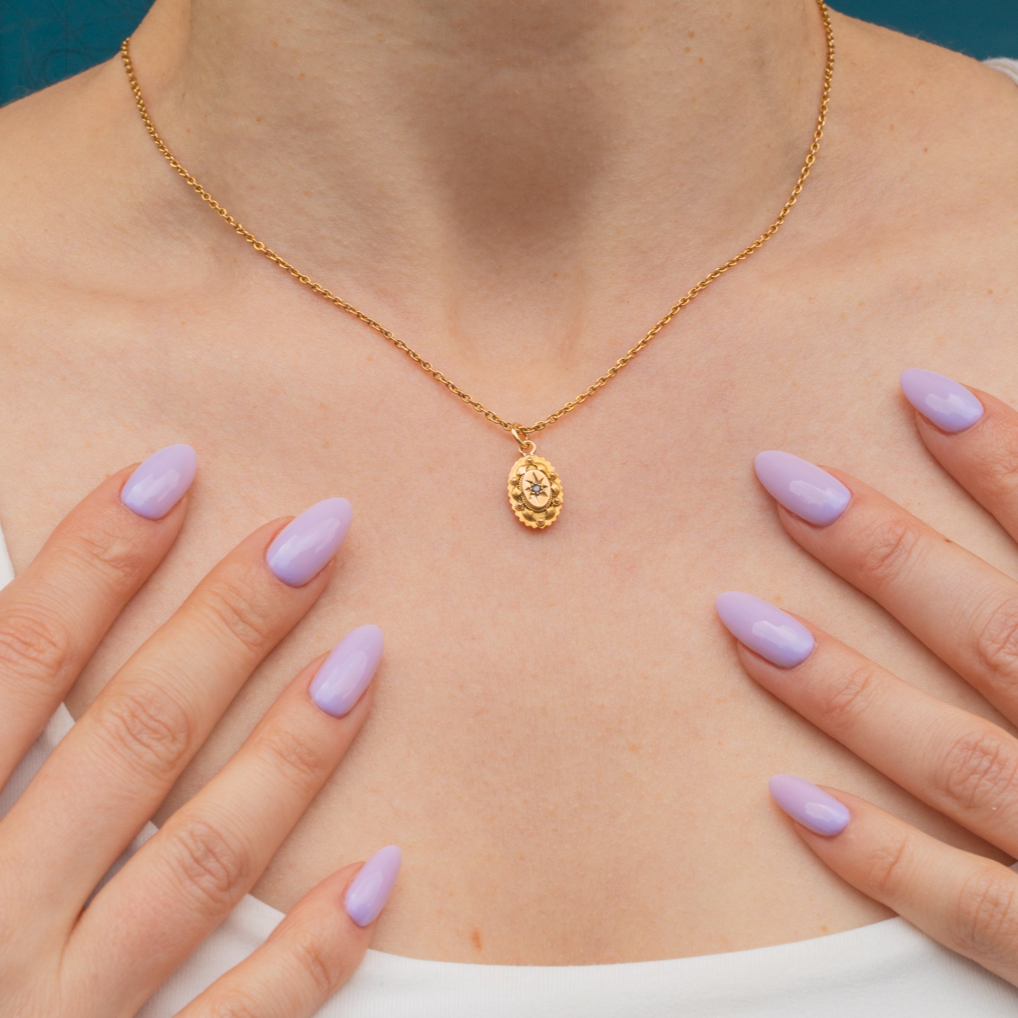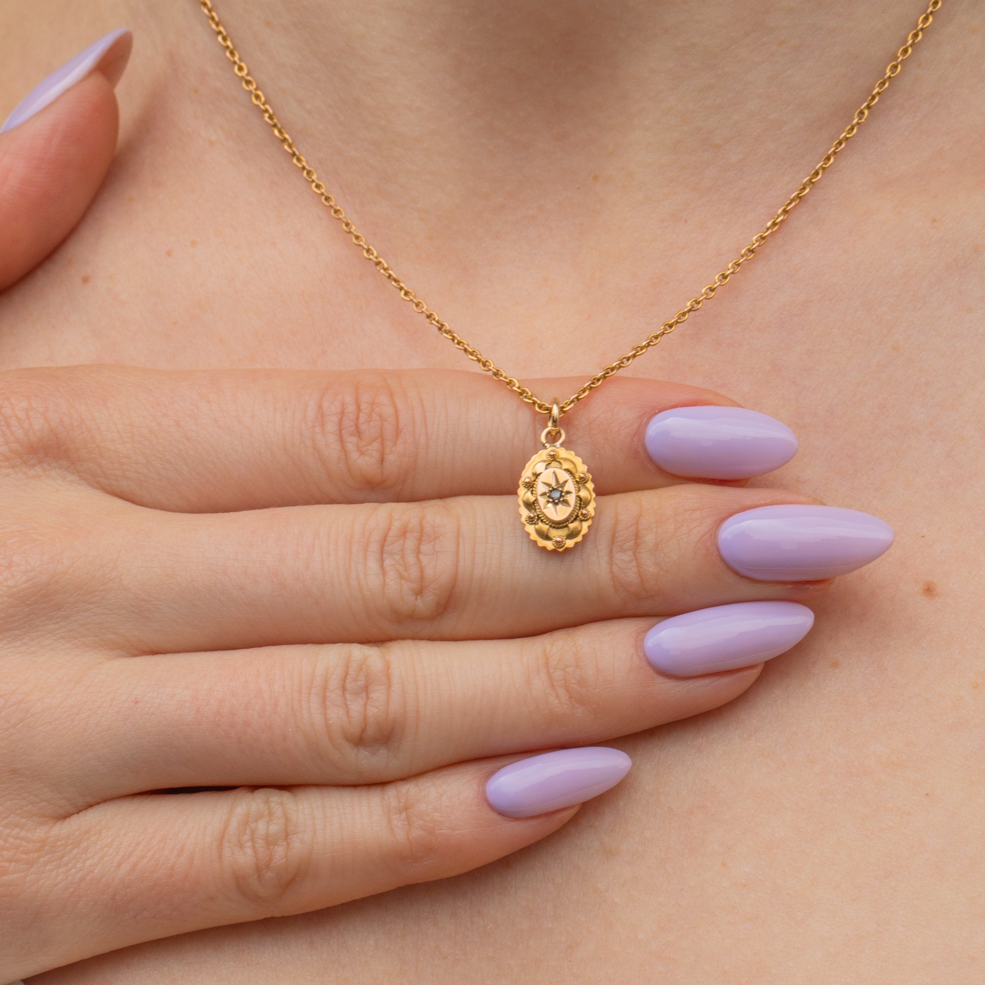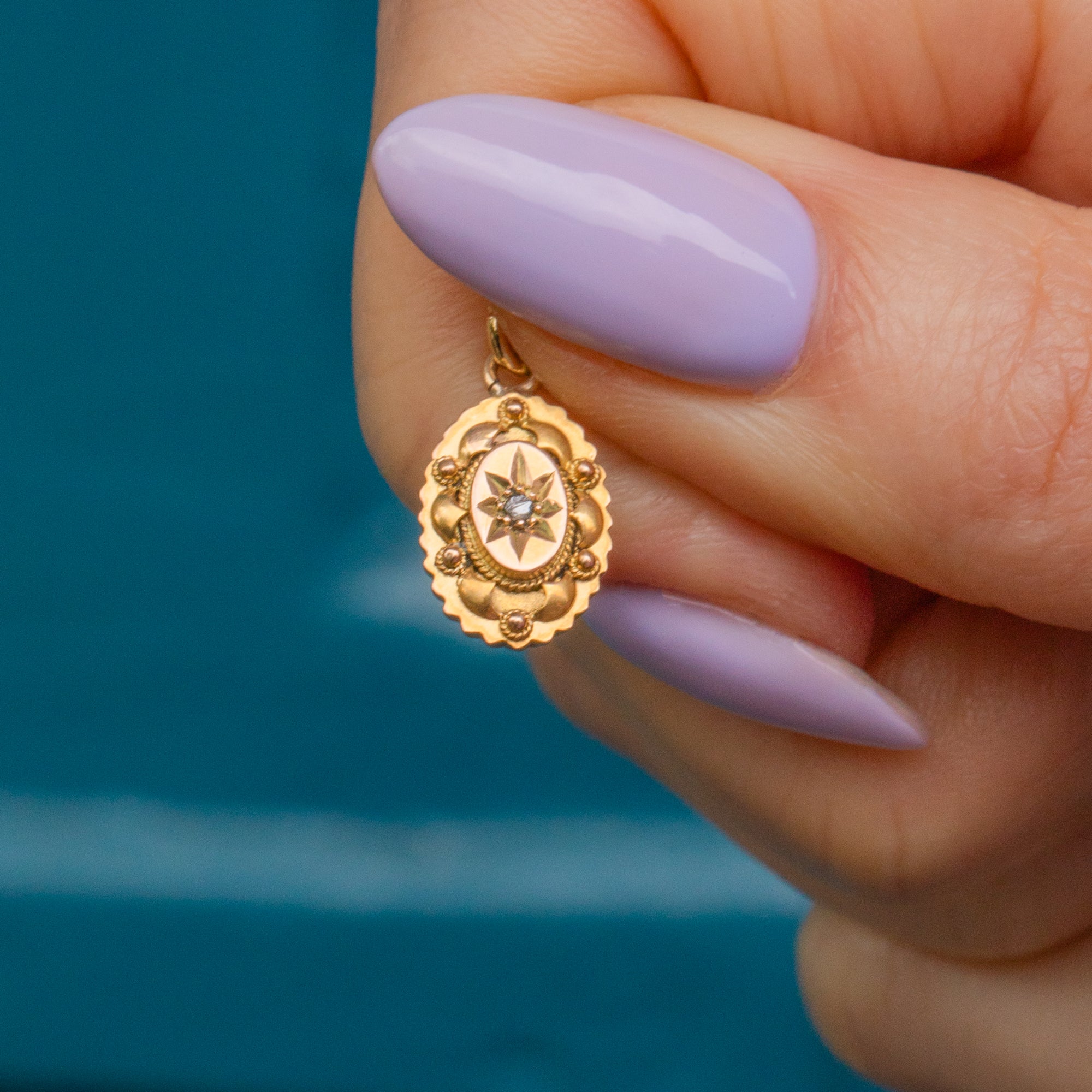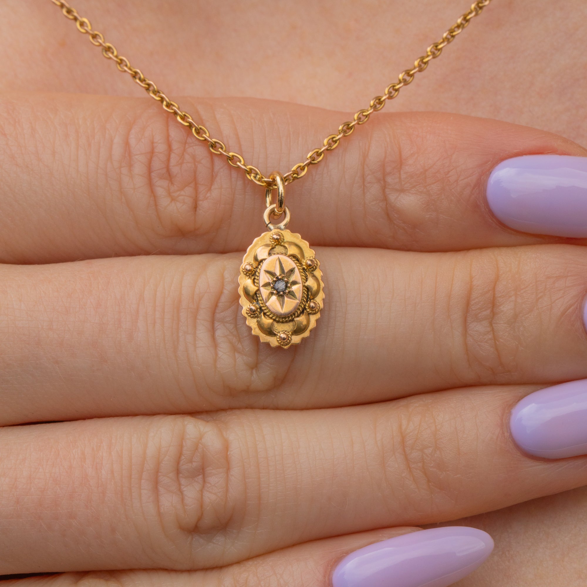 We adore this antique 15ct Gold rose-cut Diamond oval charm! With a sparkly Diamond that's too good to resist, this Etruscan revival beauty will feel right at home in your jewellery box.