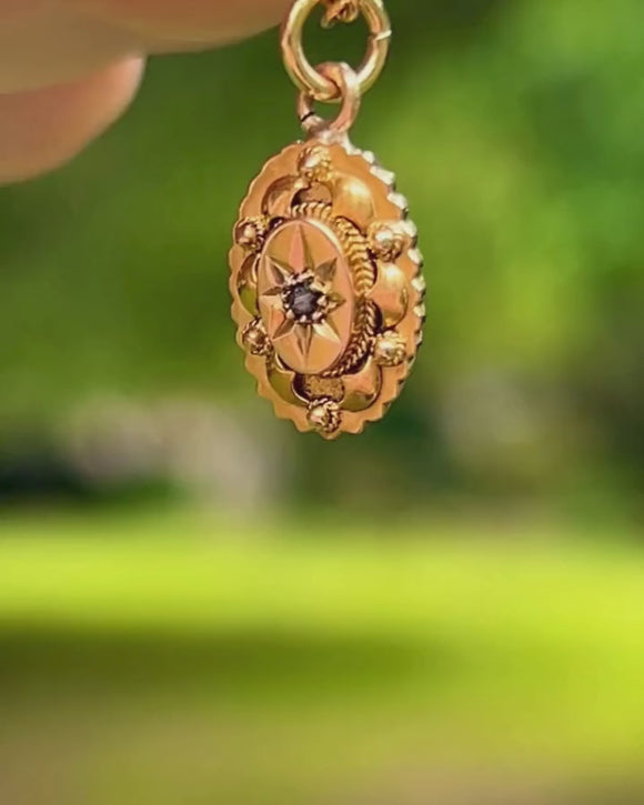 Antique 15ct Gold Rose-Cut Diamond Oval Charm