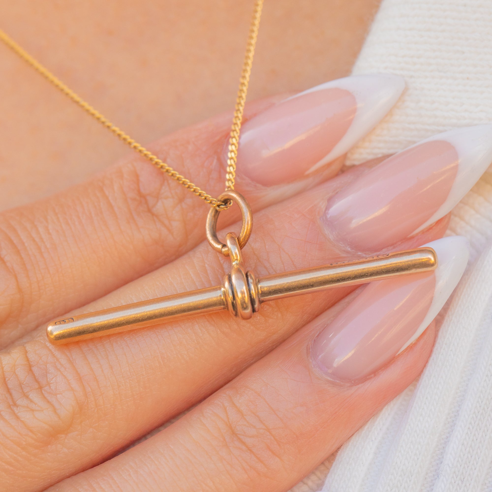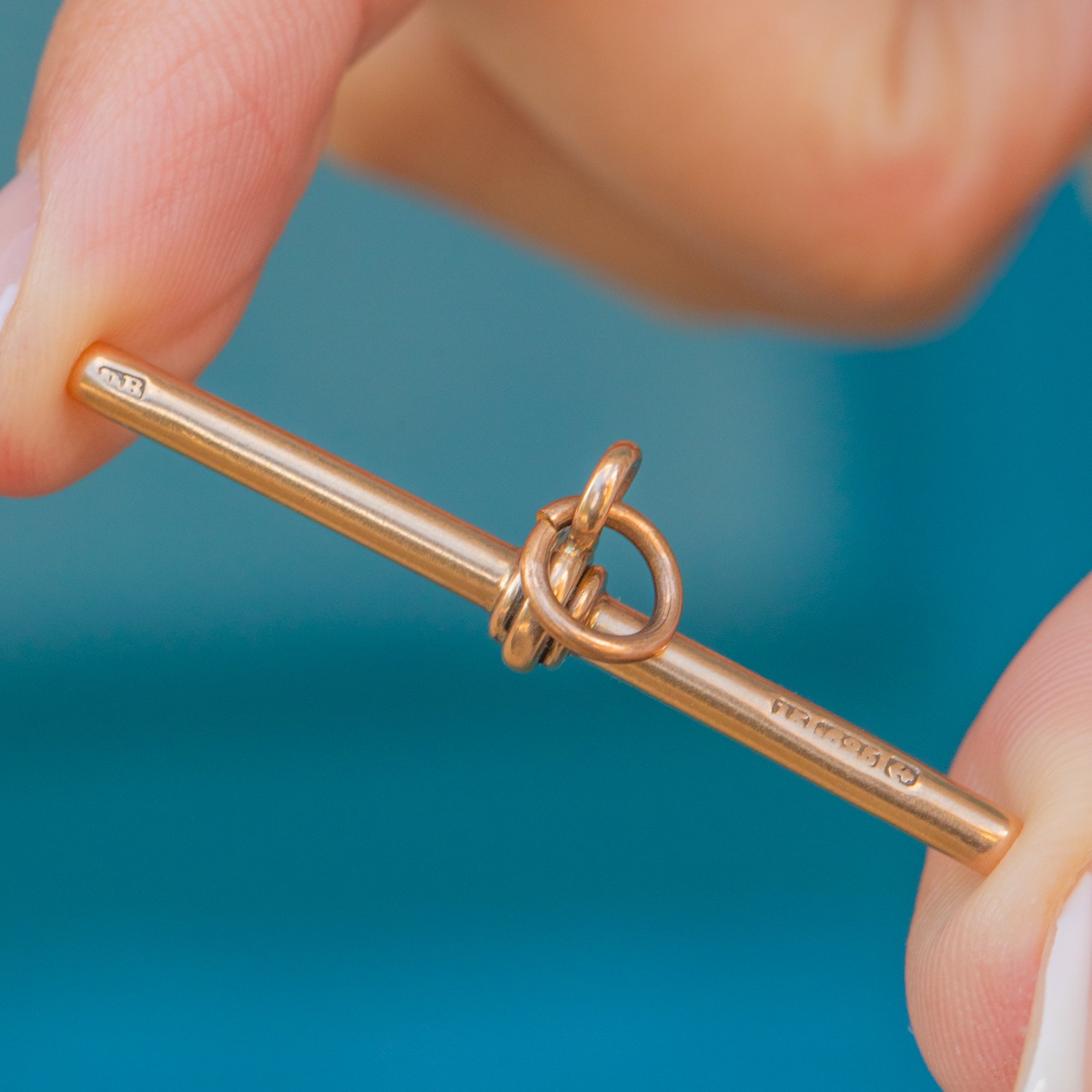 This Antique Victorian T-bar pendant is a versatile and highly collectible piece of jewellery history. Crafted in rich 15ct Gold, the smooth bar form glows with a warm hue, offering timeless simplicity and elegance. Originally designed as part of an Albert chain, T-bars are now treasured as pendants and charms, perfect for layering or wearing as a focal point.