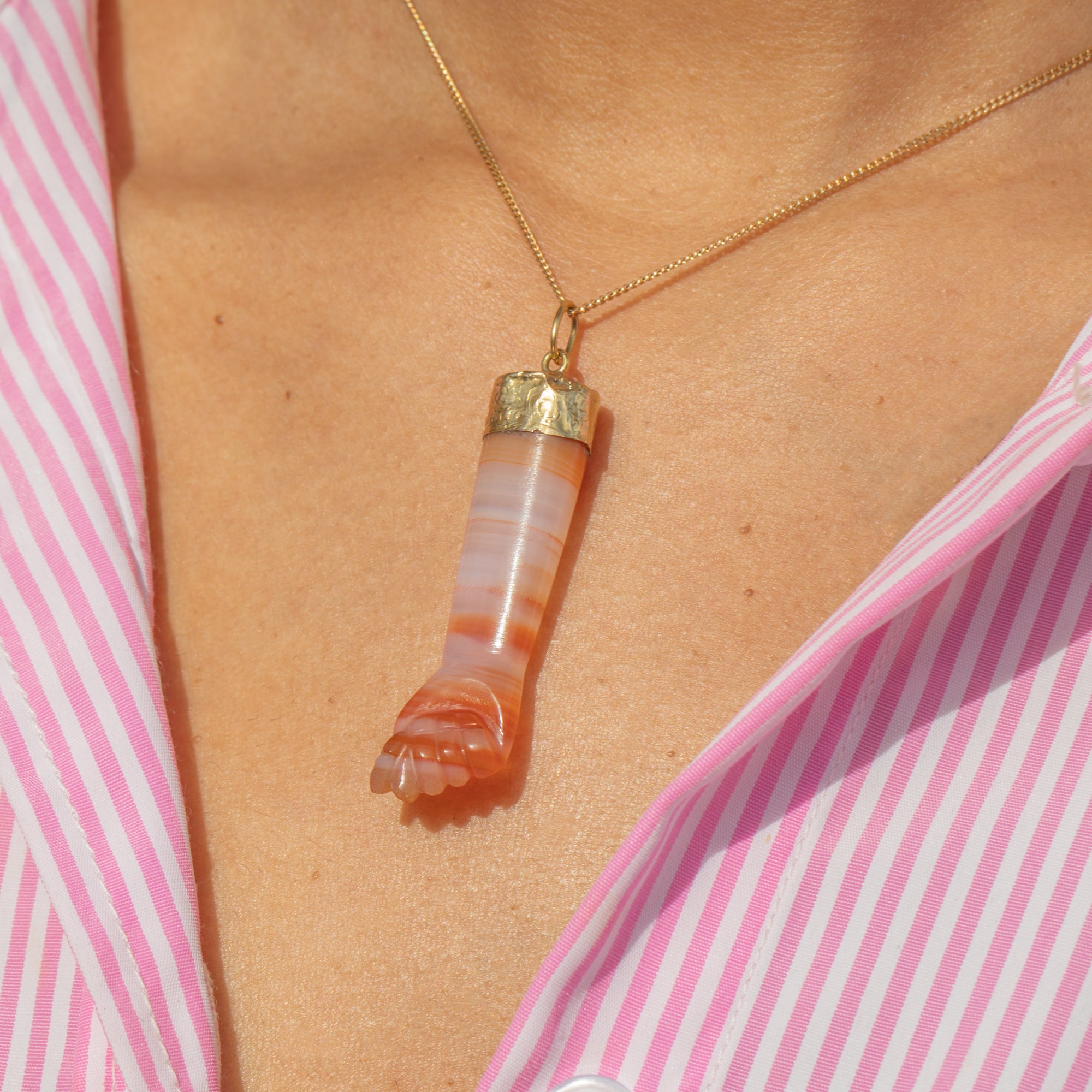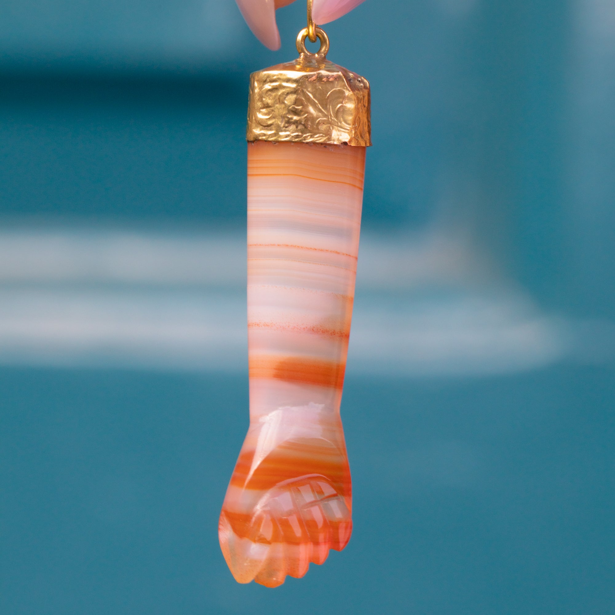 アンティーク 18ct ゴールド アゲート フィガ ラッキー ペンダント