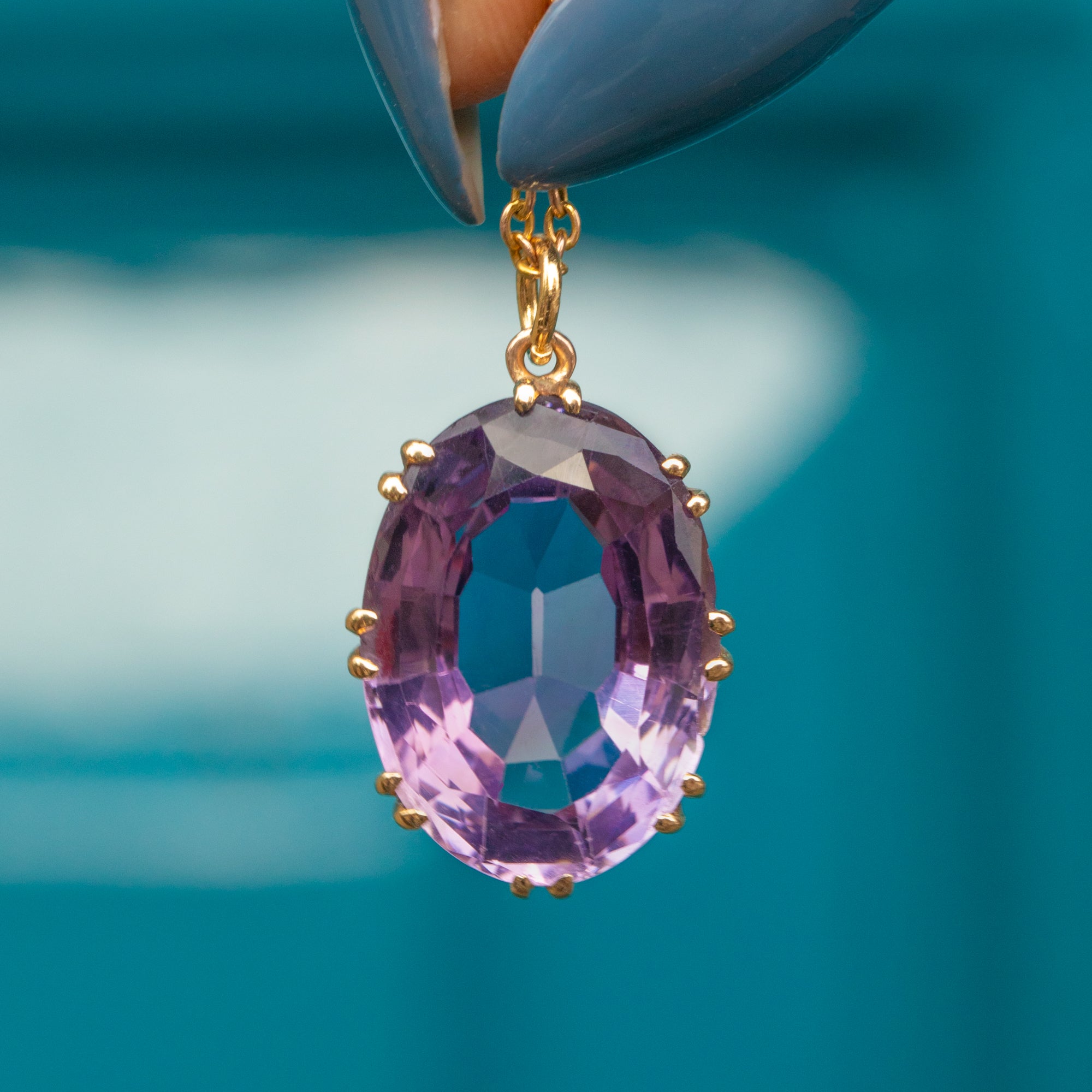 アンティーク 18ct ゴールド アメジスト ペンダント、13.00ct。