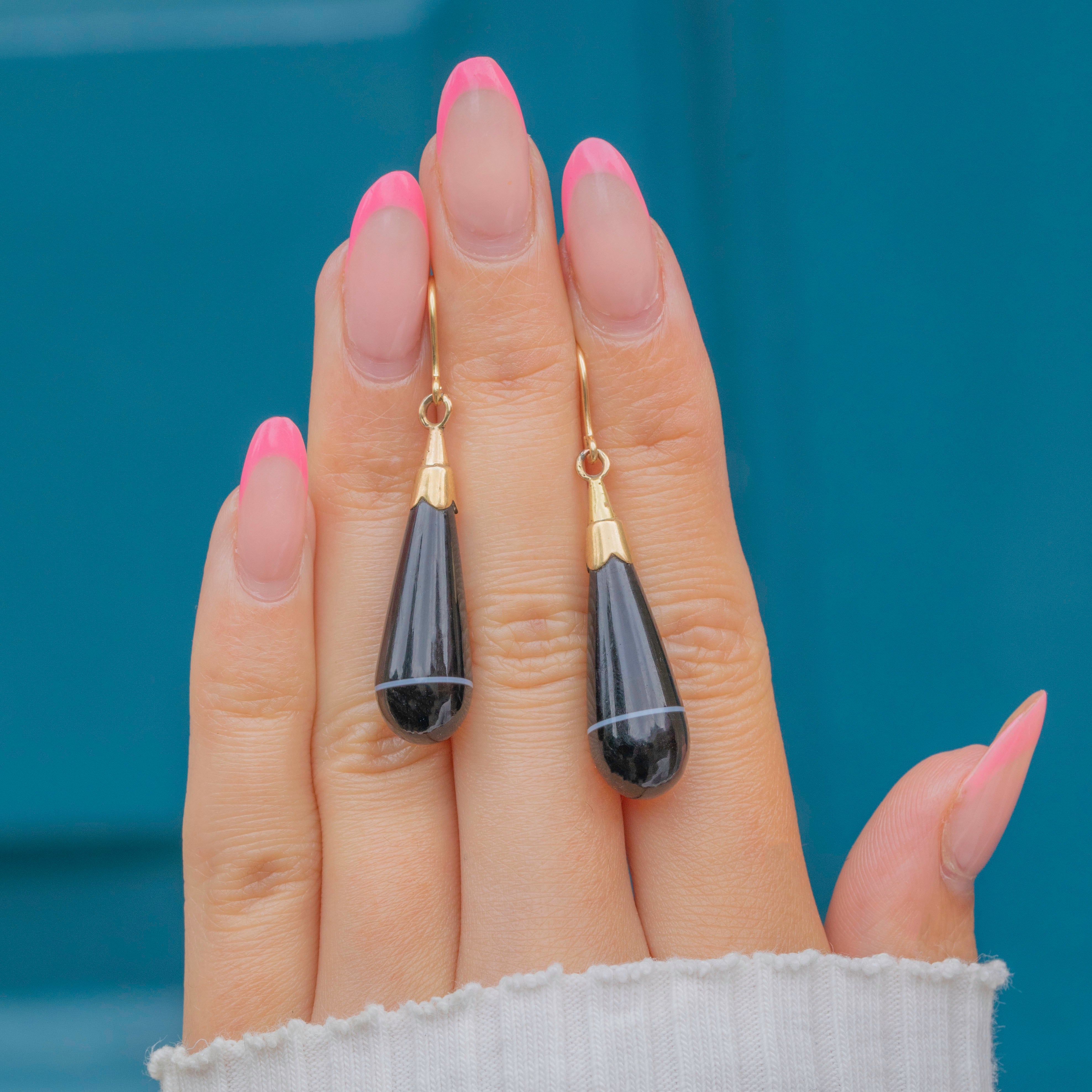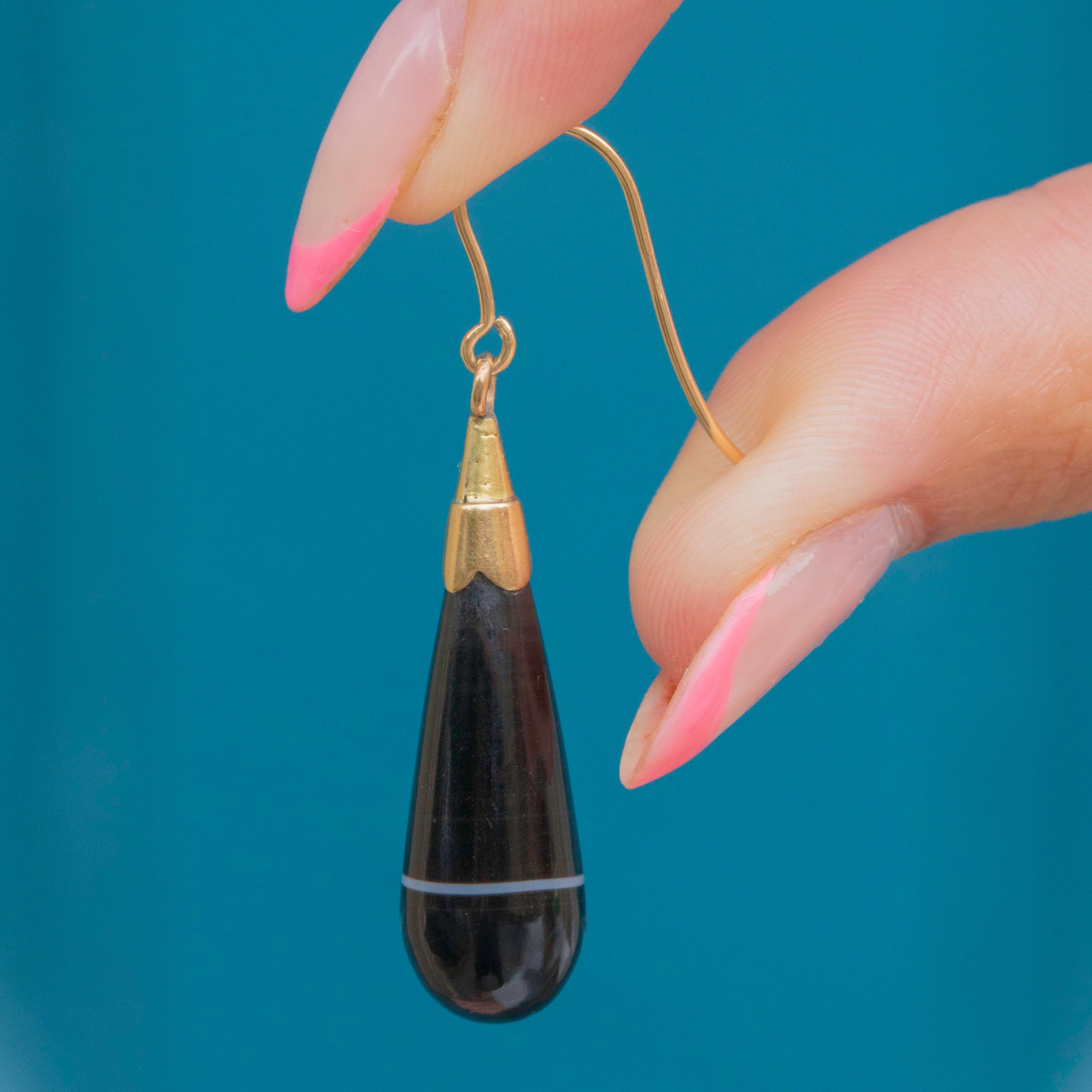 These Victorian 18ct Gold banded Agate drop earrings are brimming with antique delight!