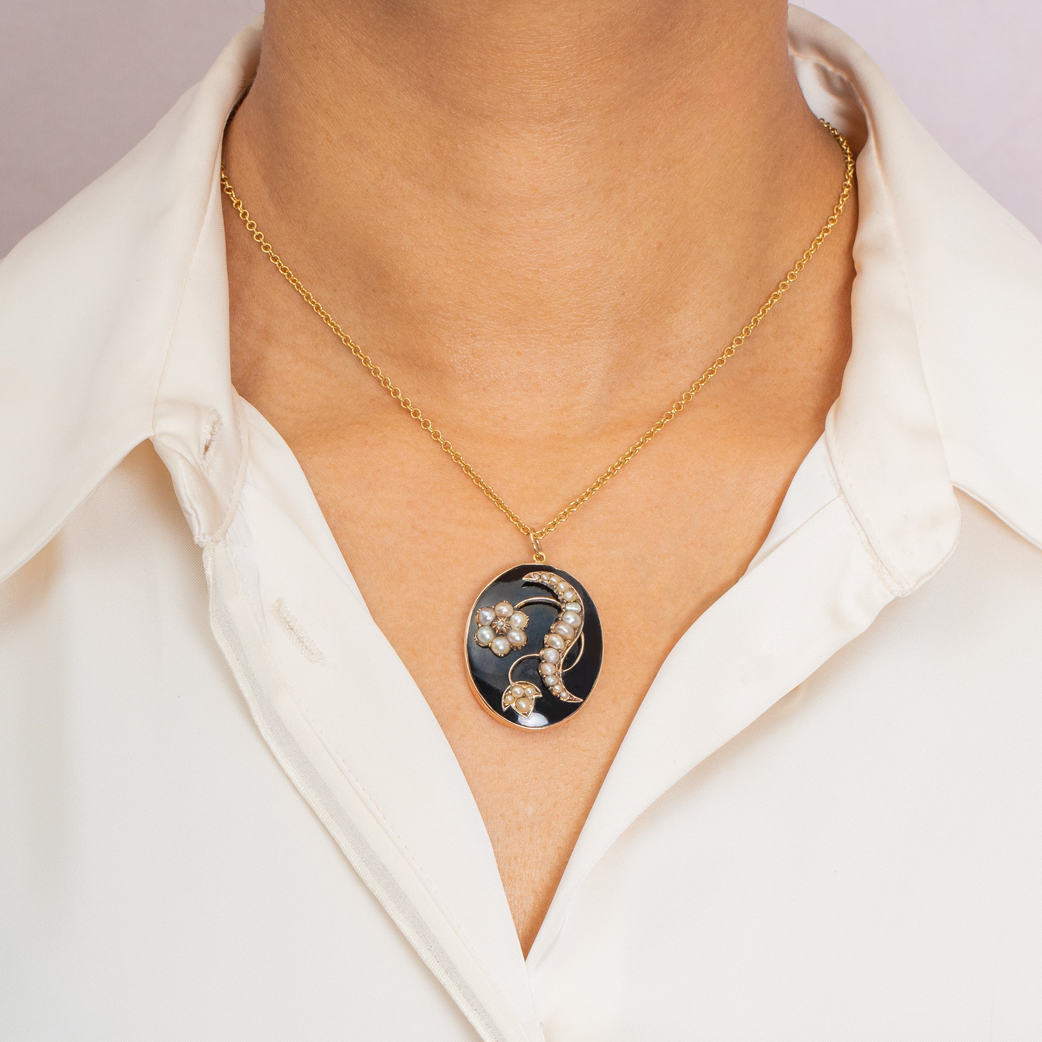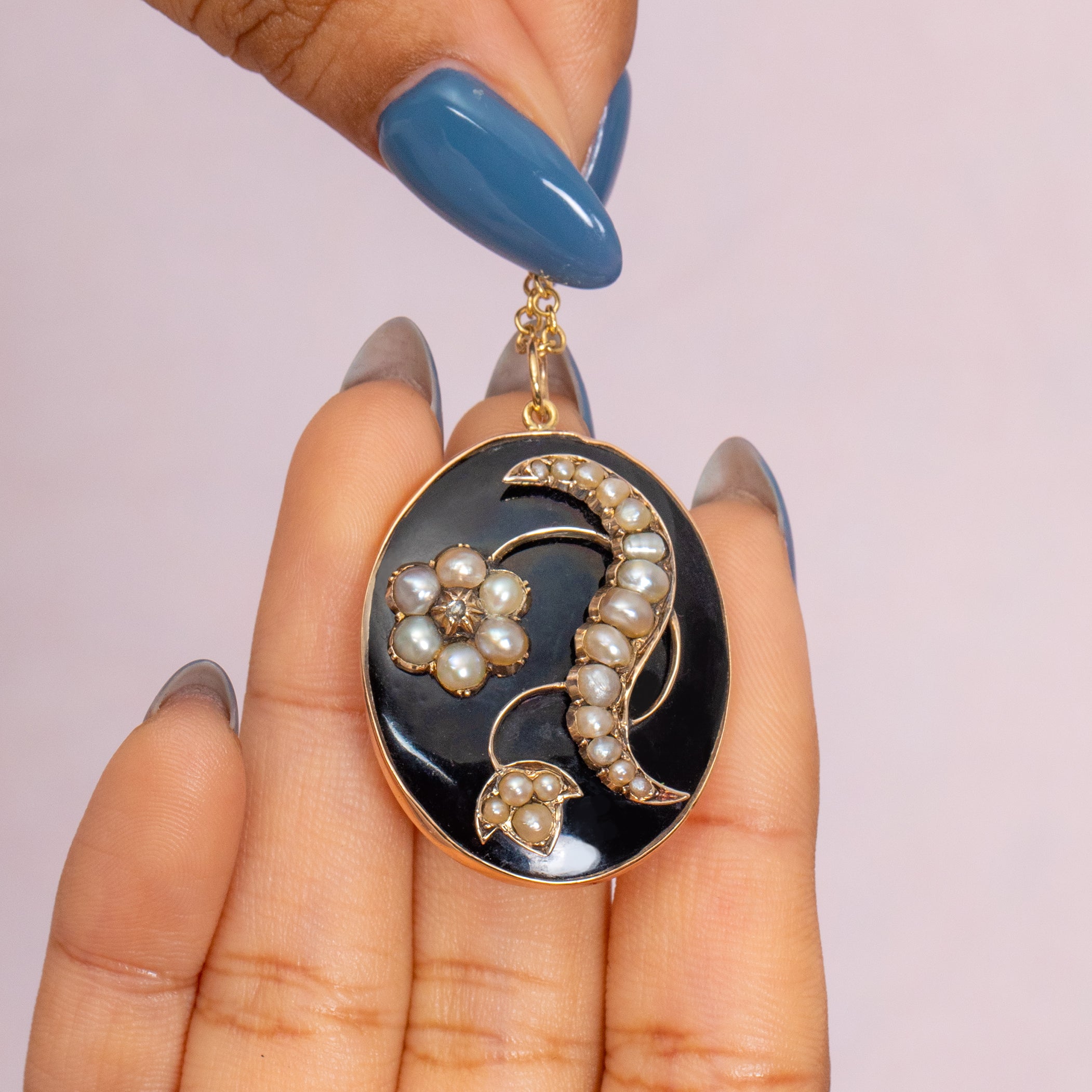 アンティーク 18ct ゴールド ブラックエナメル パール ロケット
