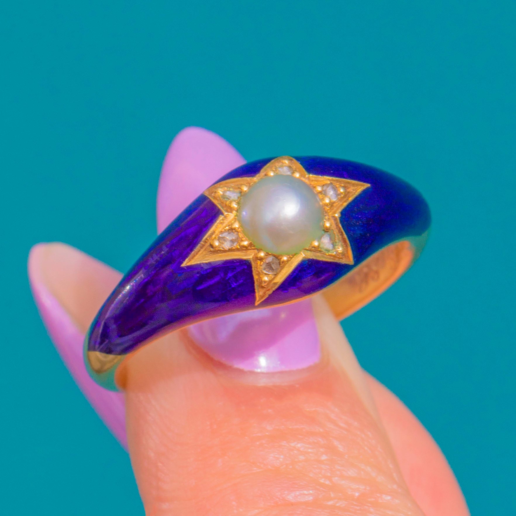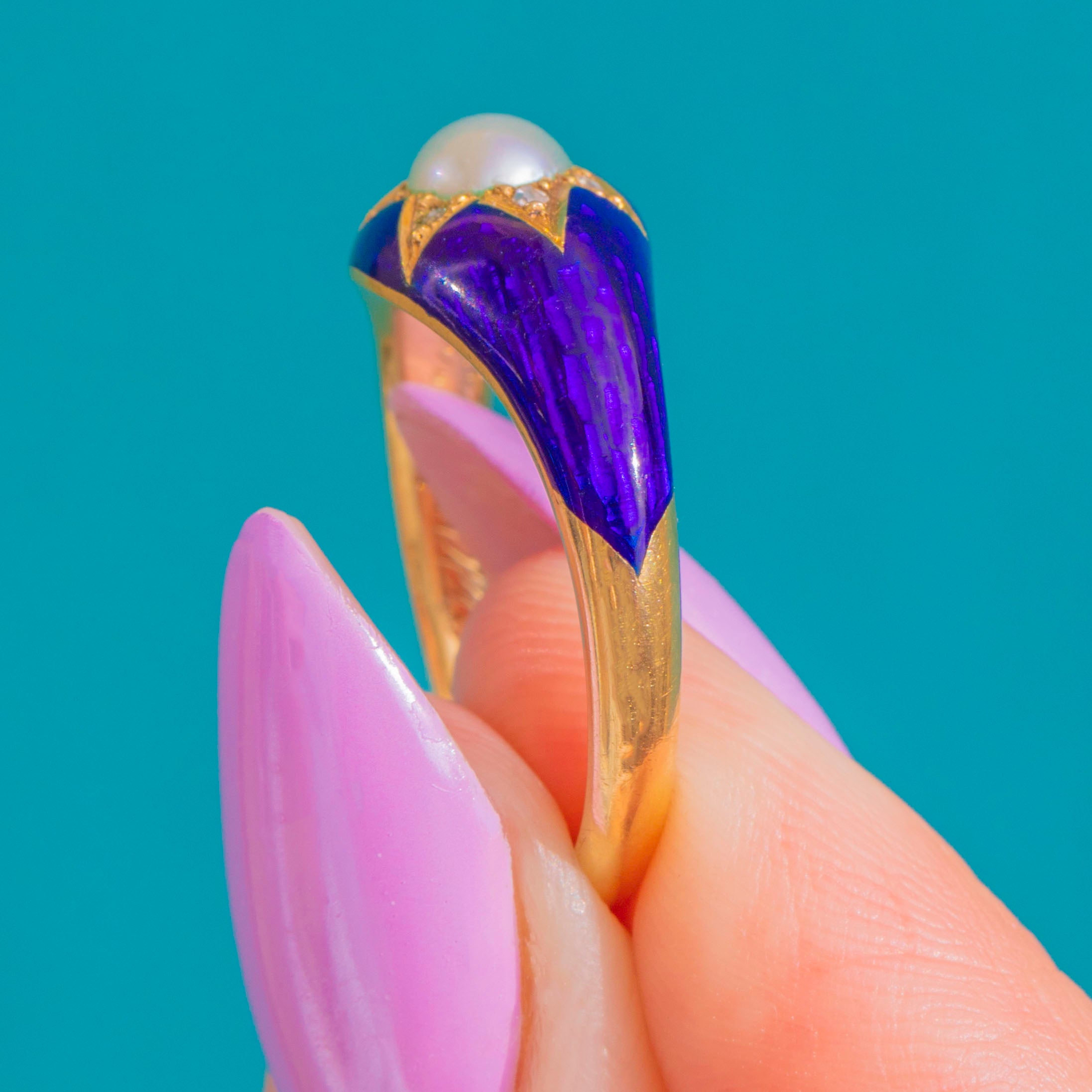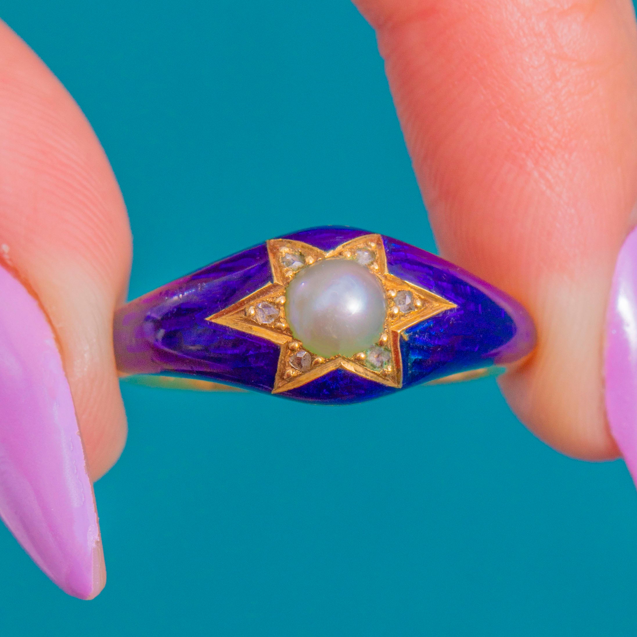 アンティーク 18ct ゴールド ブルーエナメル パール ダイヤモンド スターリング - 1857年銘入り