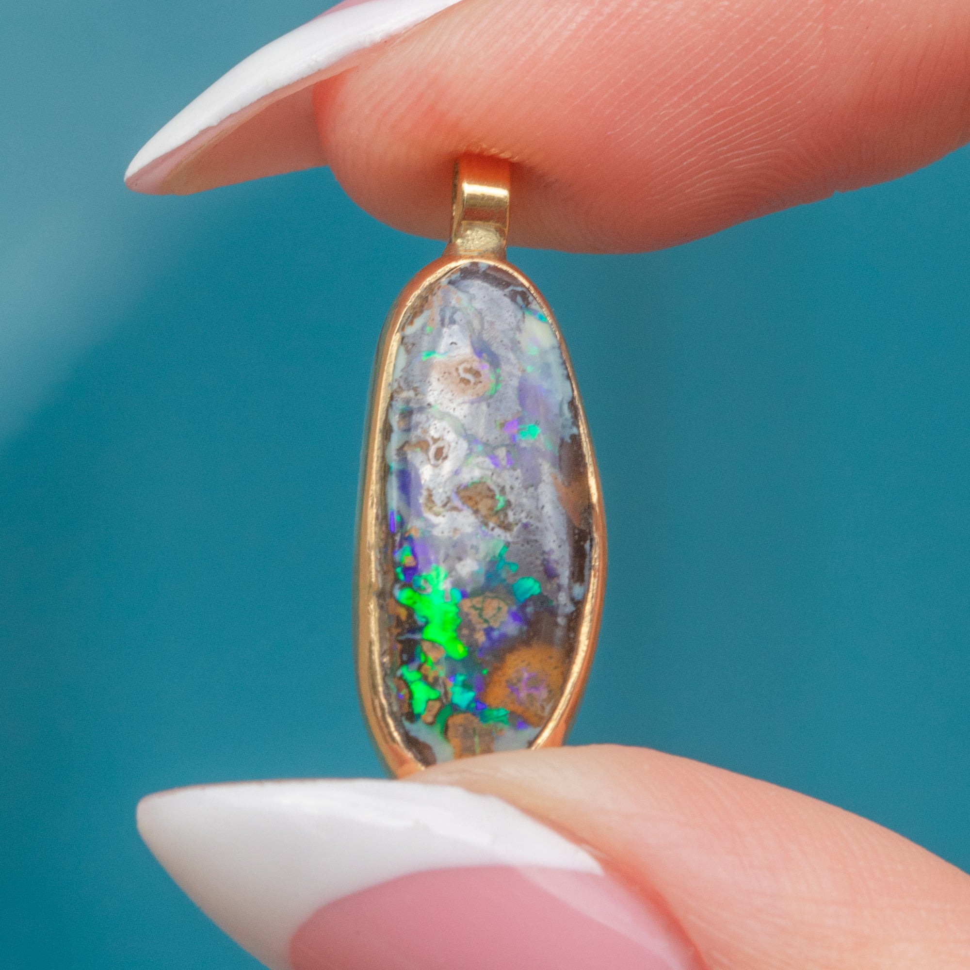 Crafted from buttery 18ct Gold, this Victorian charm flaunts a magnificent oval Boulder Opal.