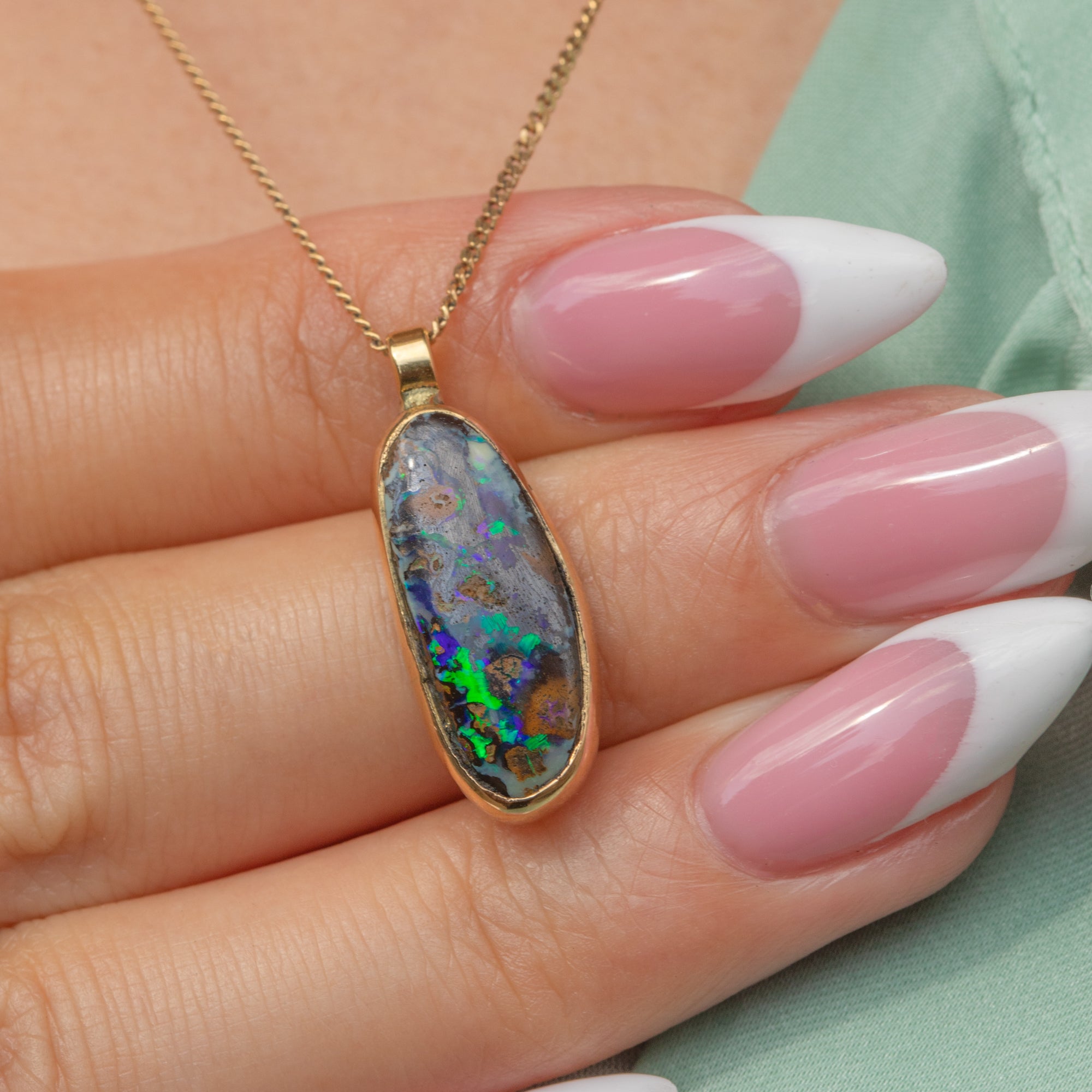 MATERIALS: Tests as 18ct Gold, Boulder Opal.