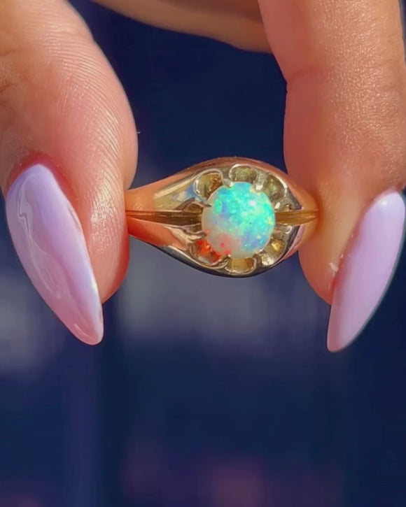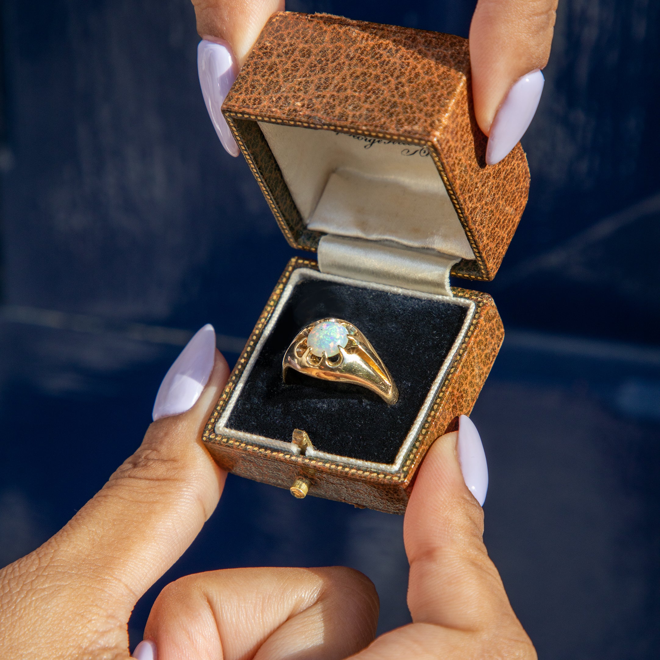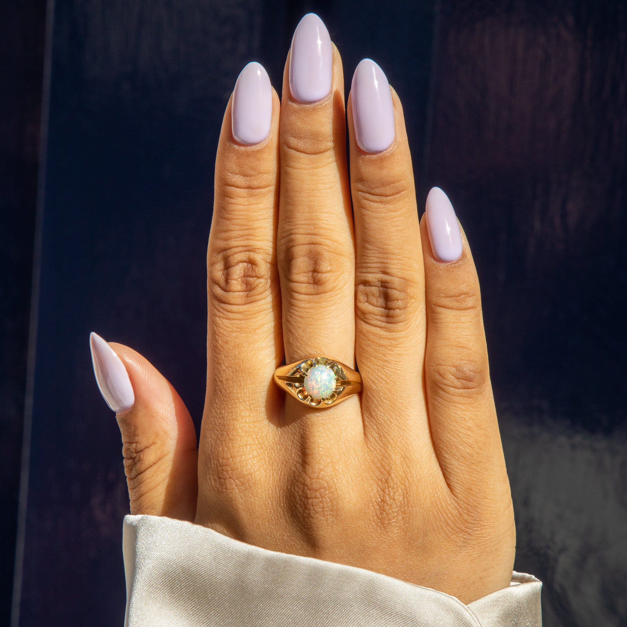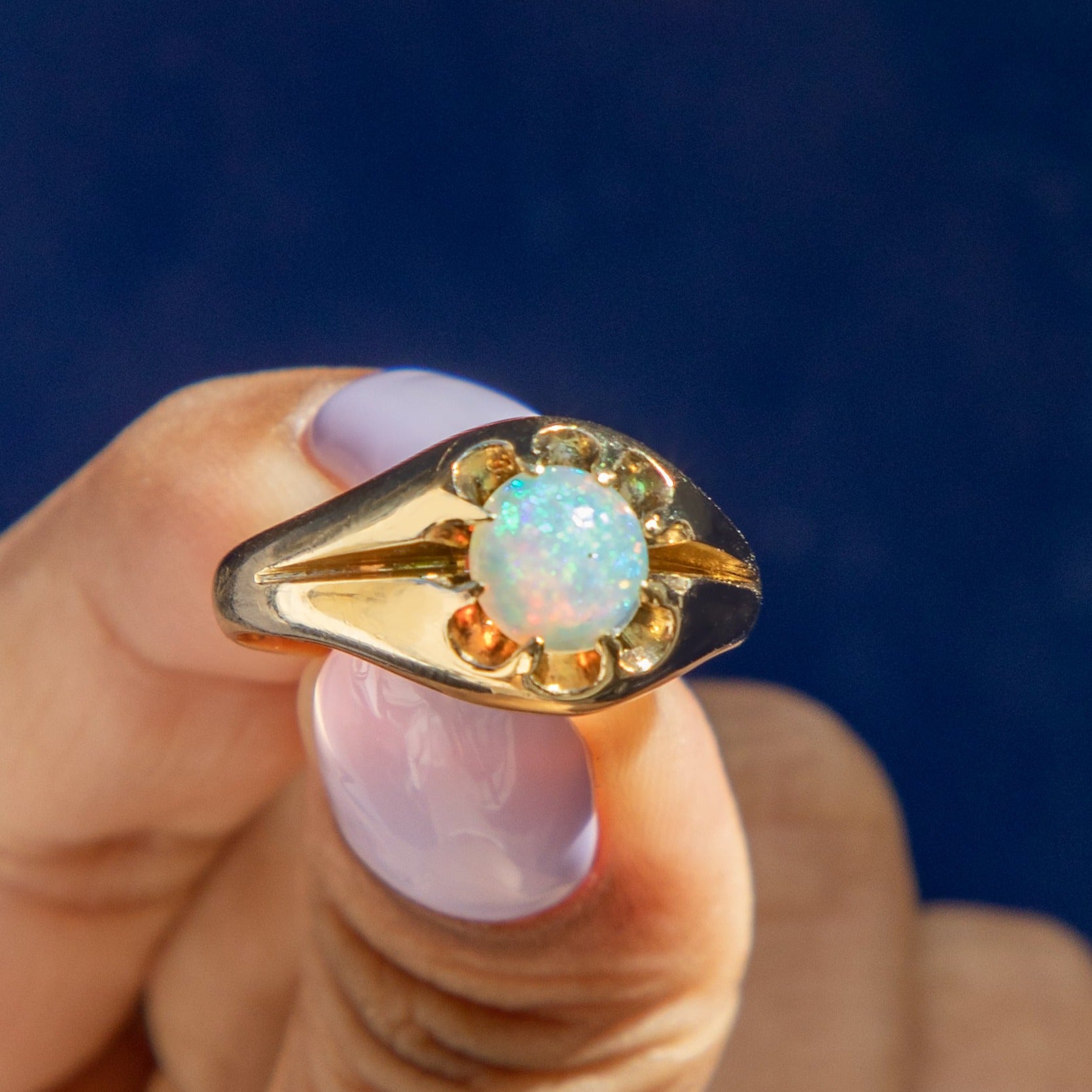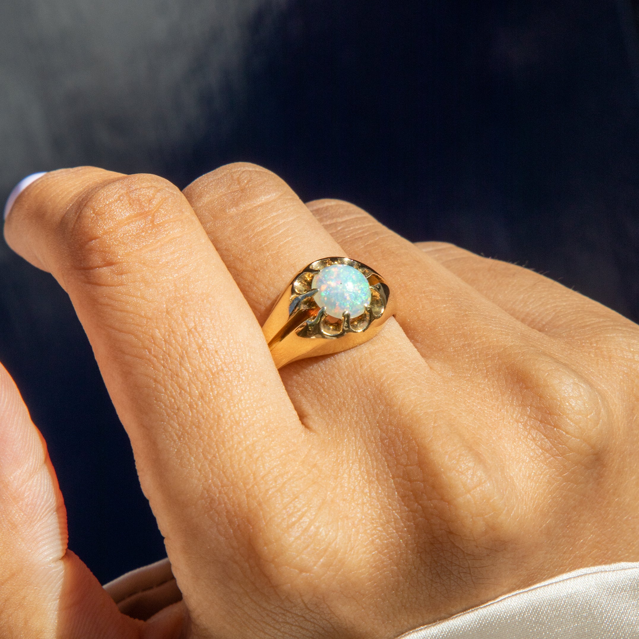 アンティーク 18ct ゴールド バターカップ セット オパール リング、0.45ct