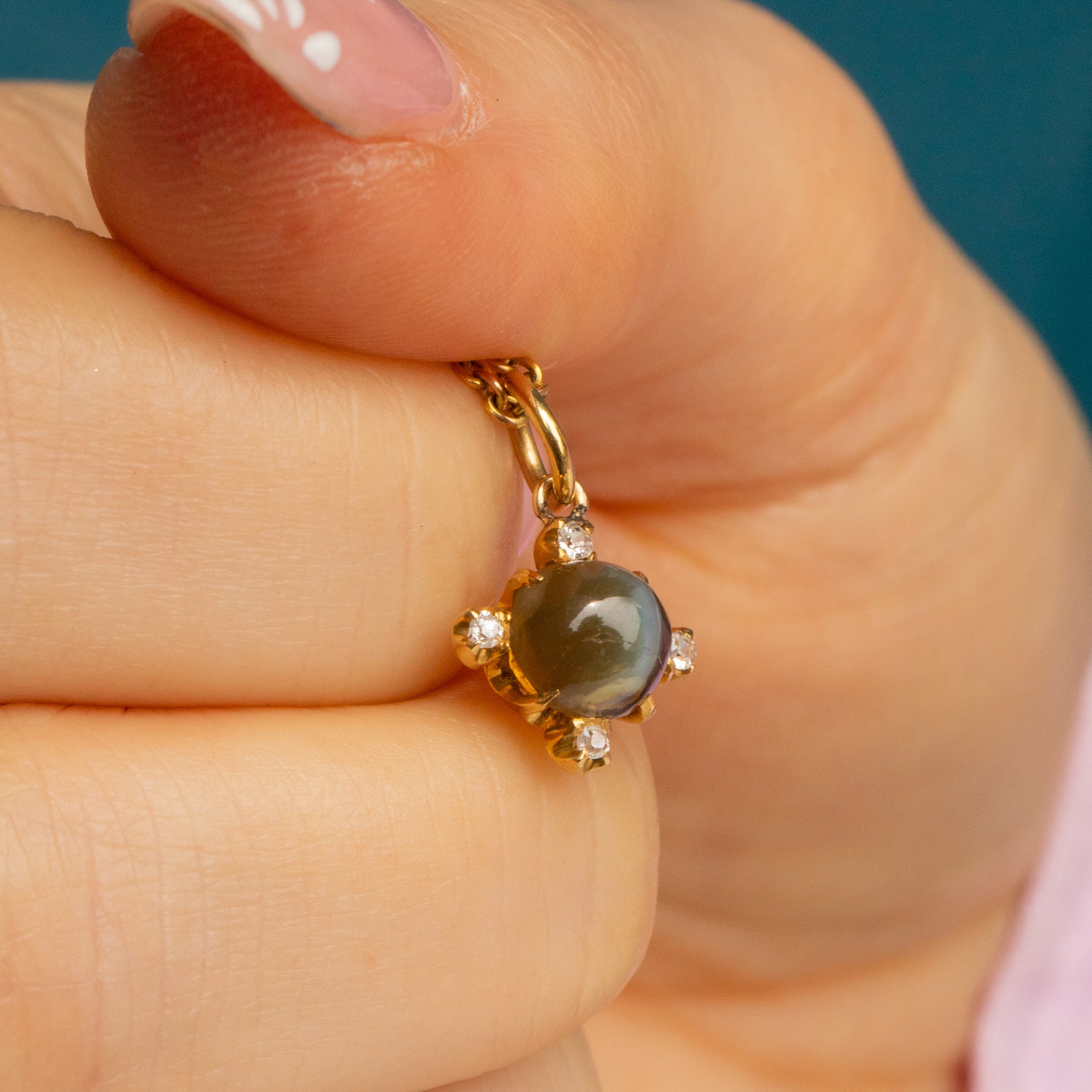 Antique 18ct Gold Cat's Eye Agate Diamond Charm