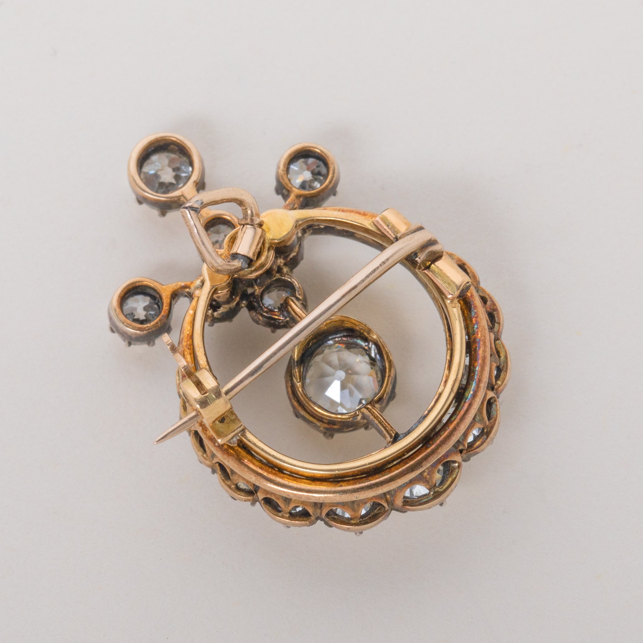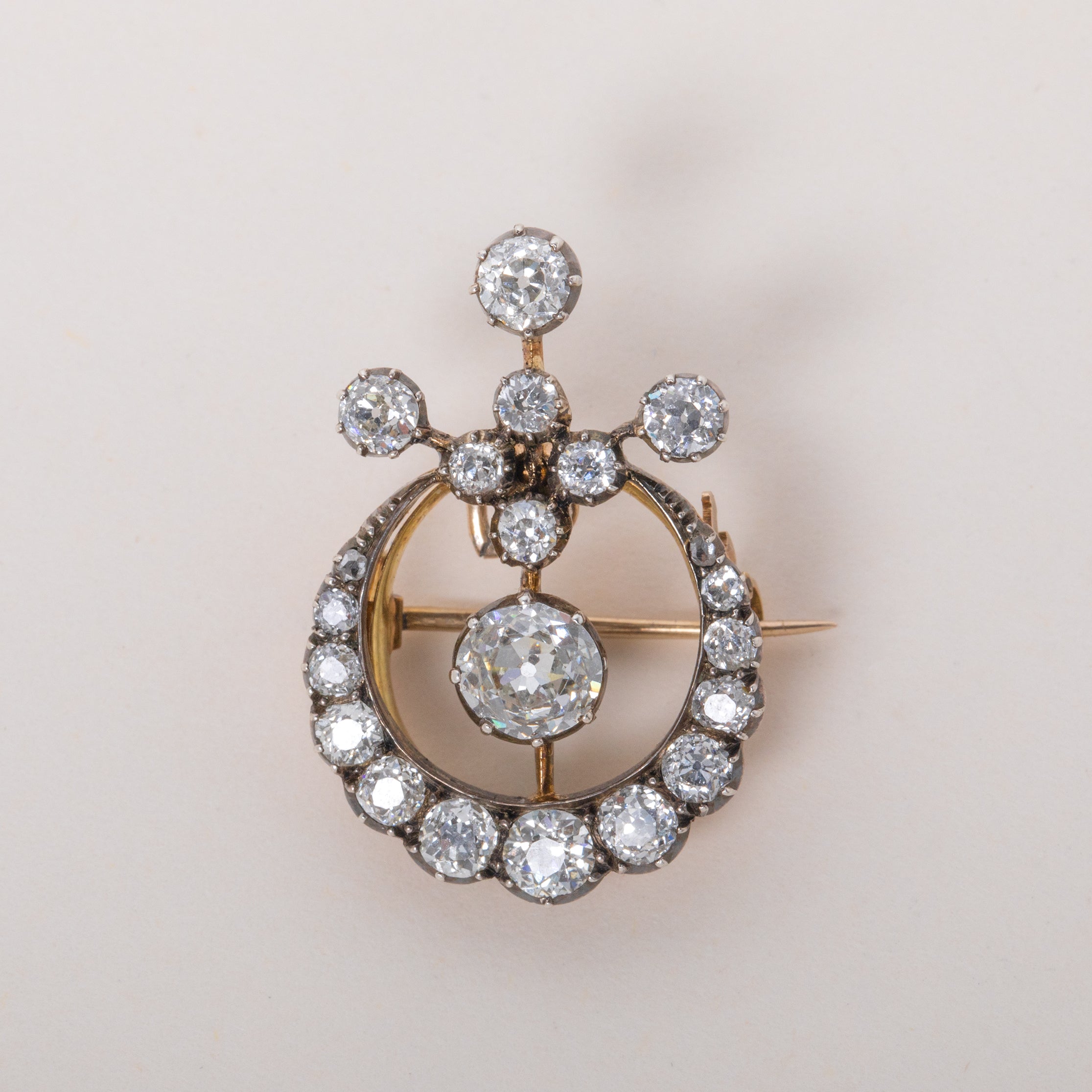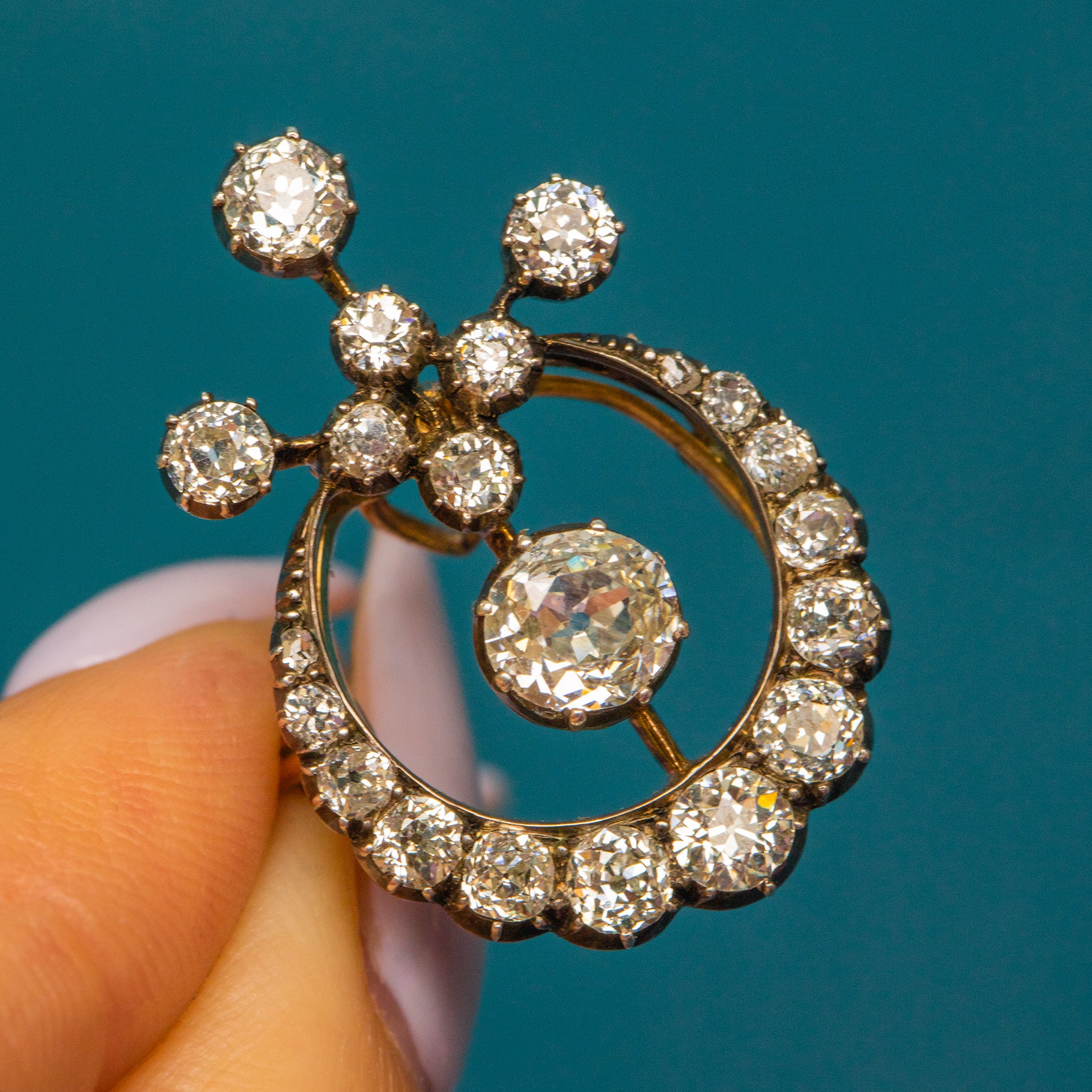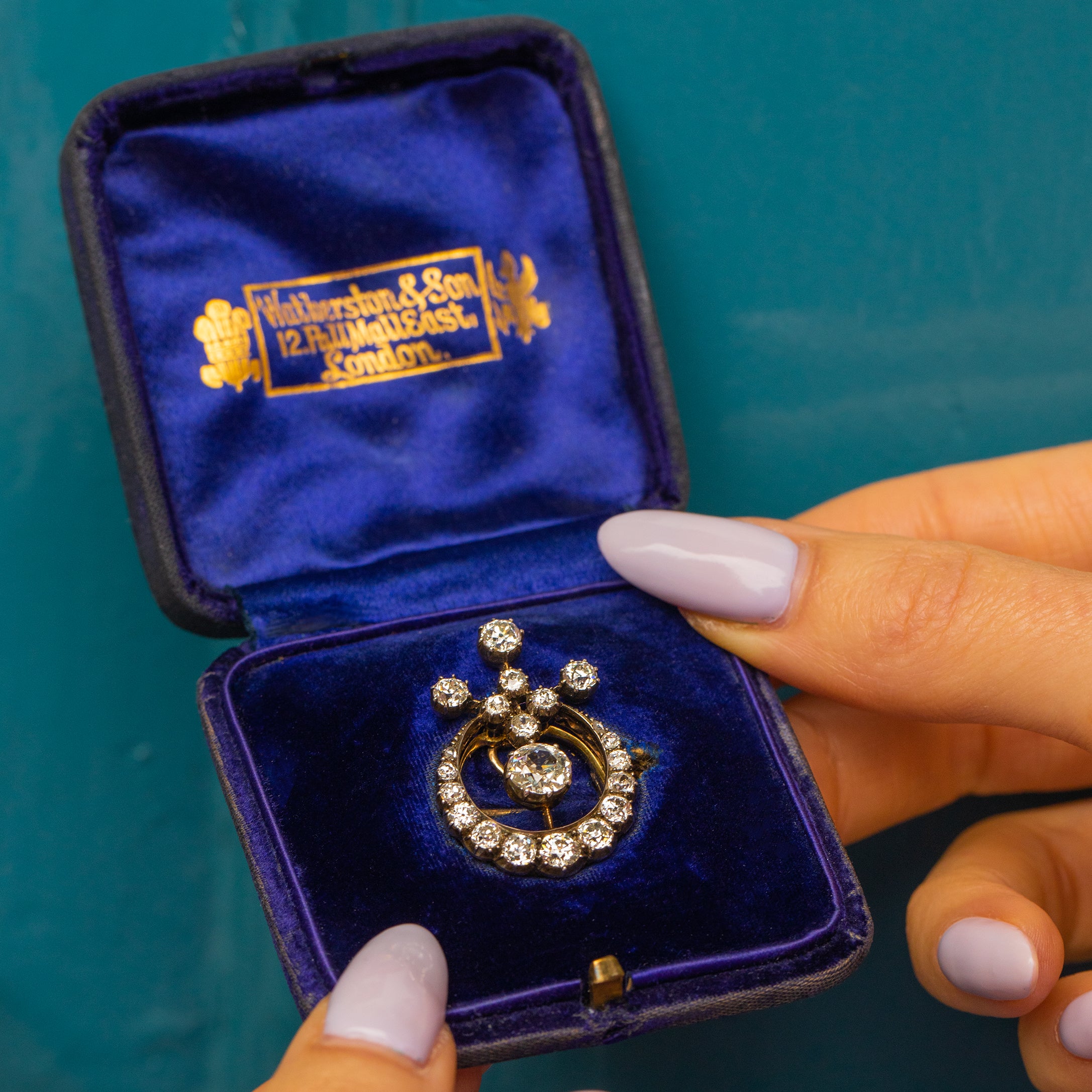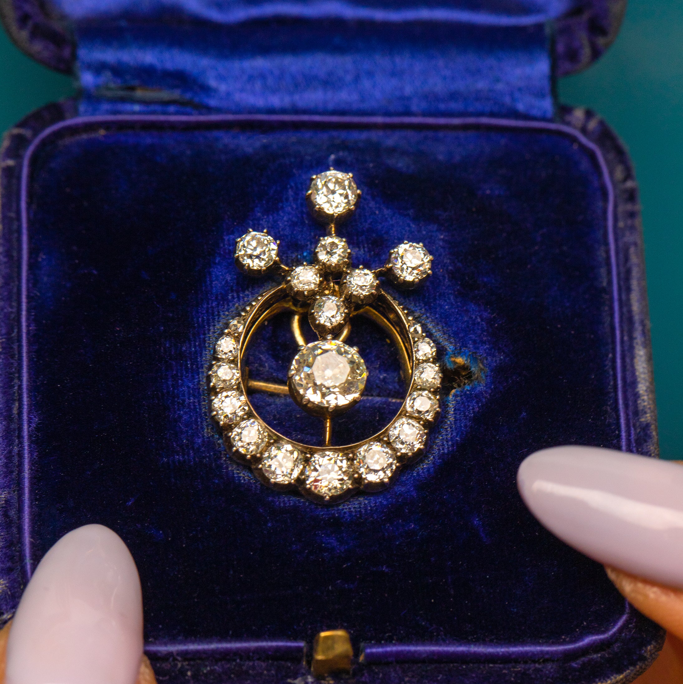 A testament to the skilled artisans of the Victorian period, the brooch fittings on this pendant can be removed allowing you to suspend this phenomenal piece from a chain across your décolletage. The combination of 18ct Gold and Silver highlights the brilliance of the Diamonds and adds depth and texture to the piece.