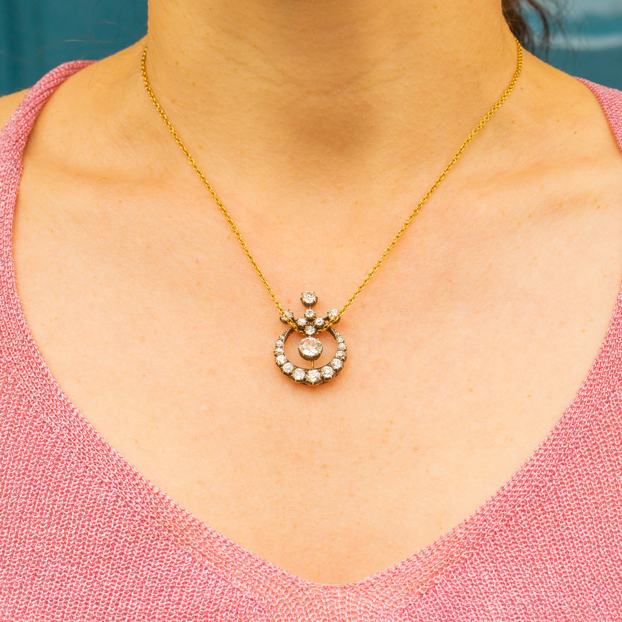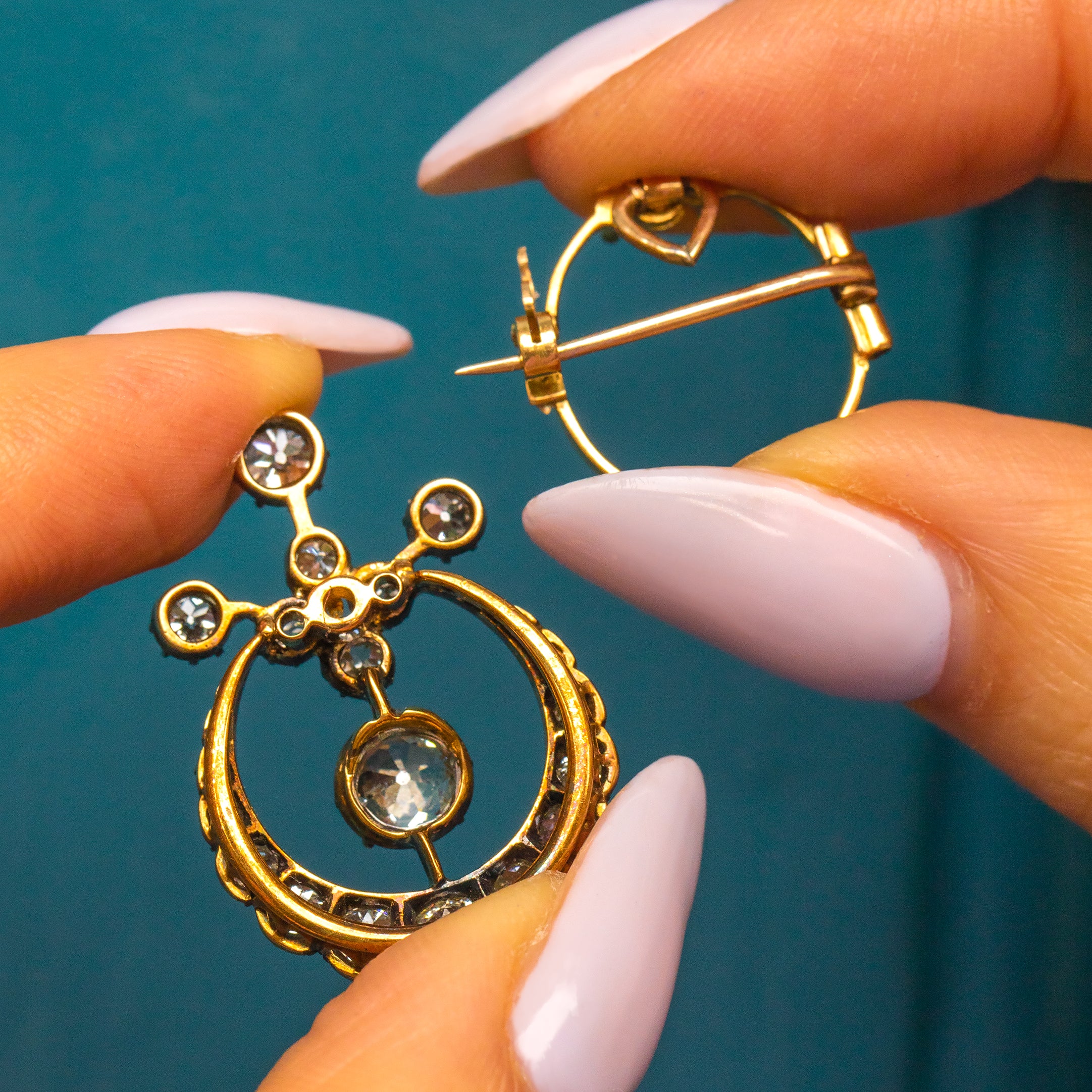 This exquisite antique 18ct Gold Celestial Diamond pendant is a captivating piece of jewellery that beautifully encapsulates the skilled craftsmanship of the Victorian era.