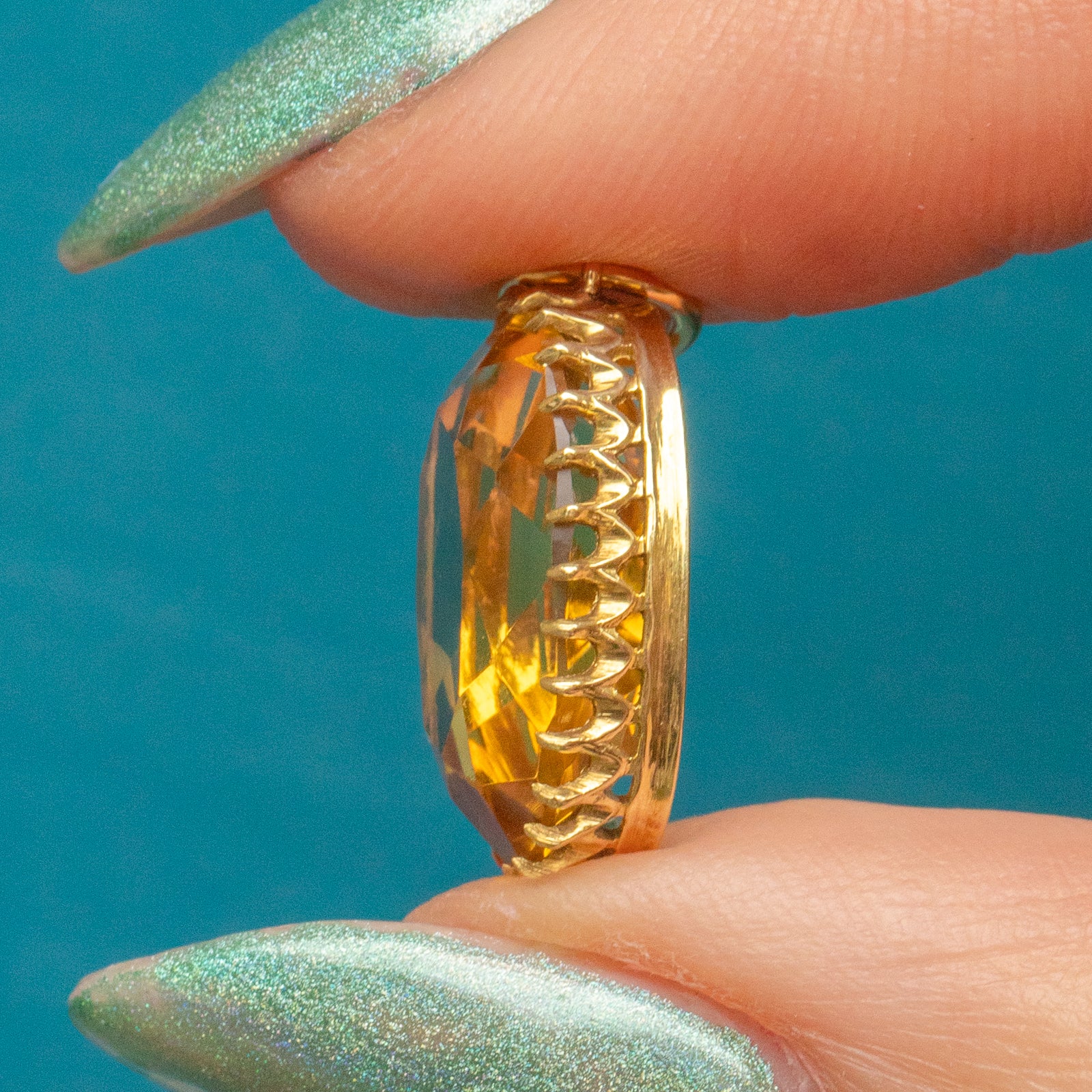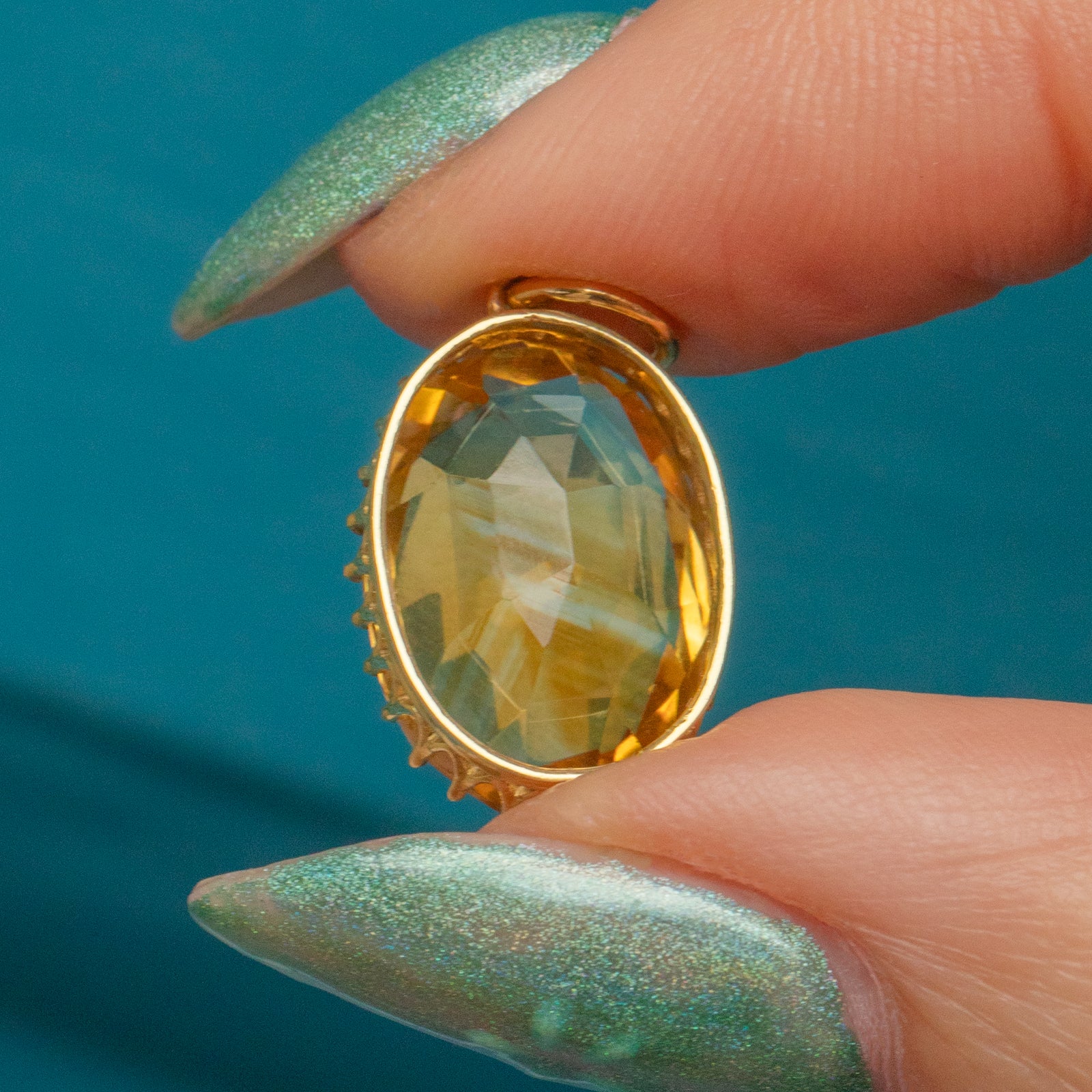 Citrine is 15.5mm long x 11mm wide, weighing approx. 5.95ct.