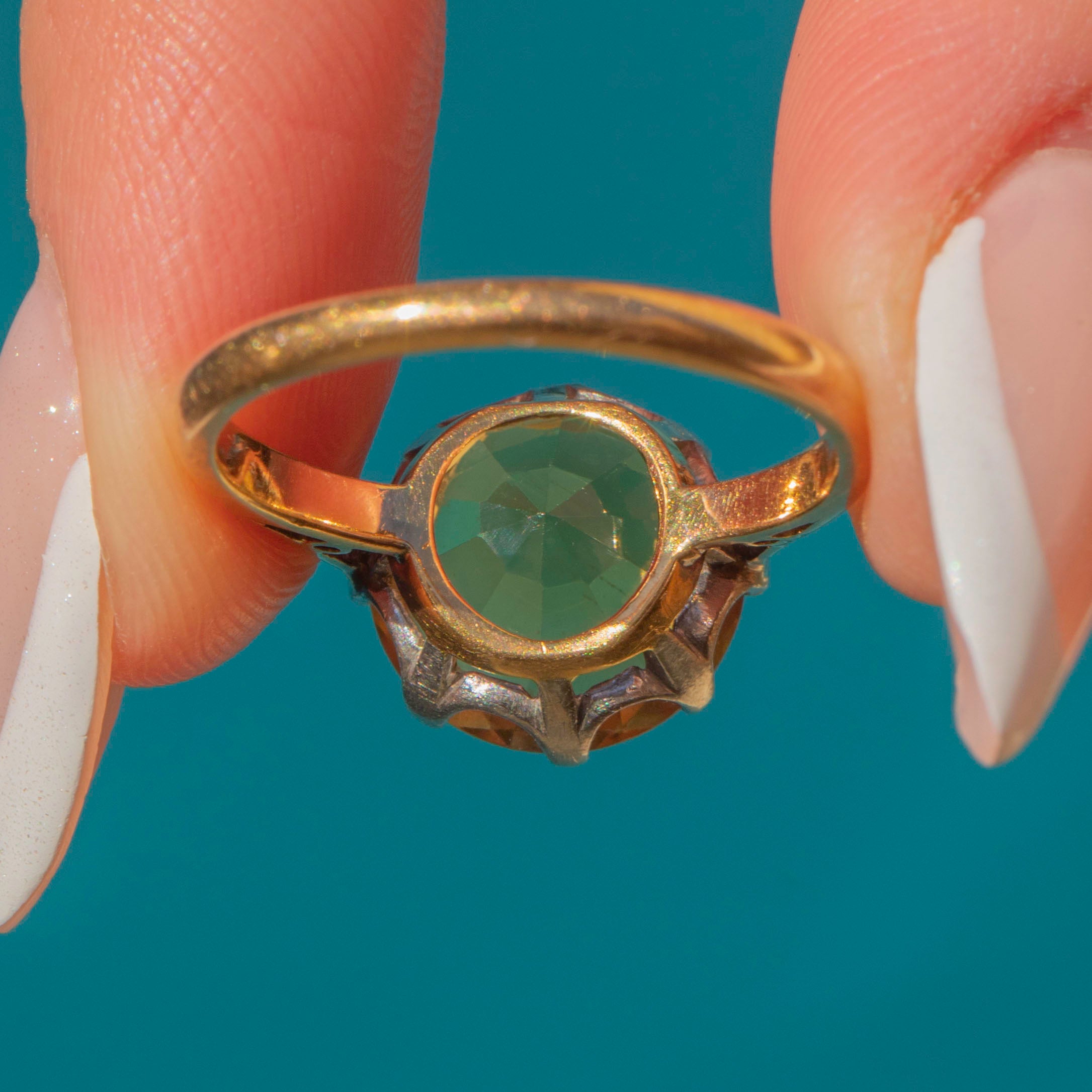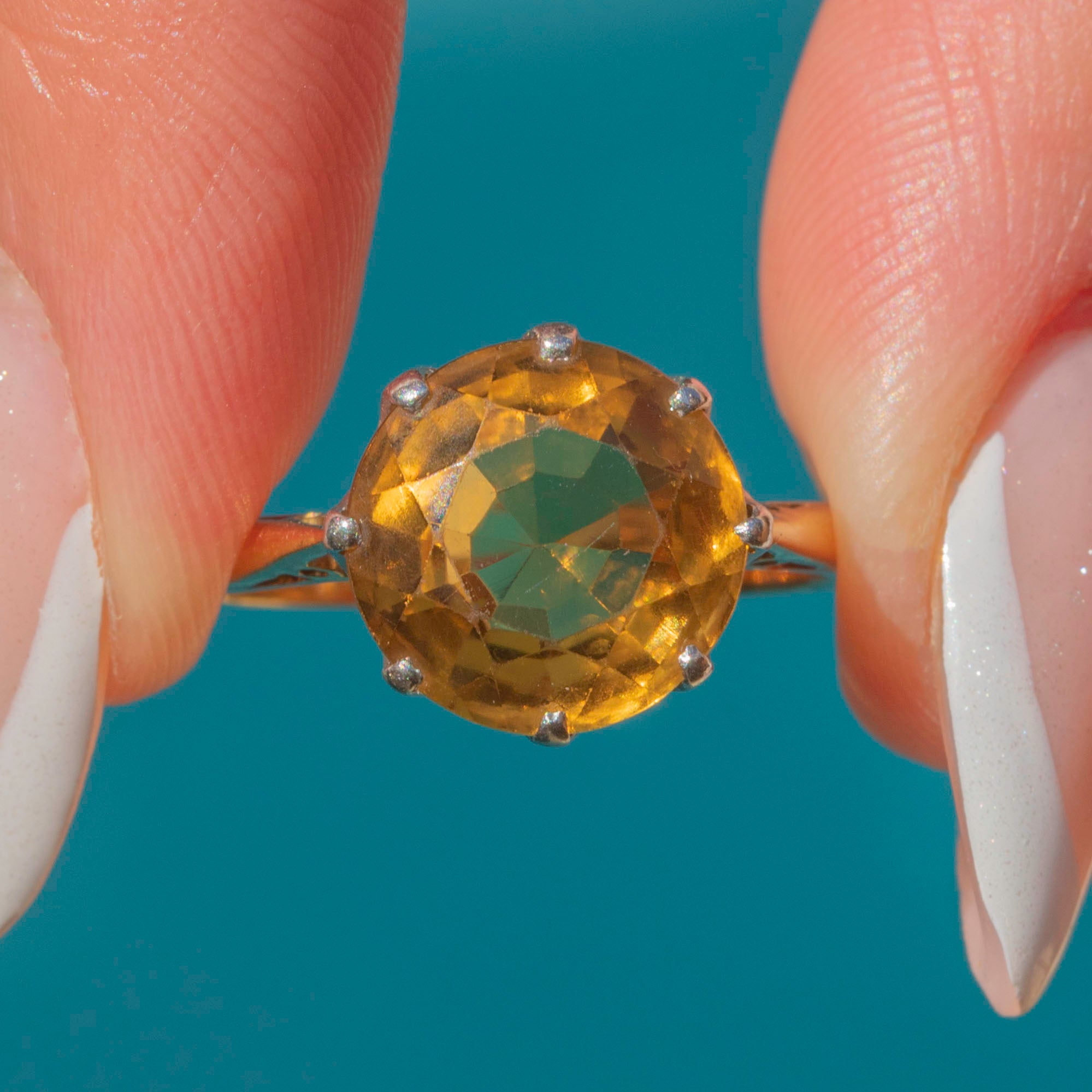 VERY GOOD: This antique 18ct Gold Citrine solitaire ring is in very good condition. Her Gold is smooth and sleek, holding her Citrine securely, and the Citrine has a crisp set of facets and is completely free from any chips or scuffs. There is a resize mark on her back but this is minor and doesn't impact the overall look of the ring!