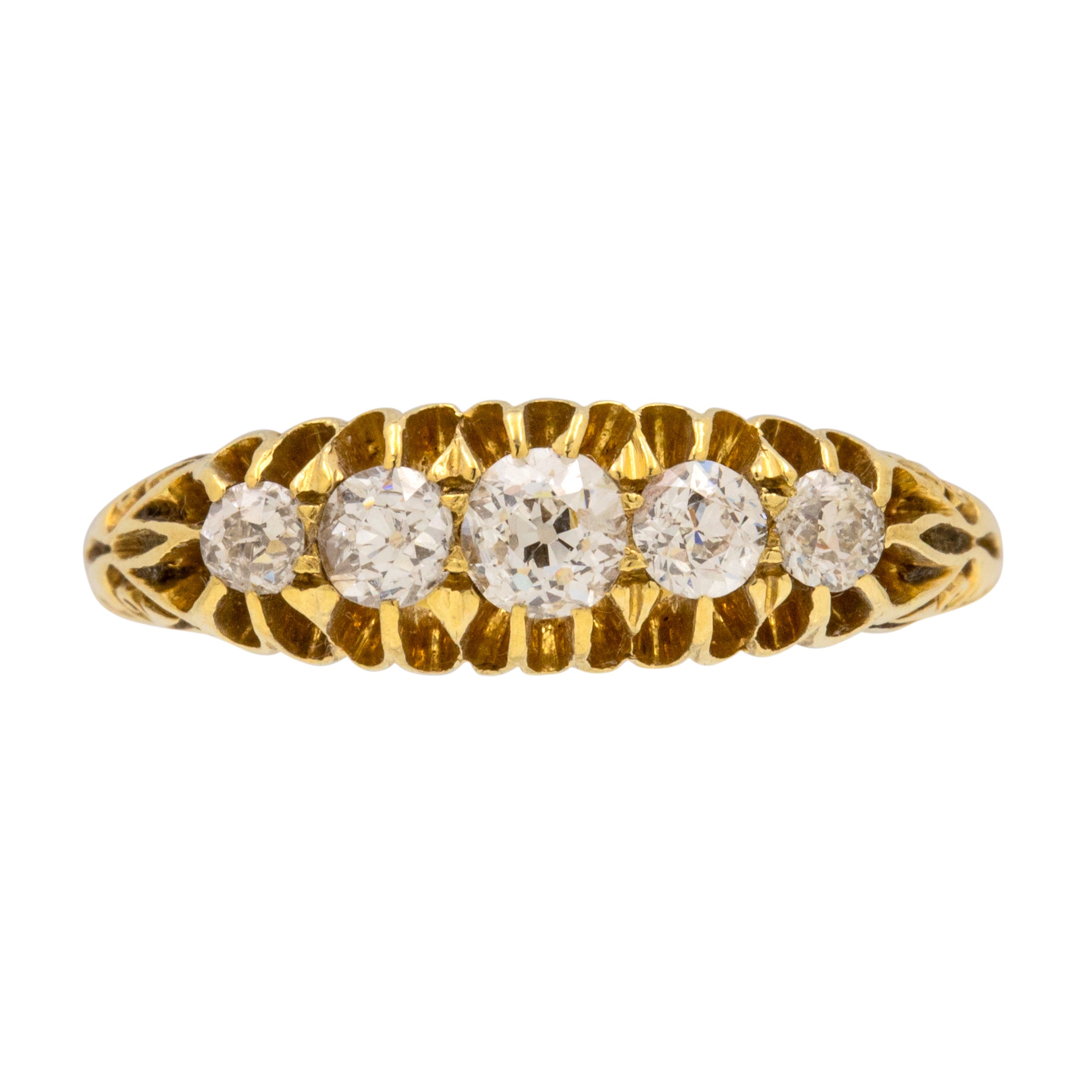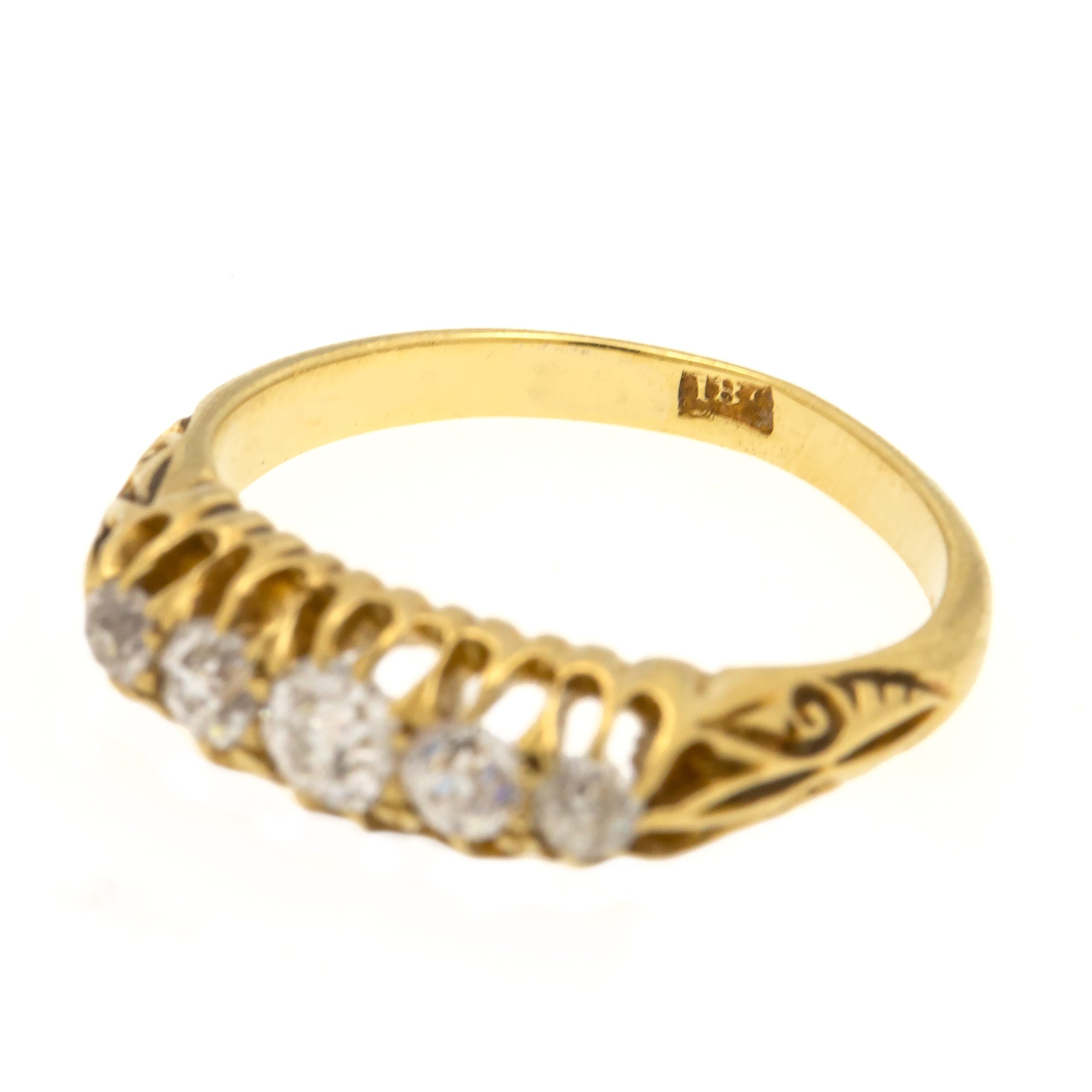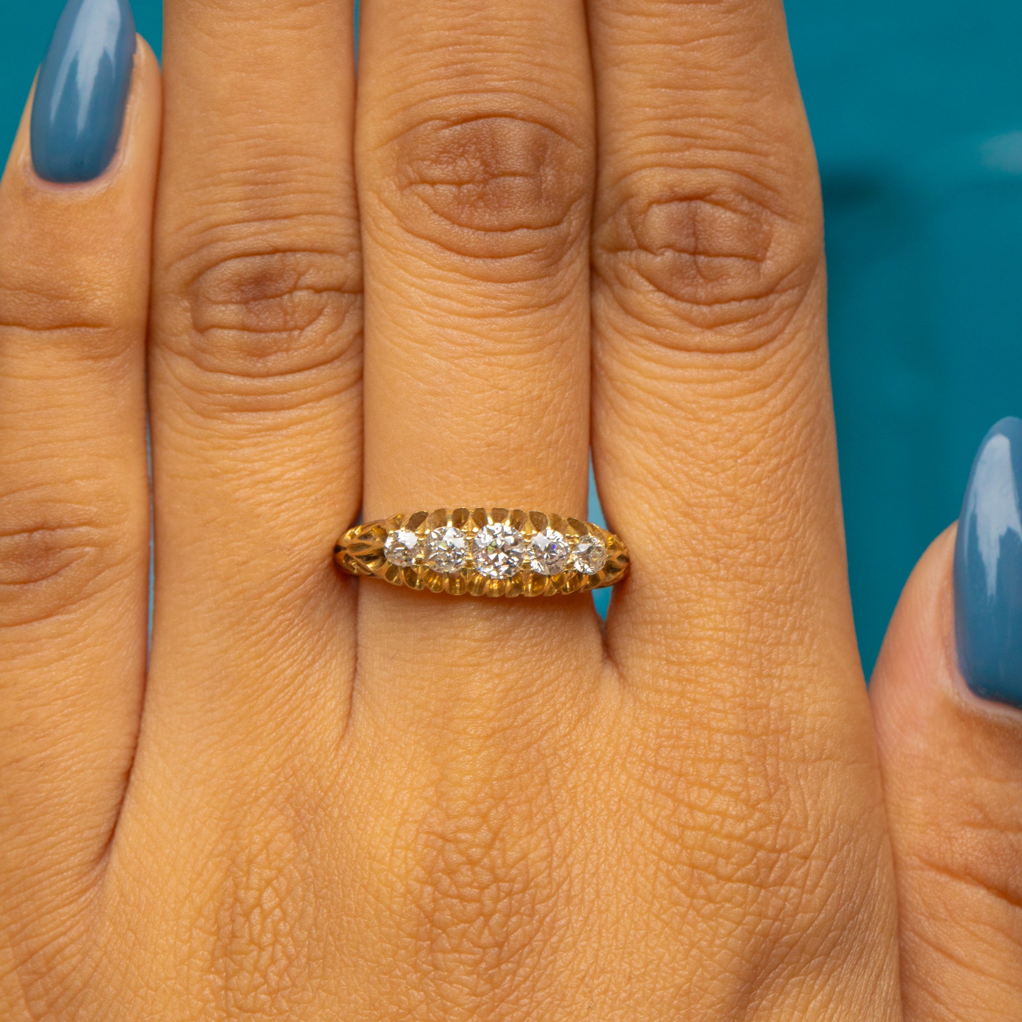 アンティーク 18ct ゴールド ダイヤモンド ファイブストーン リング、0.50ct