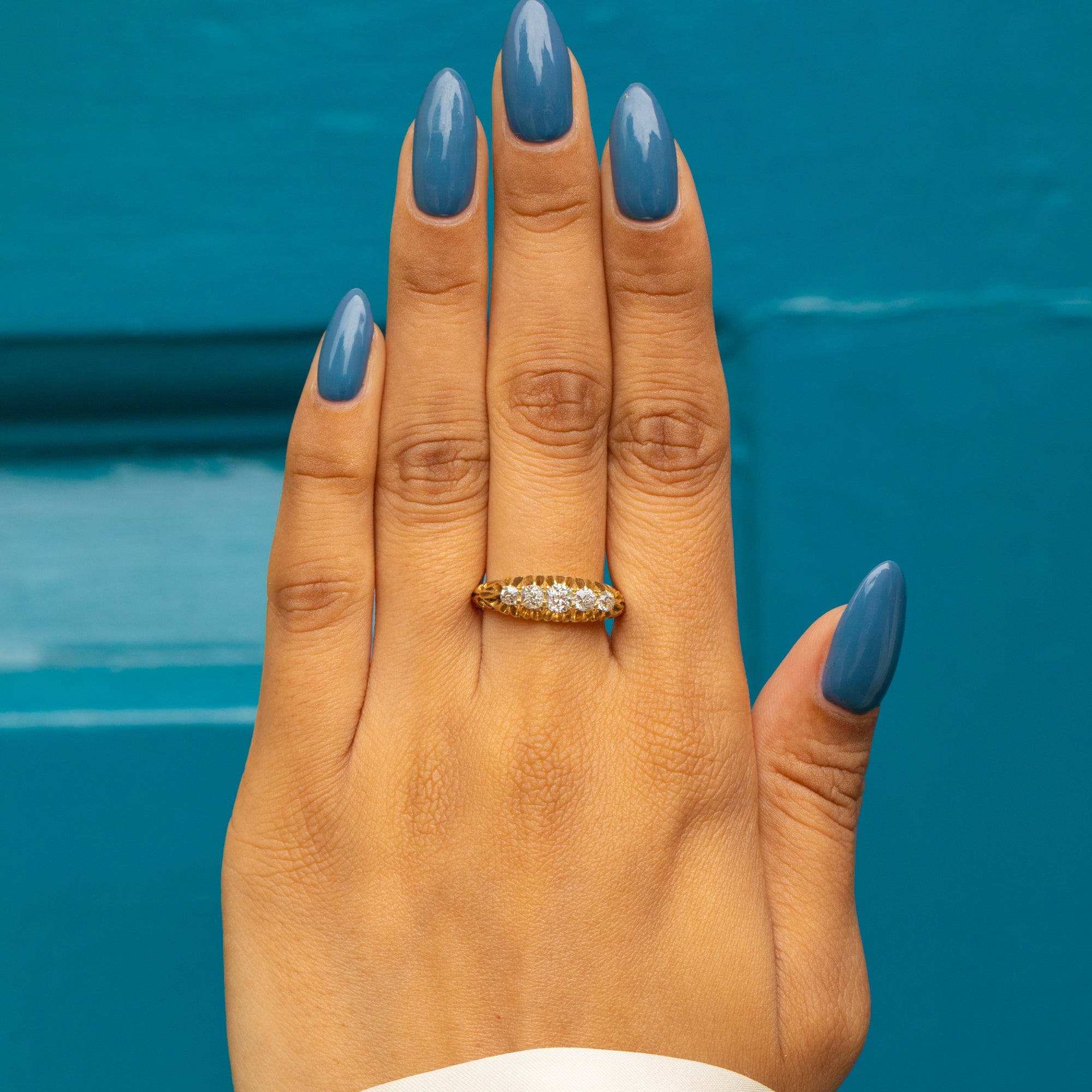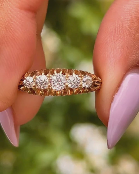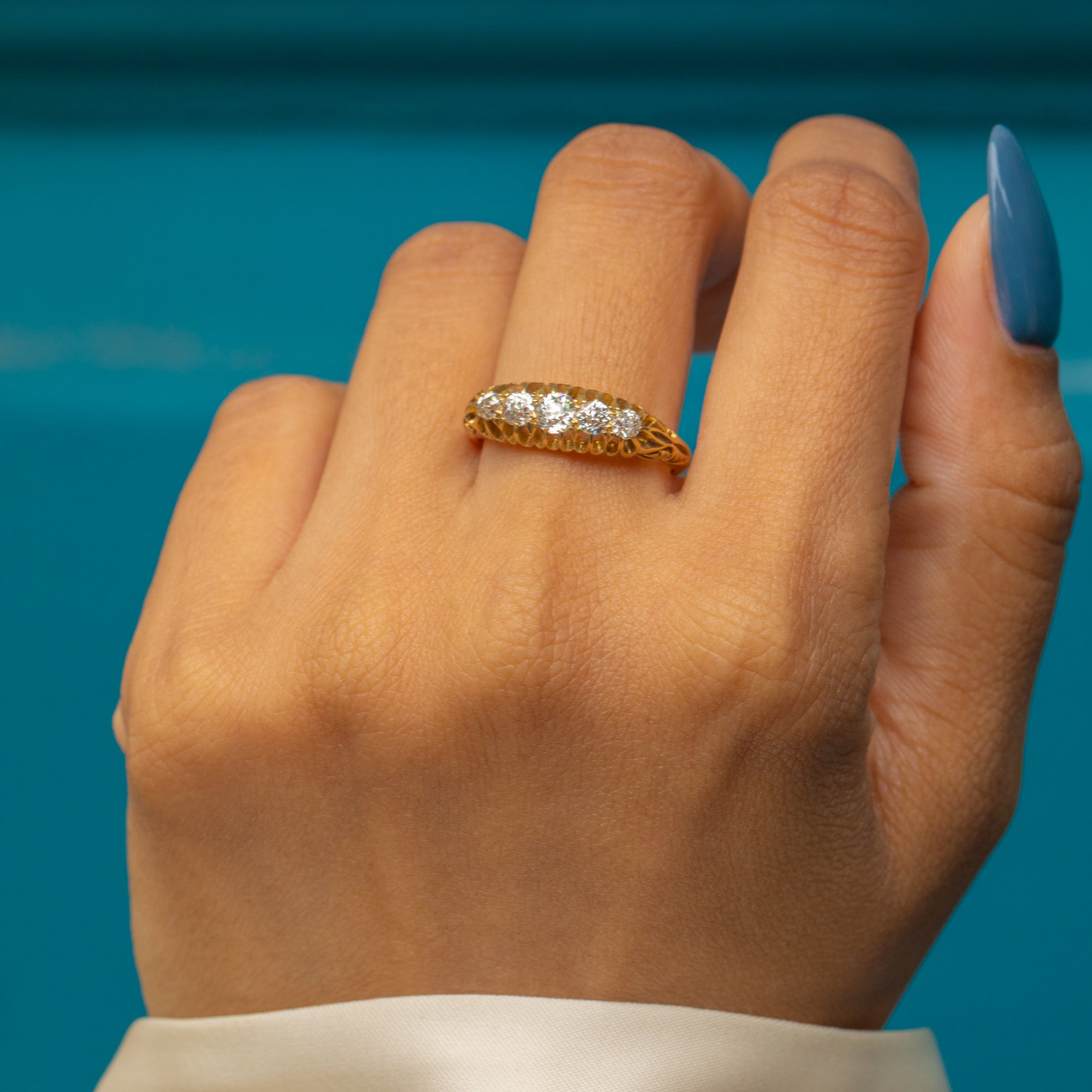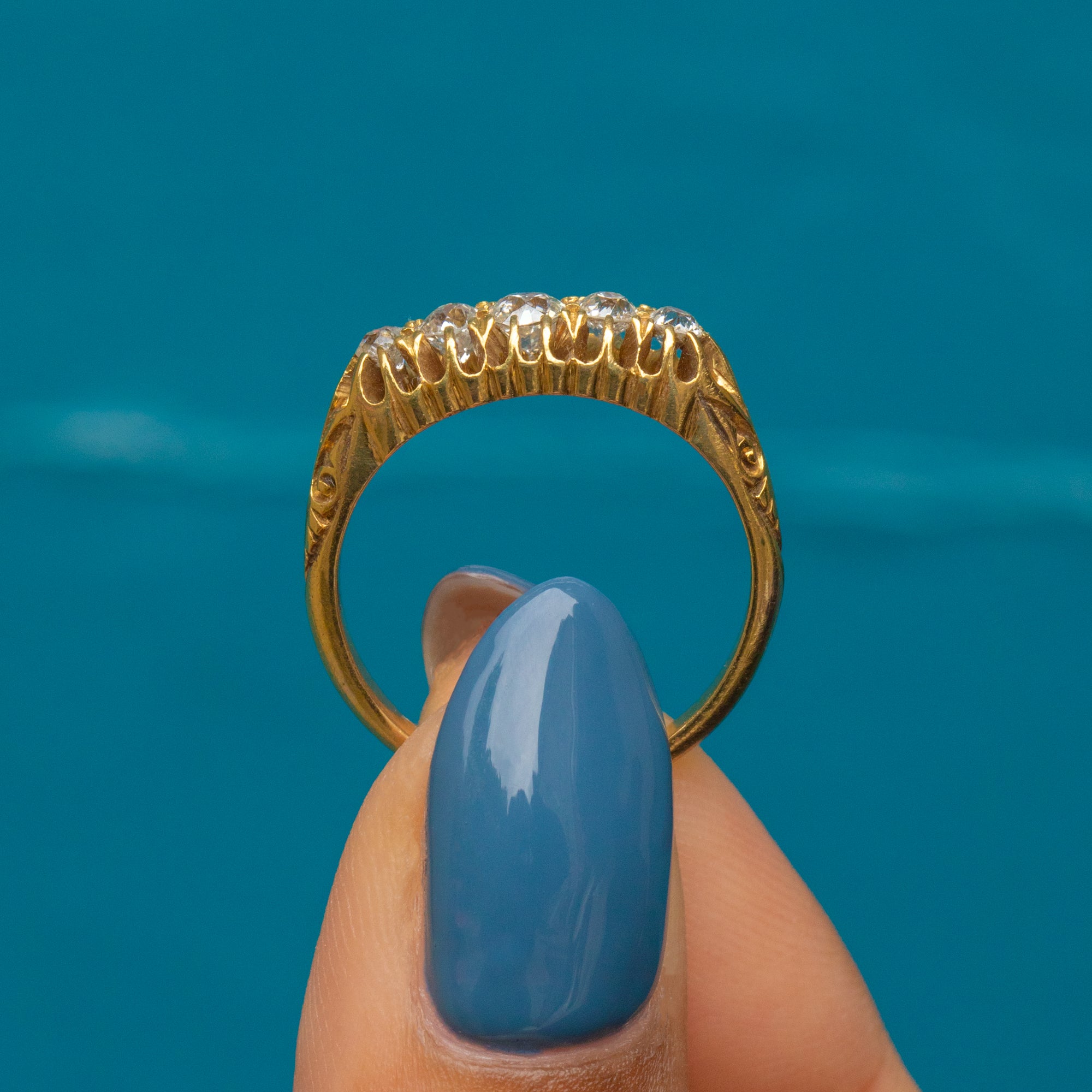 アンティーク 18ct ゴールド ダイヤモンド ファイブストーン リング、0.50ct