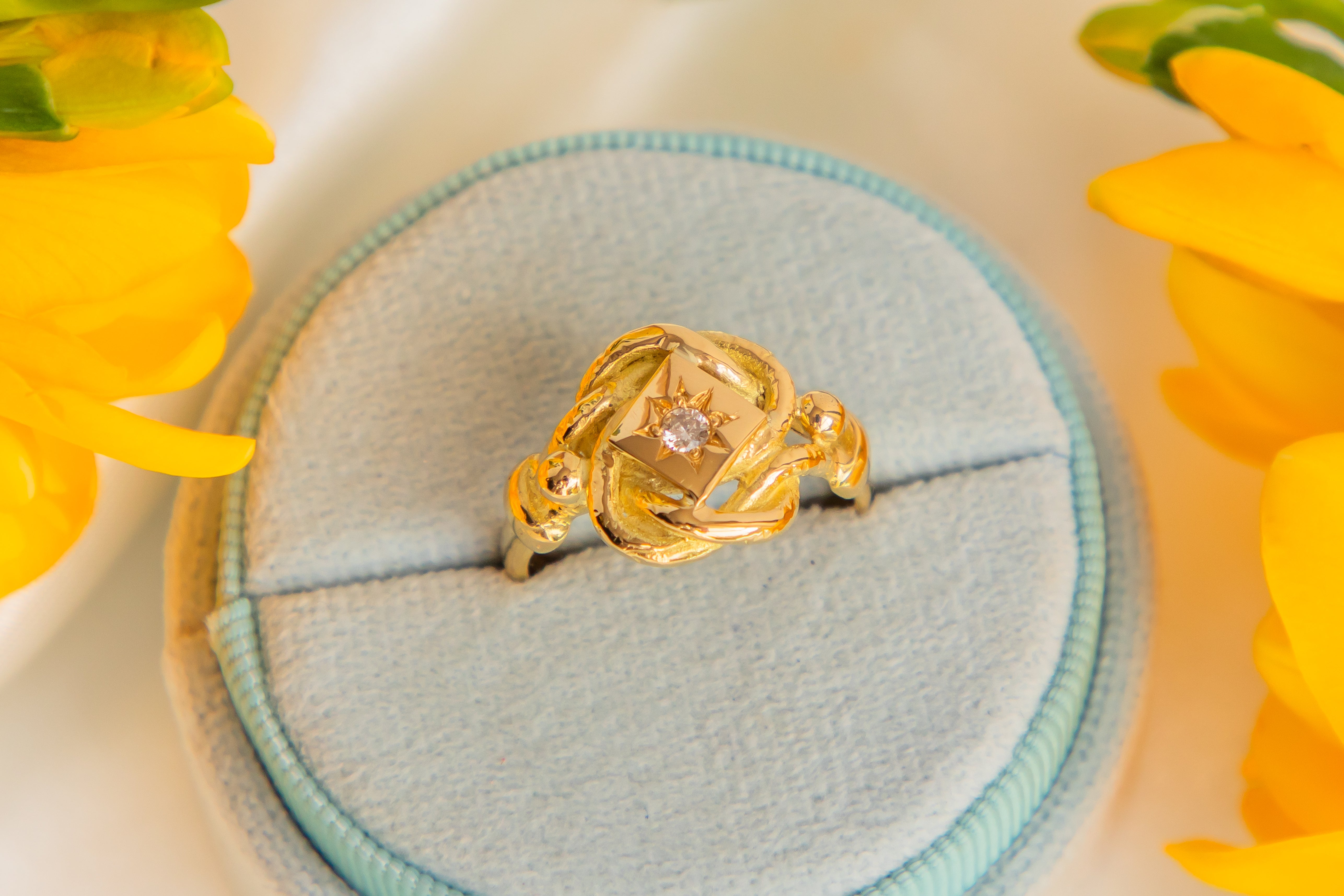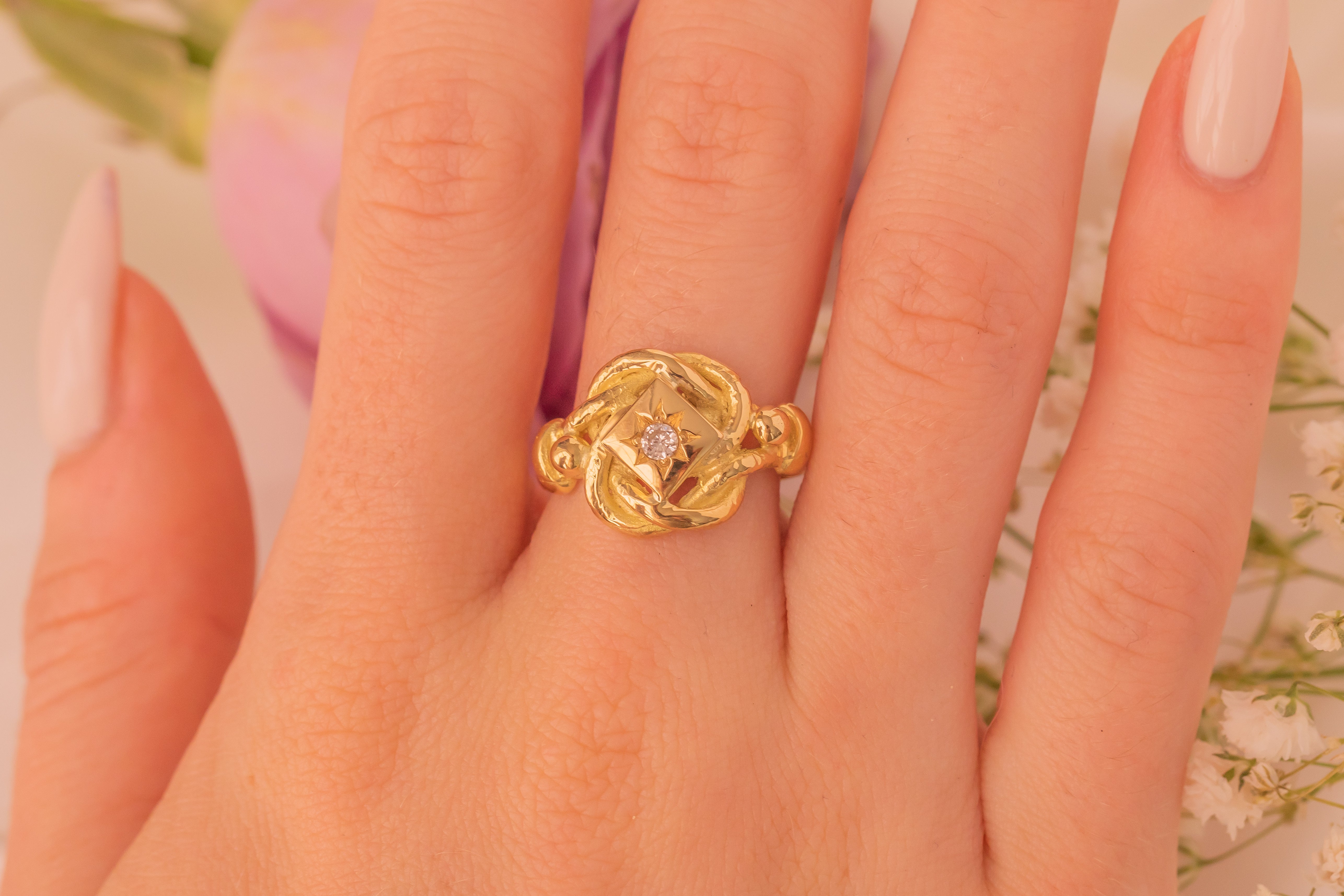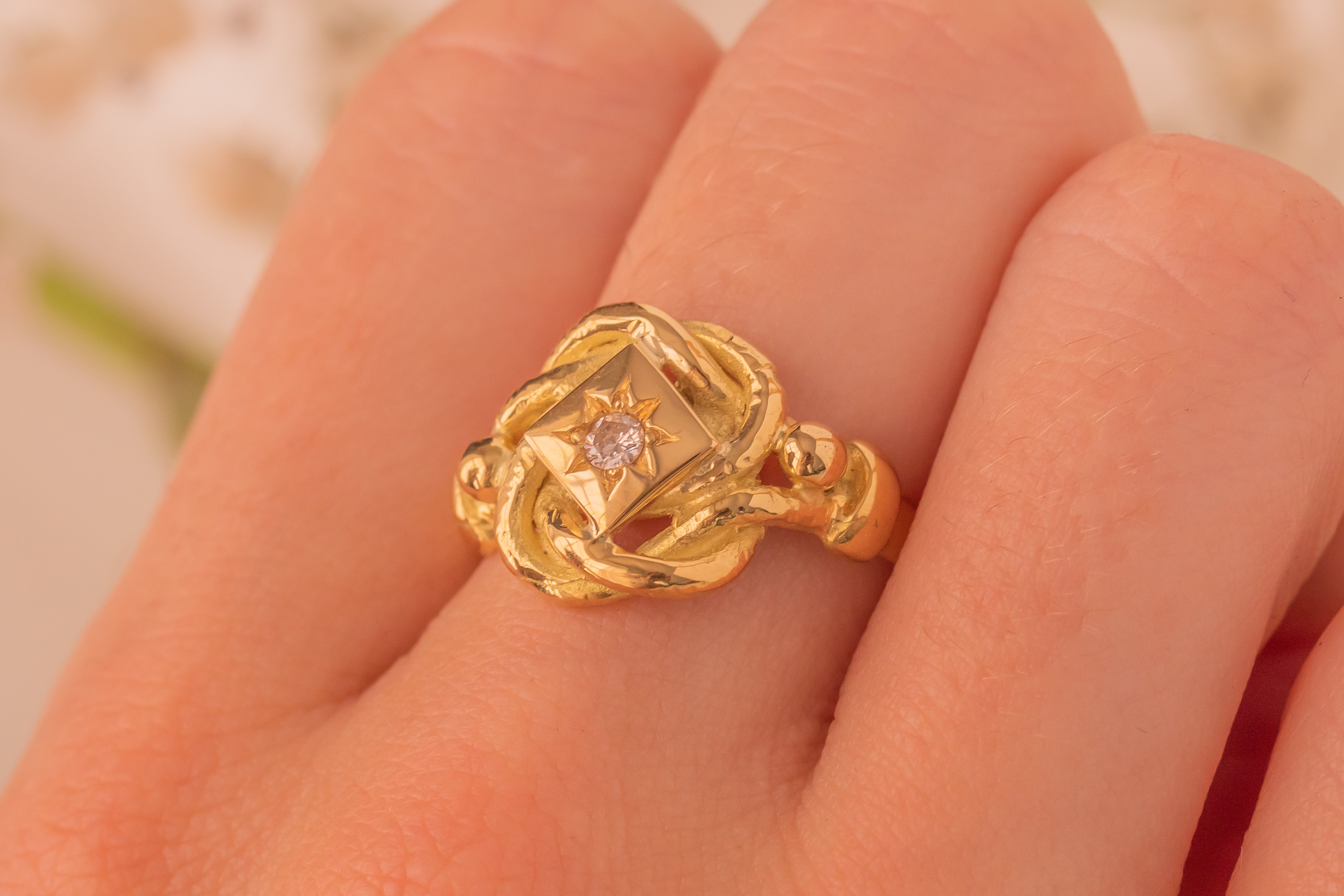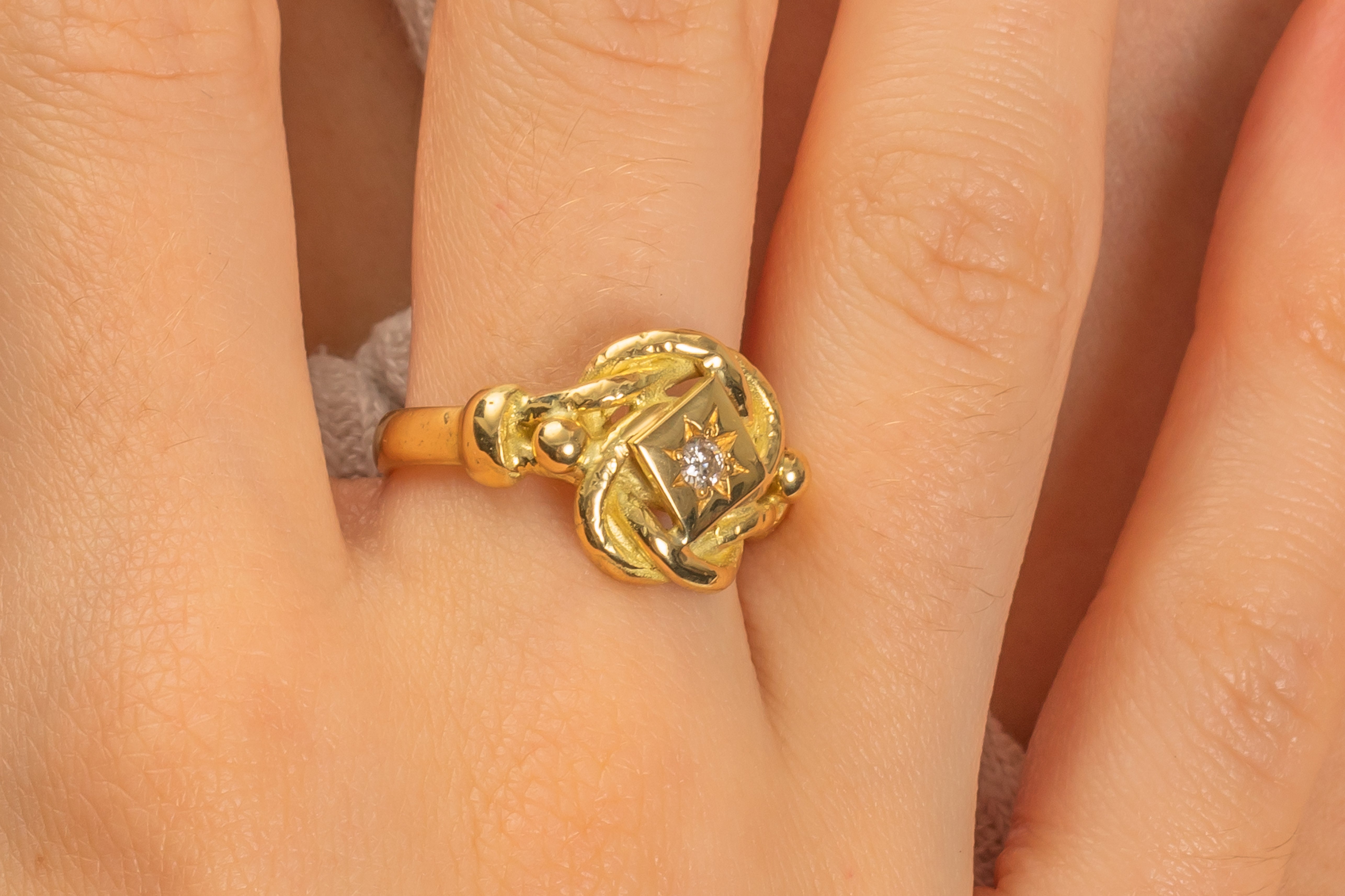 ヘビーアンティーク 18ct ゴールド ダイヤモンド ラバーズノットリング