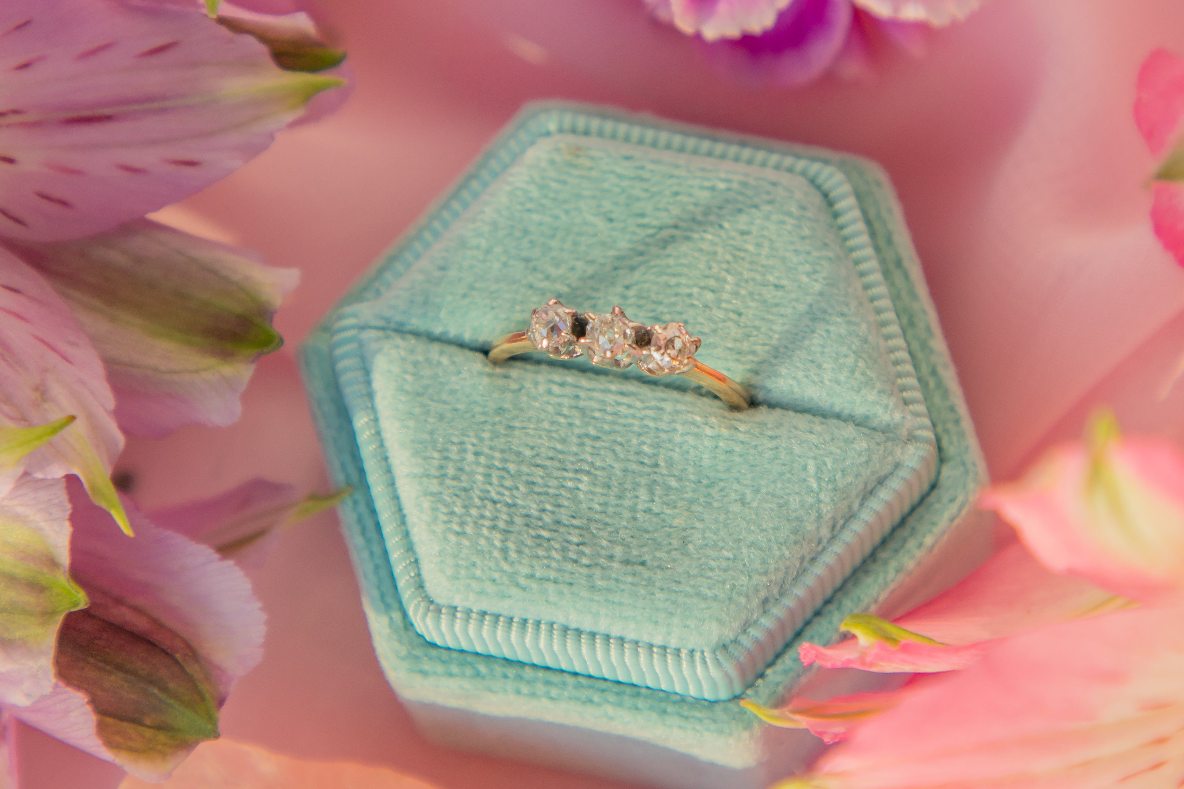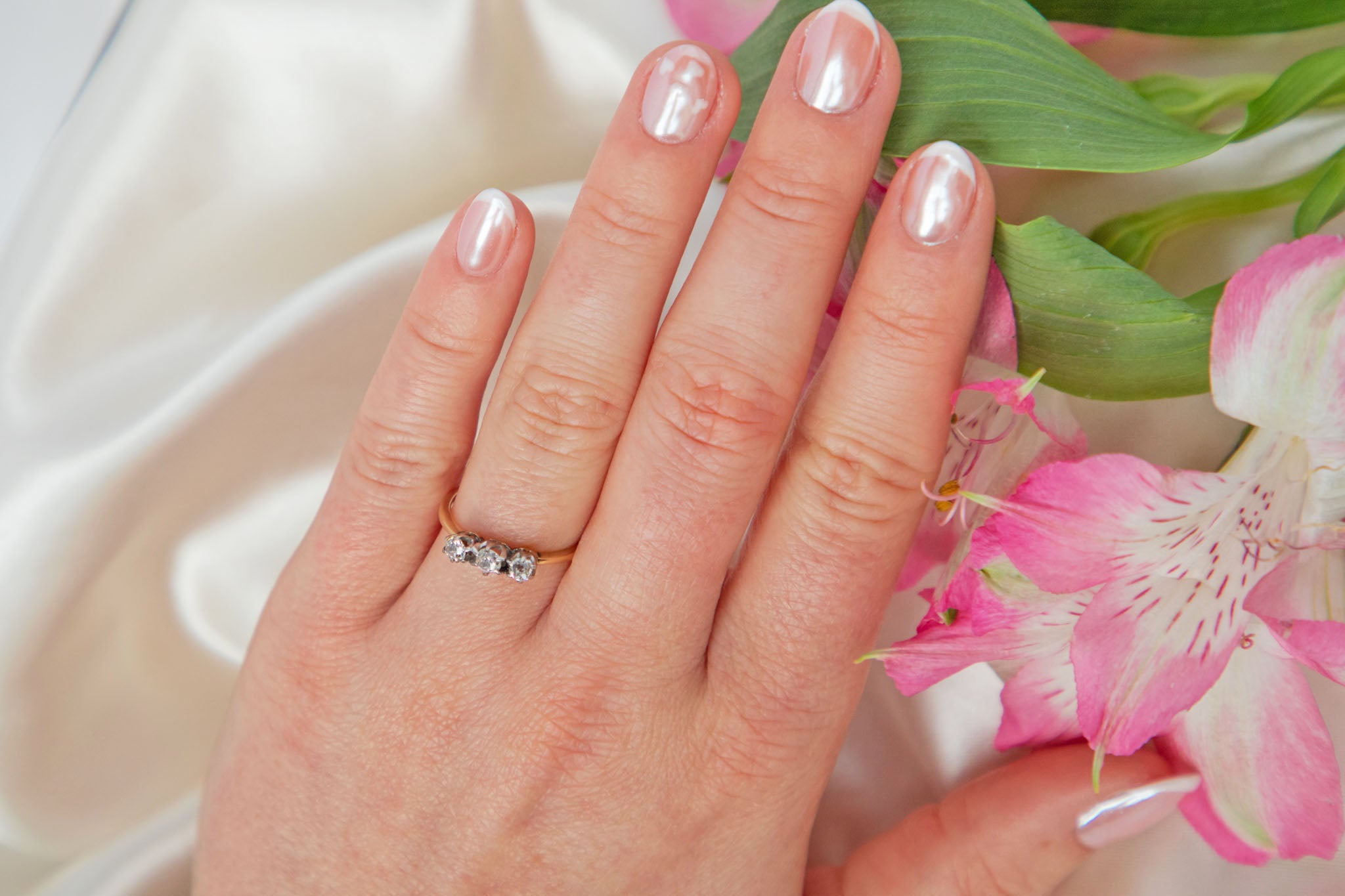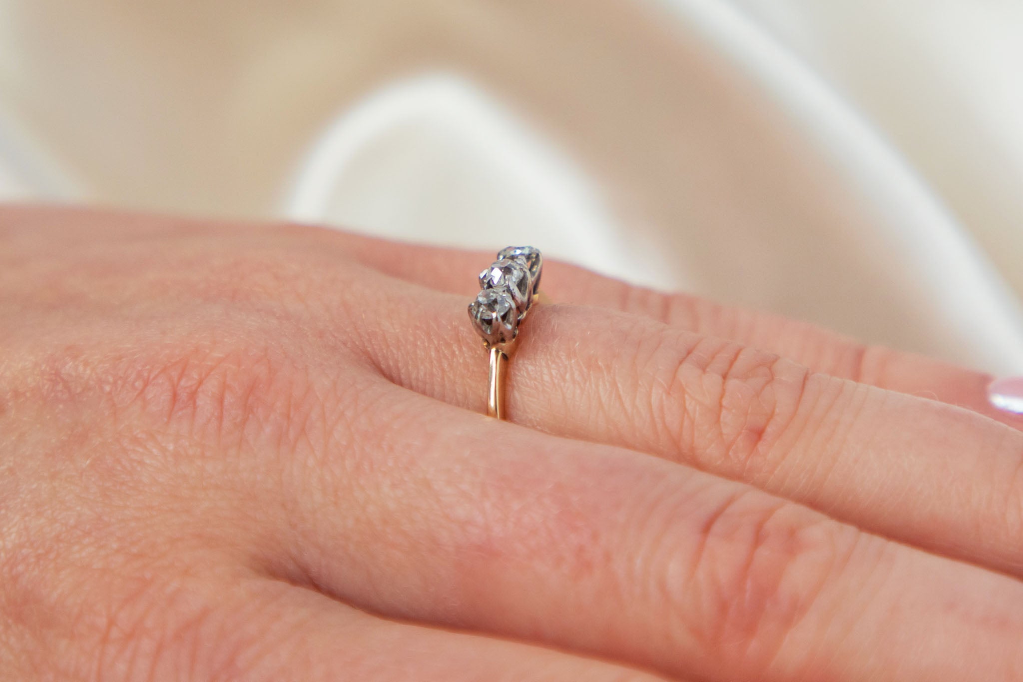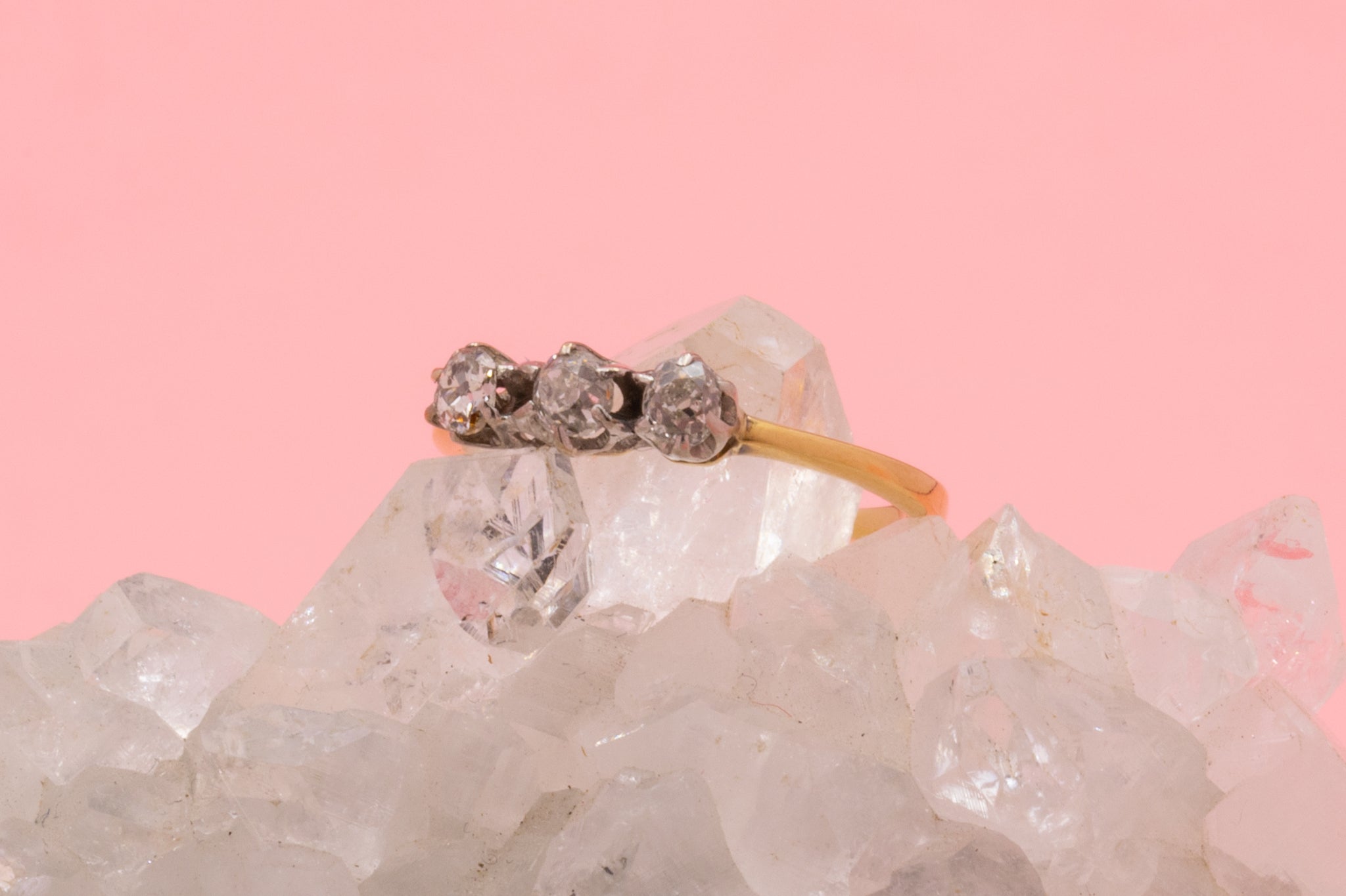 アンティーク 18ct ゴールド ダイヤモンド トリロジーリング、0.30ct