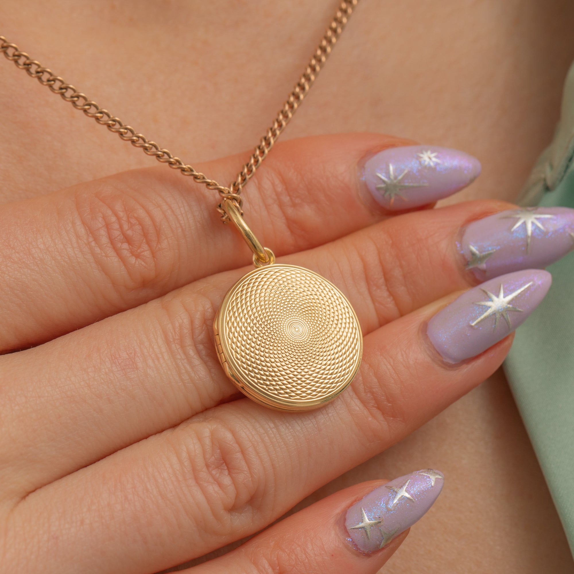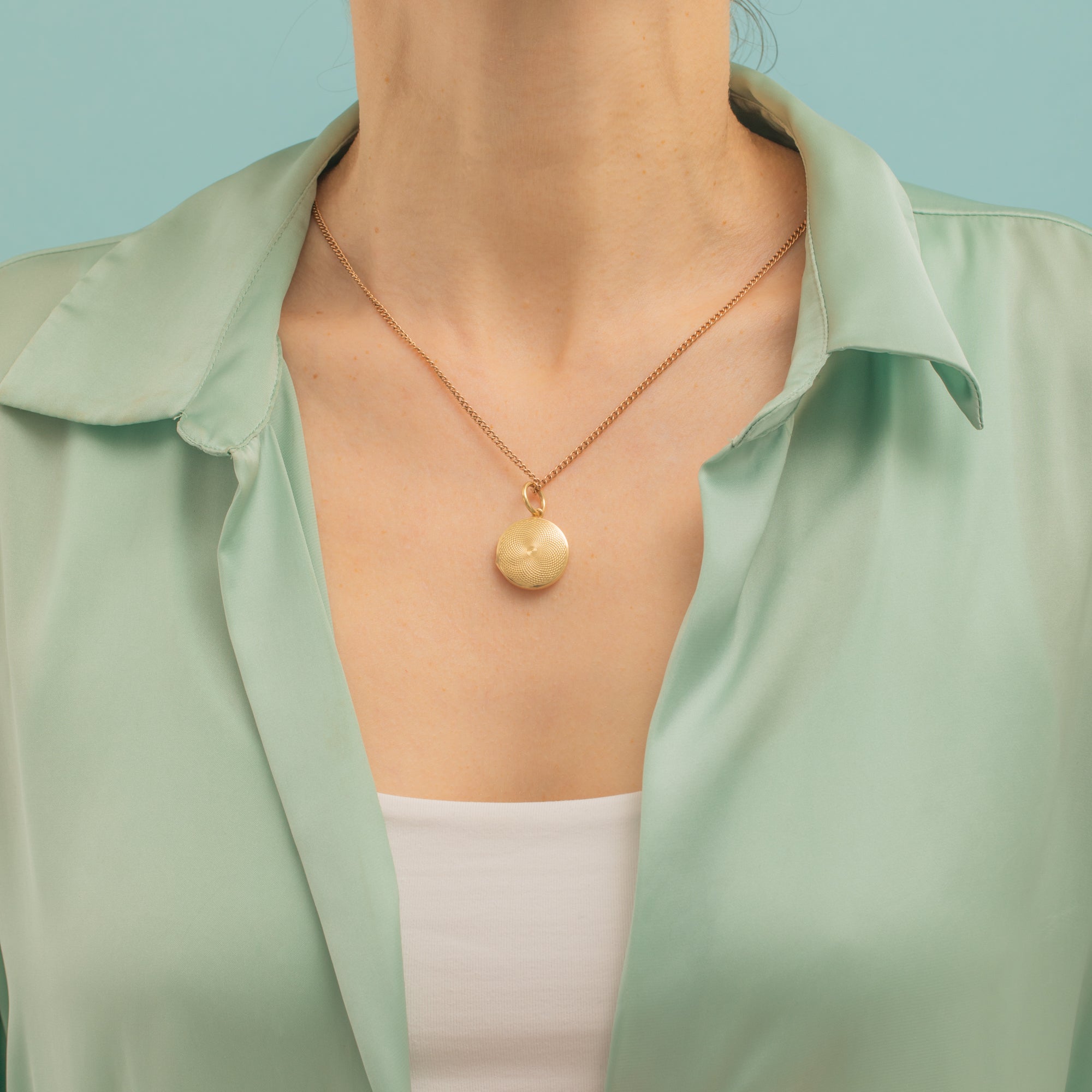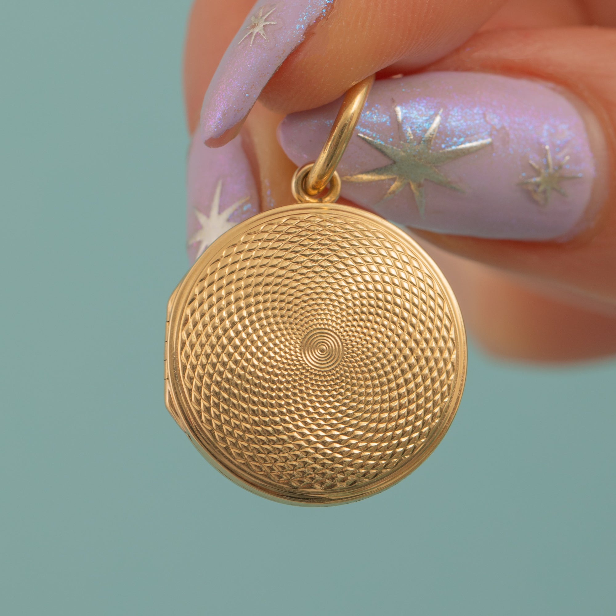 This smart antique 18ct Gold engine turned round locket is set to become the most sentimental piece in your collection! Crafted from sumptuous 18ct Gold, the locket is decorated with mesmerising engine turned engravings that catch the light magnificently.