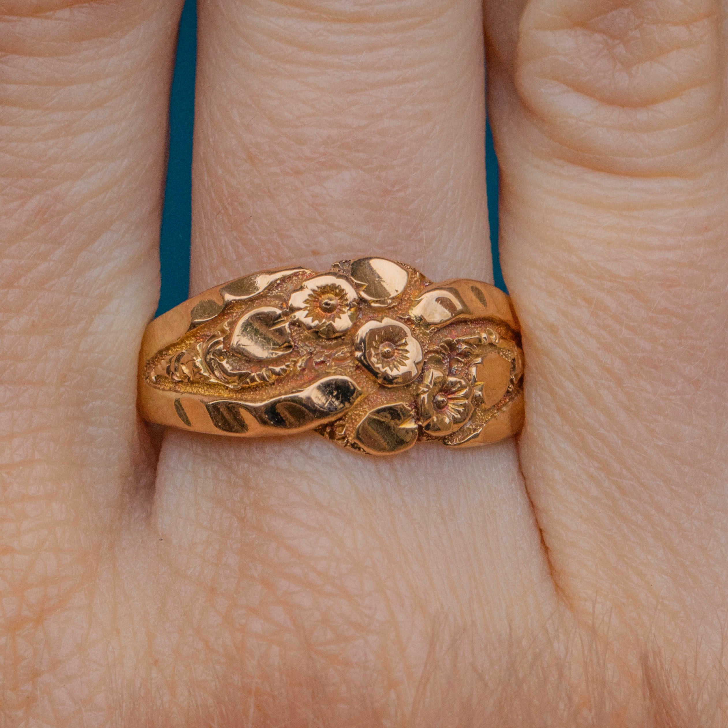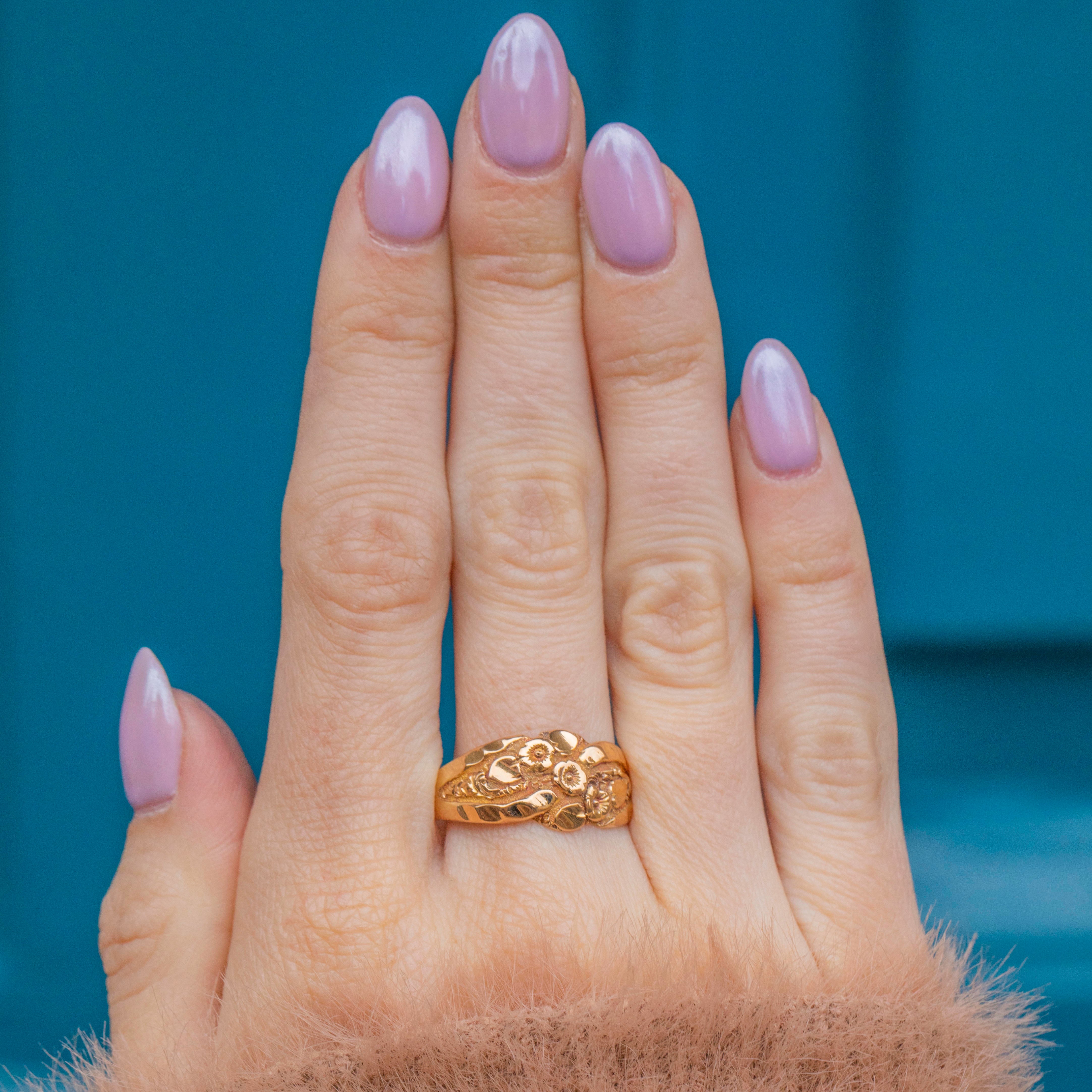 Exuding a sweet, fanciful charm, this Edwardian Gold ring is perfect for everyday wear and will stack seamlessly amongst your other favourite rings. If you are looking for a unique wedding band, this chunky delight will make a wonderful choice!