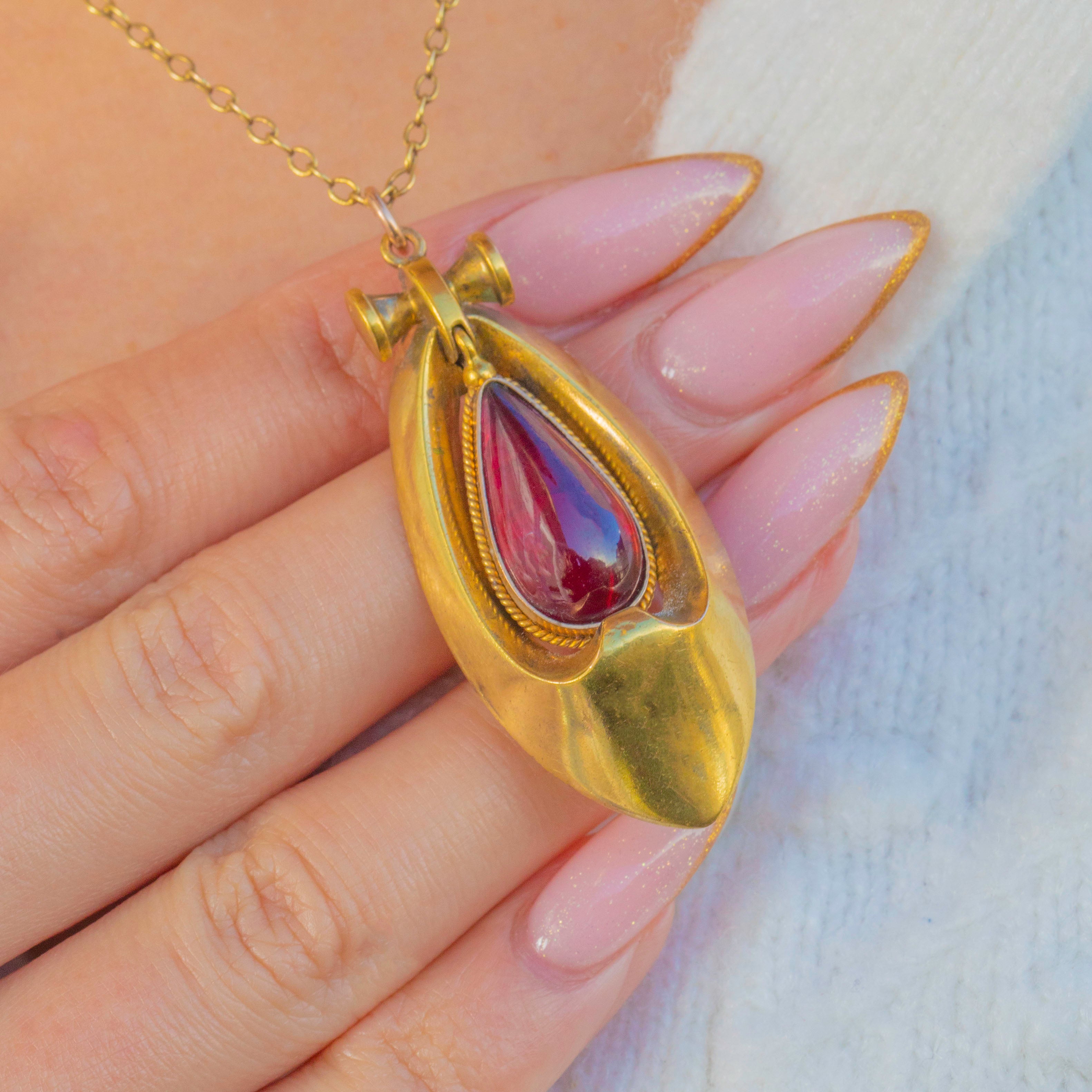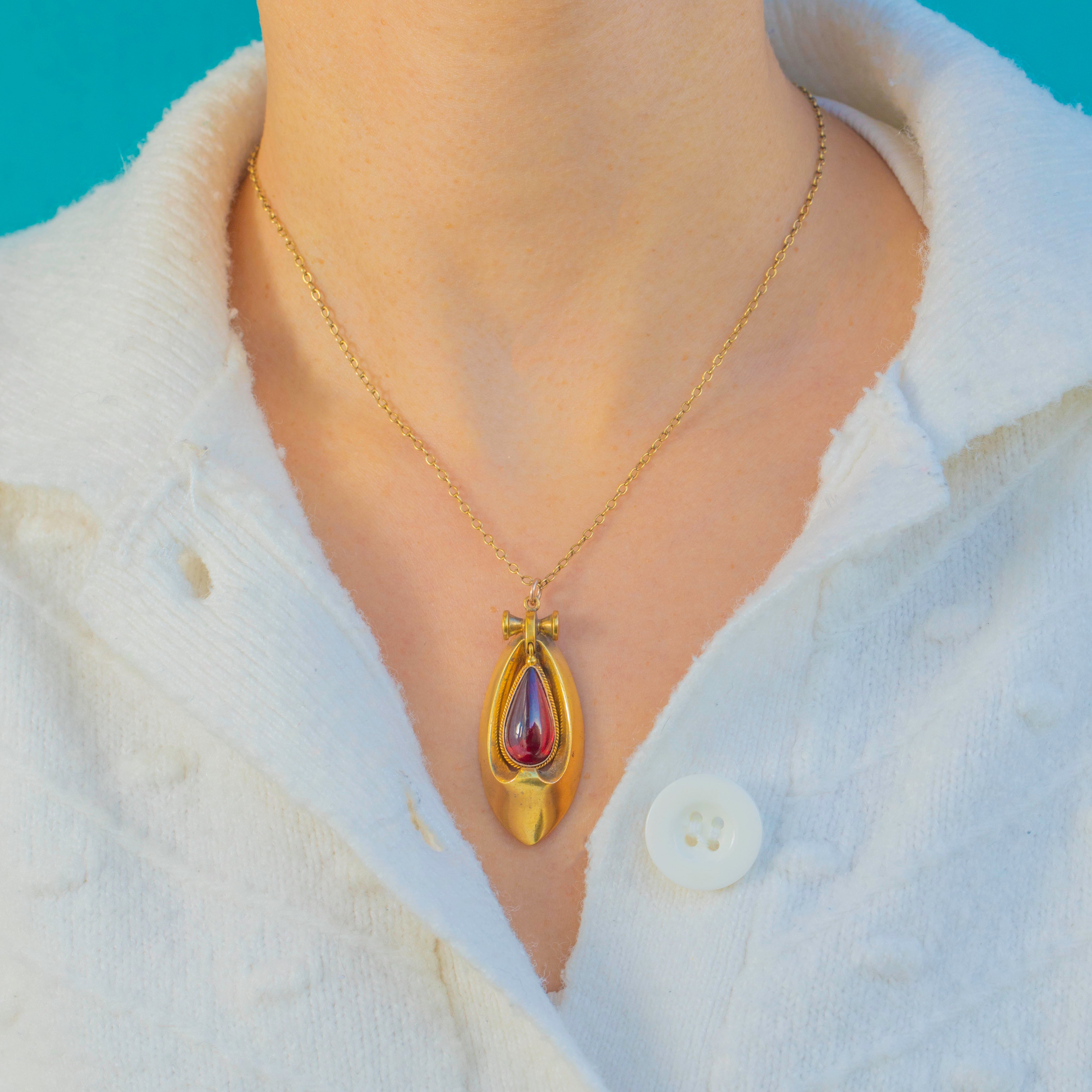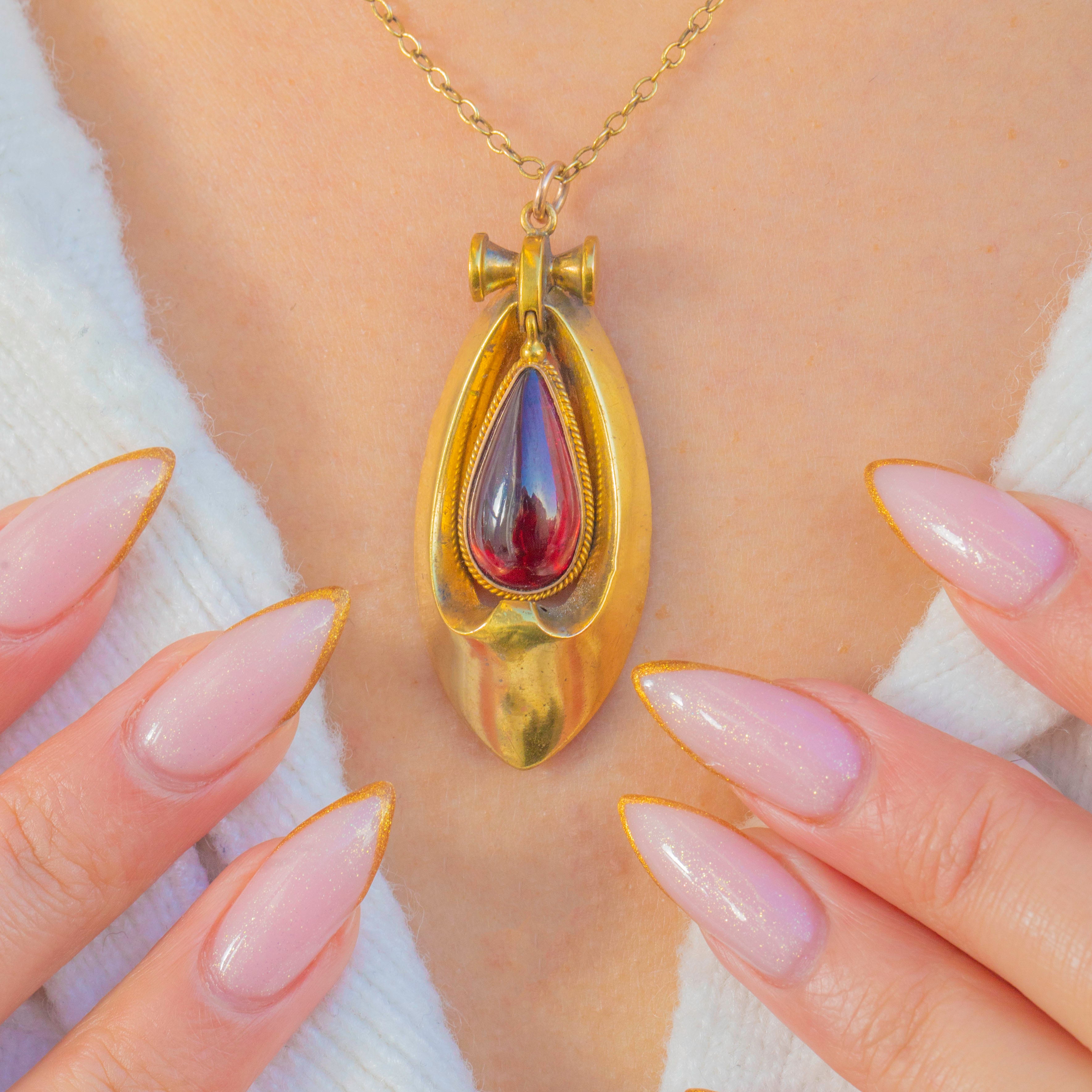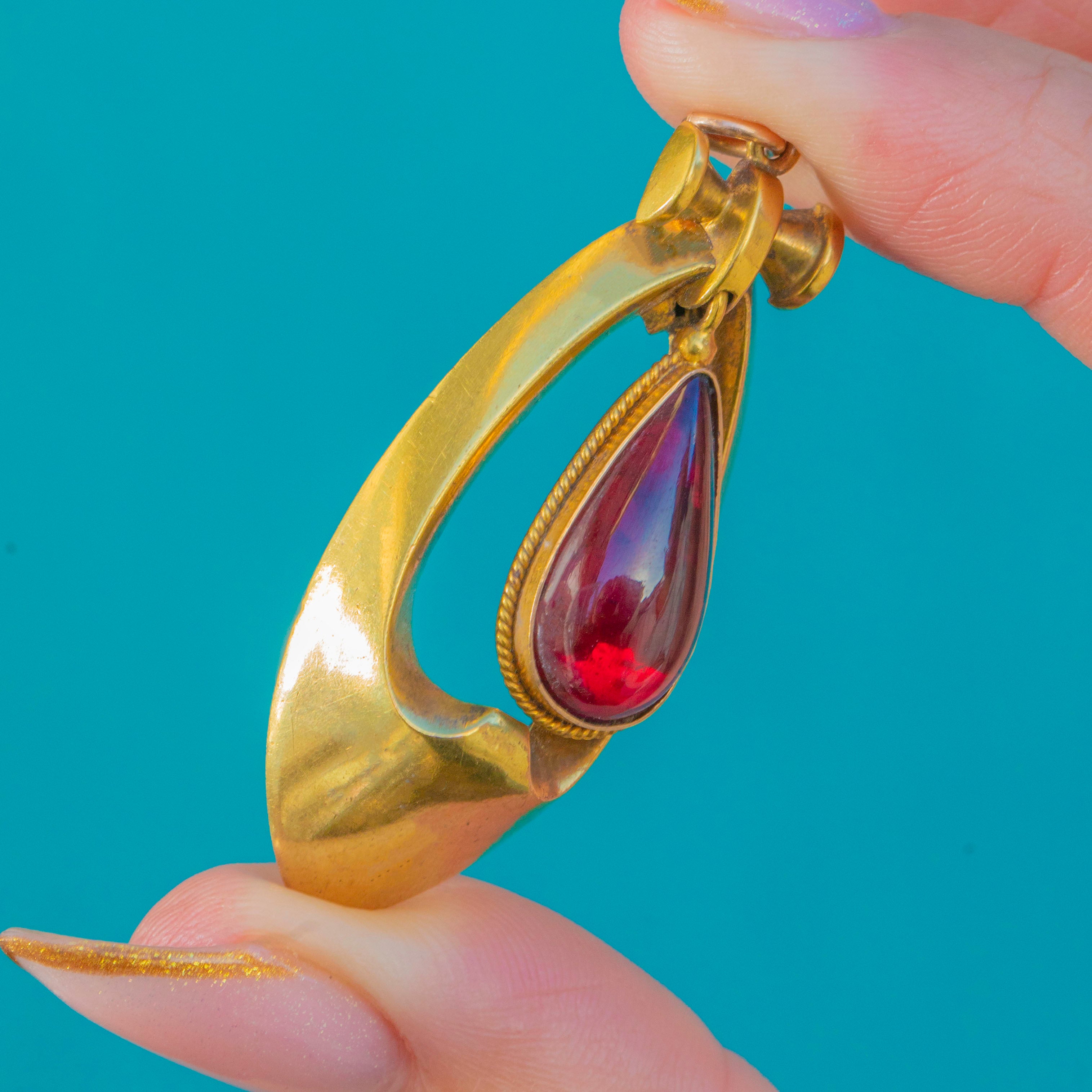 アンティーク 18ct ゴールド エトルリア復興 ガーネット ペンダント、1884年