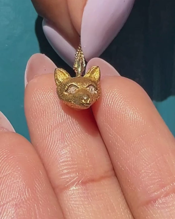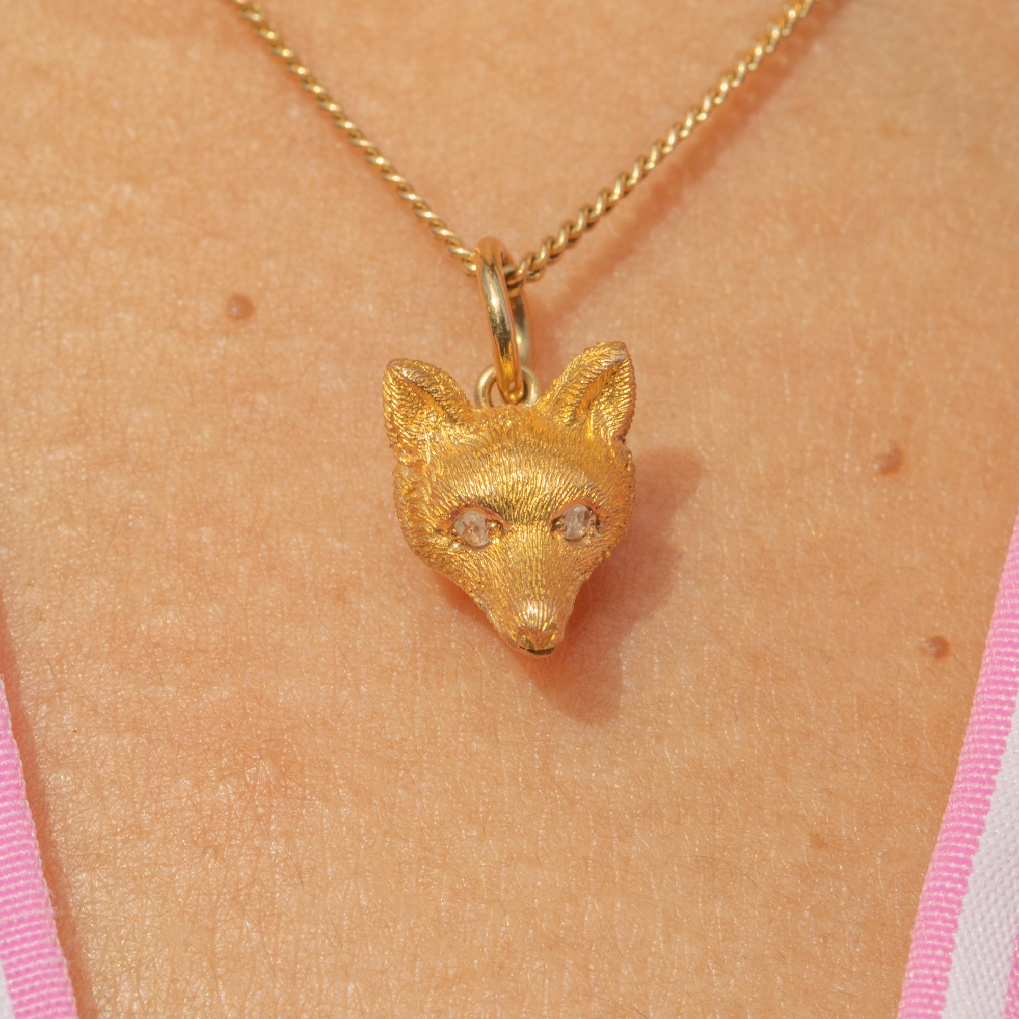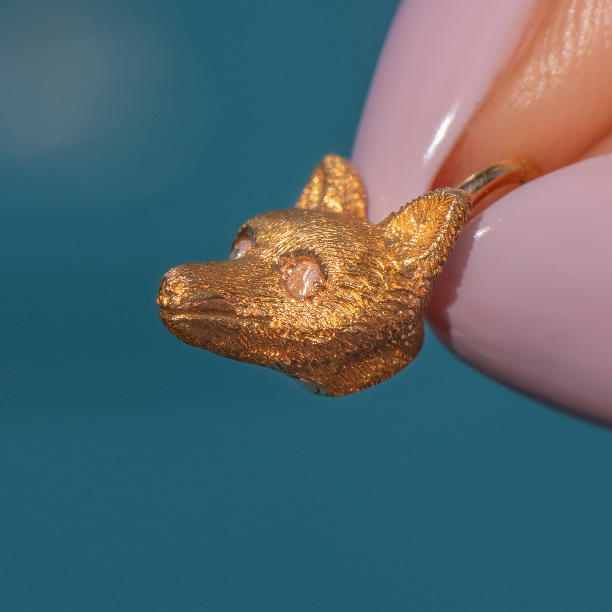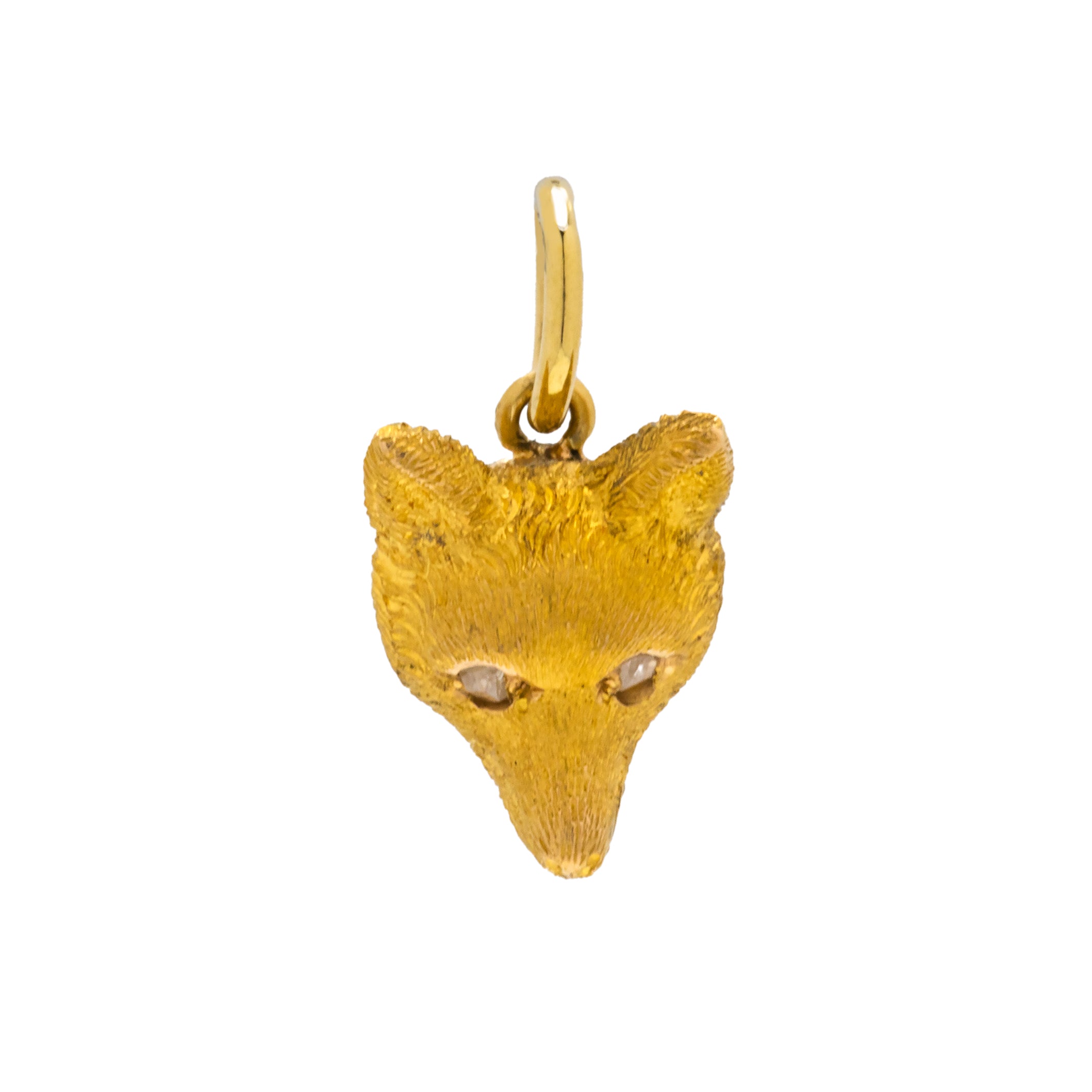 アンティーク 18ct ゴールド フォックス チャーム ダイヤモンドの目付き