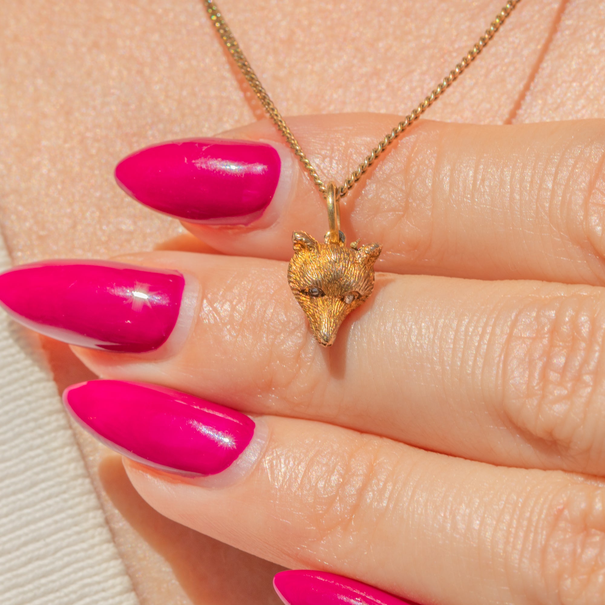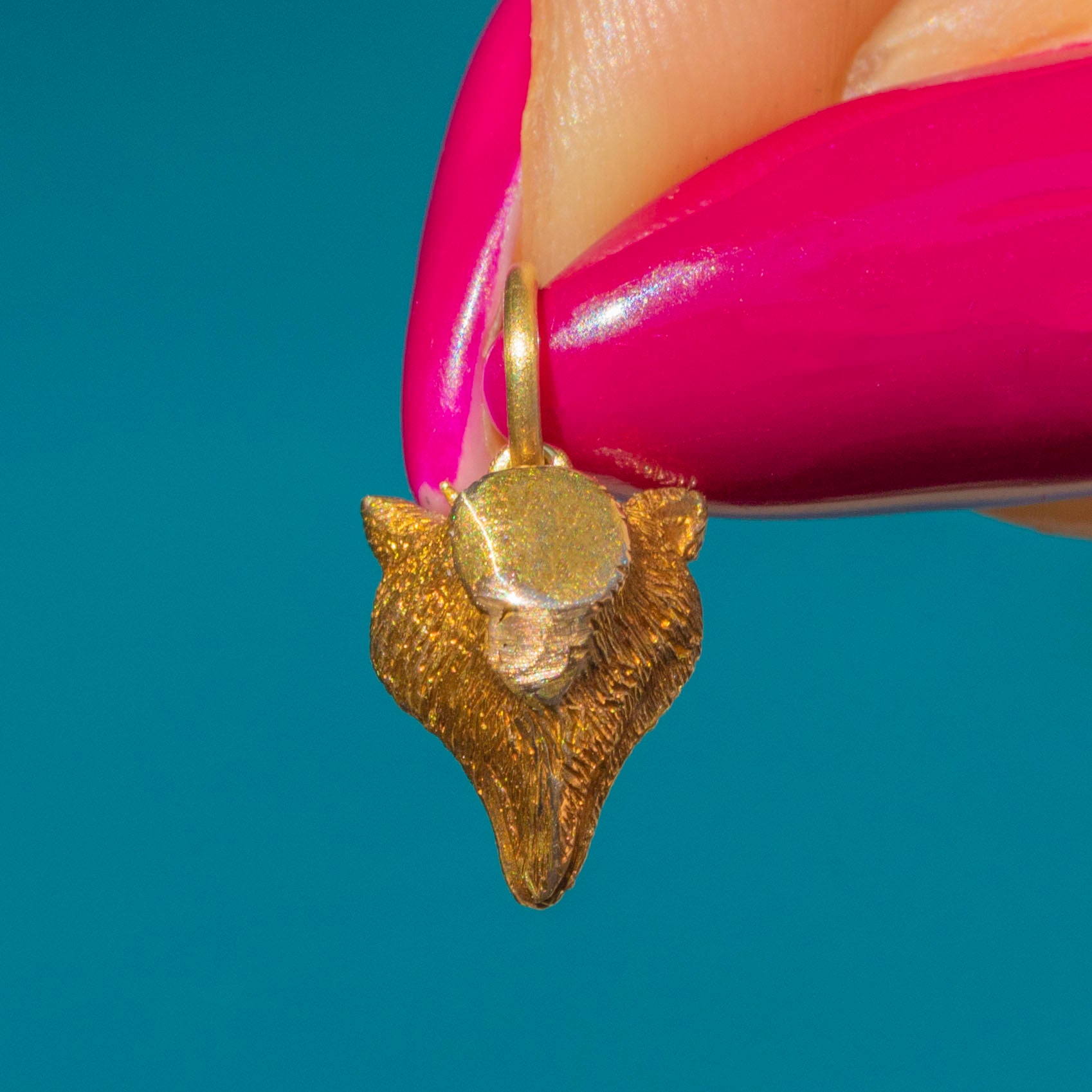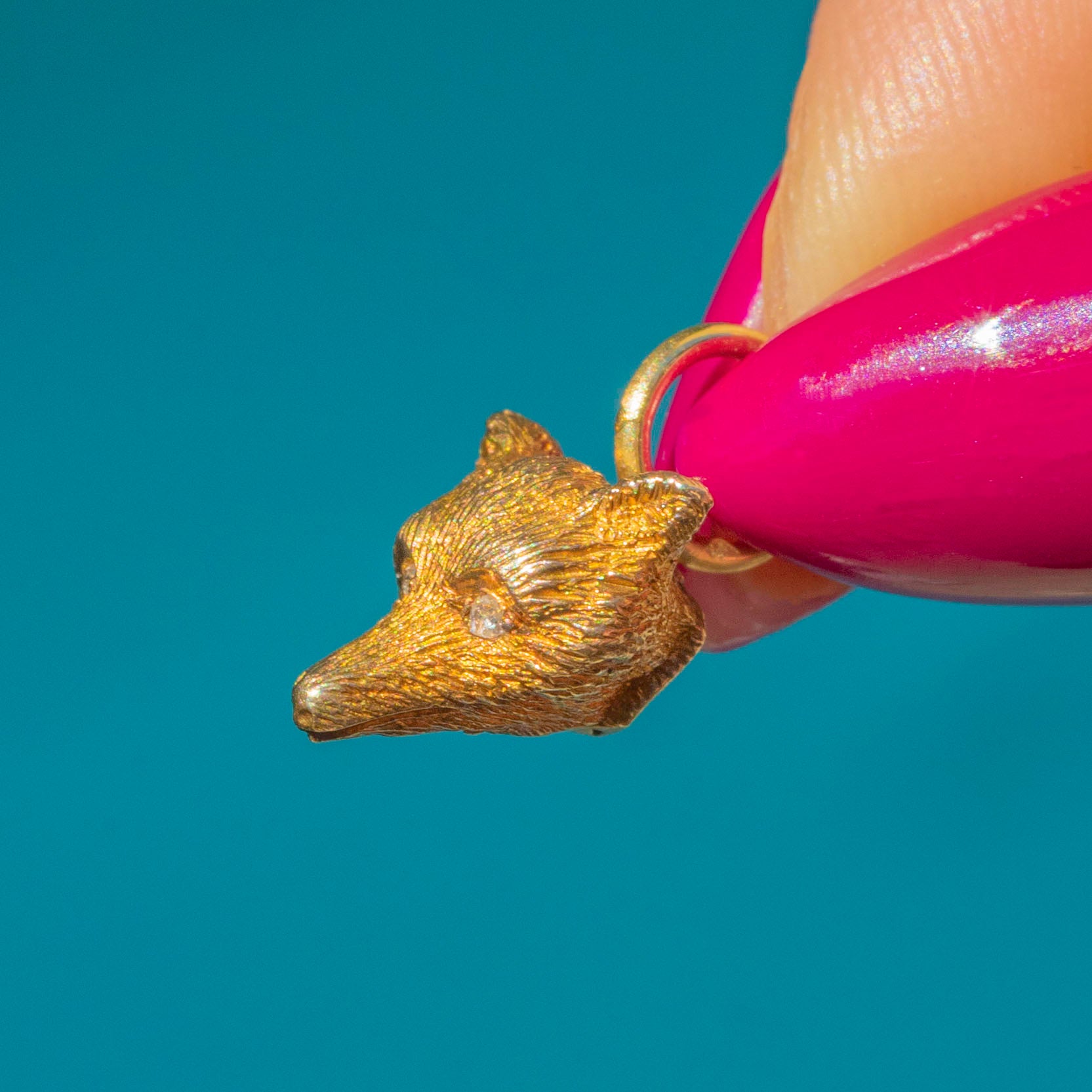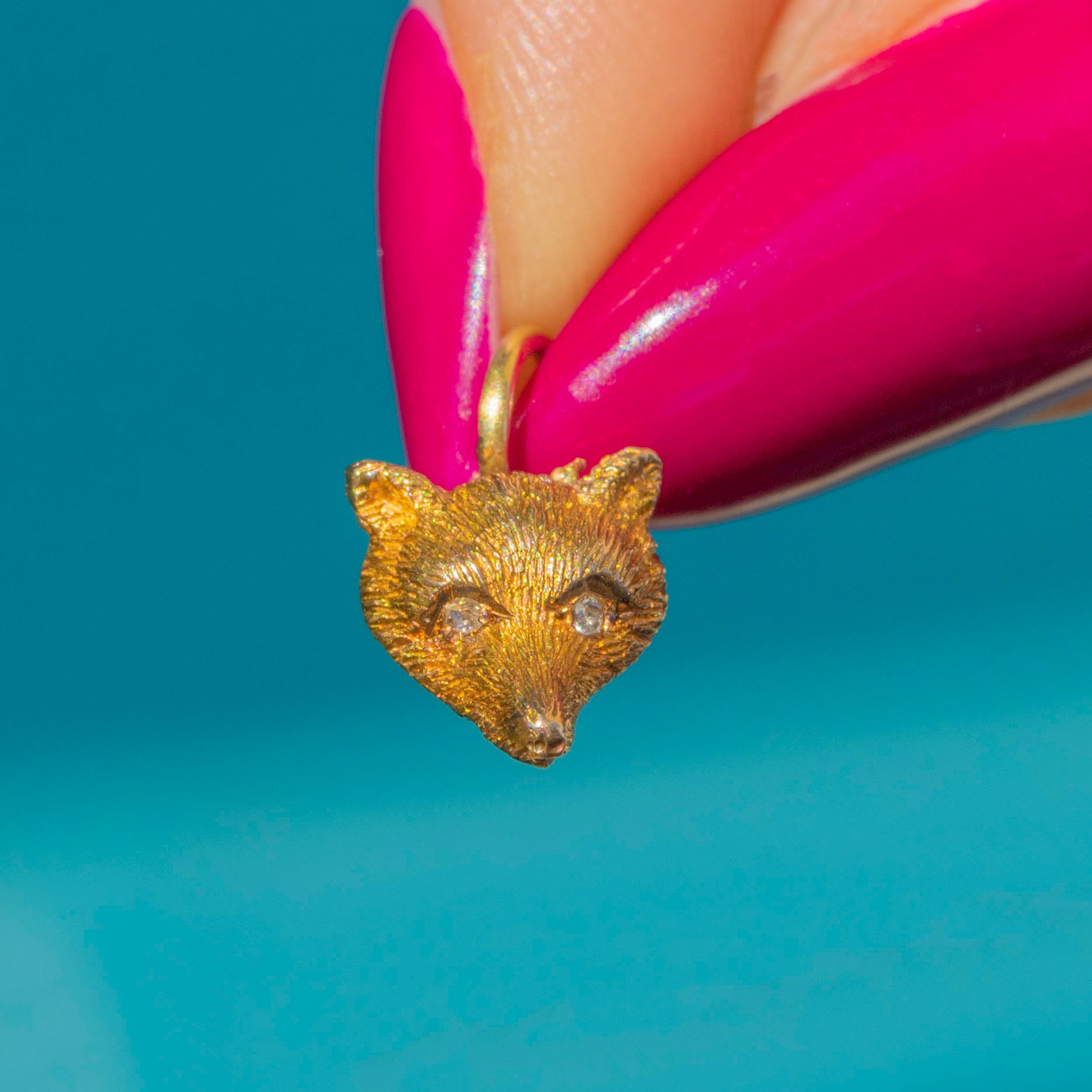 Antique 18ct Gold Fox Head Charm with Diamond Eyes