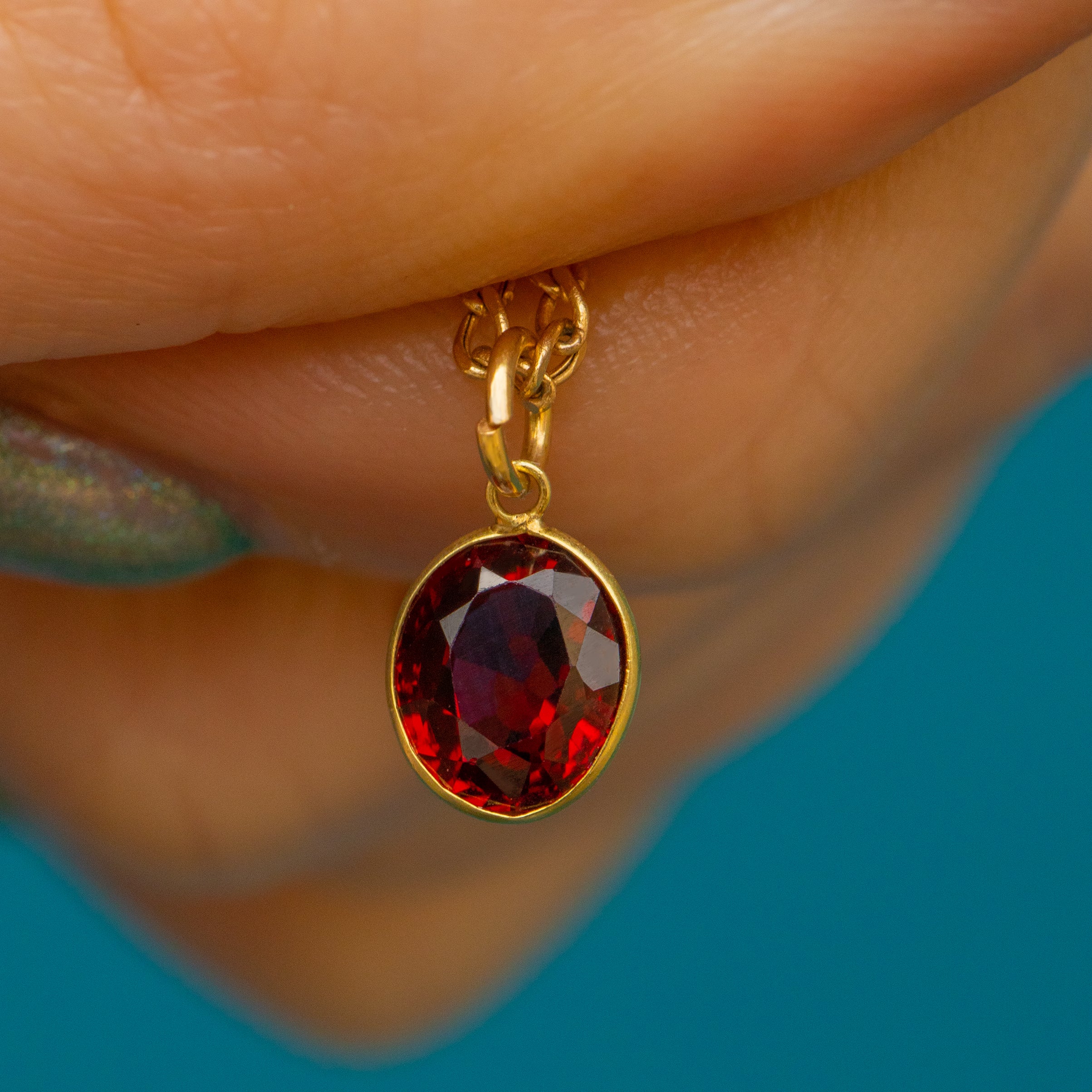 Her dainty size packs a serious punch with highly saturated hues, and once suspended from an antique Gold chain, this Victorian Garnet charm will bring the perfect amount of sparkle.