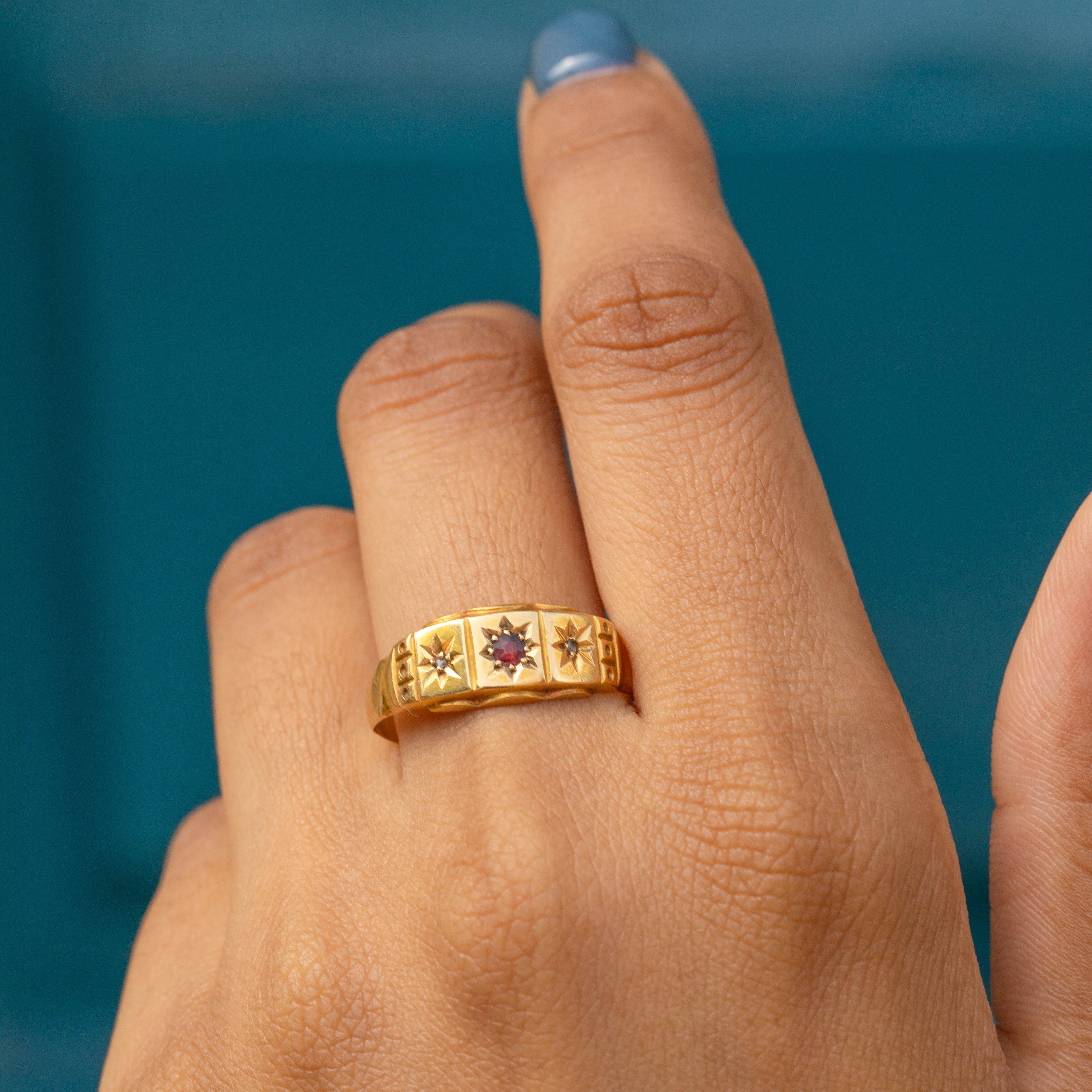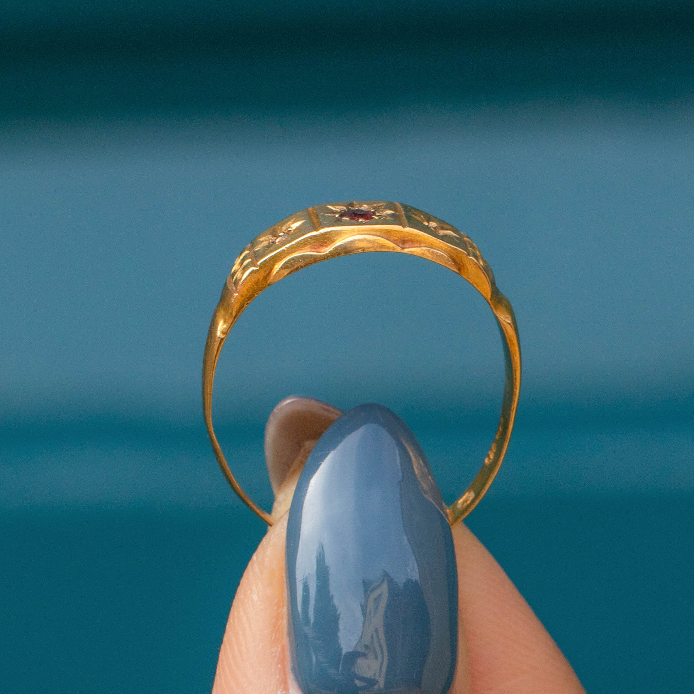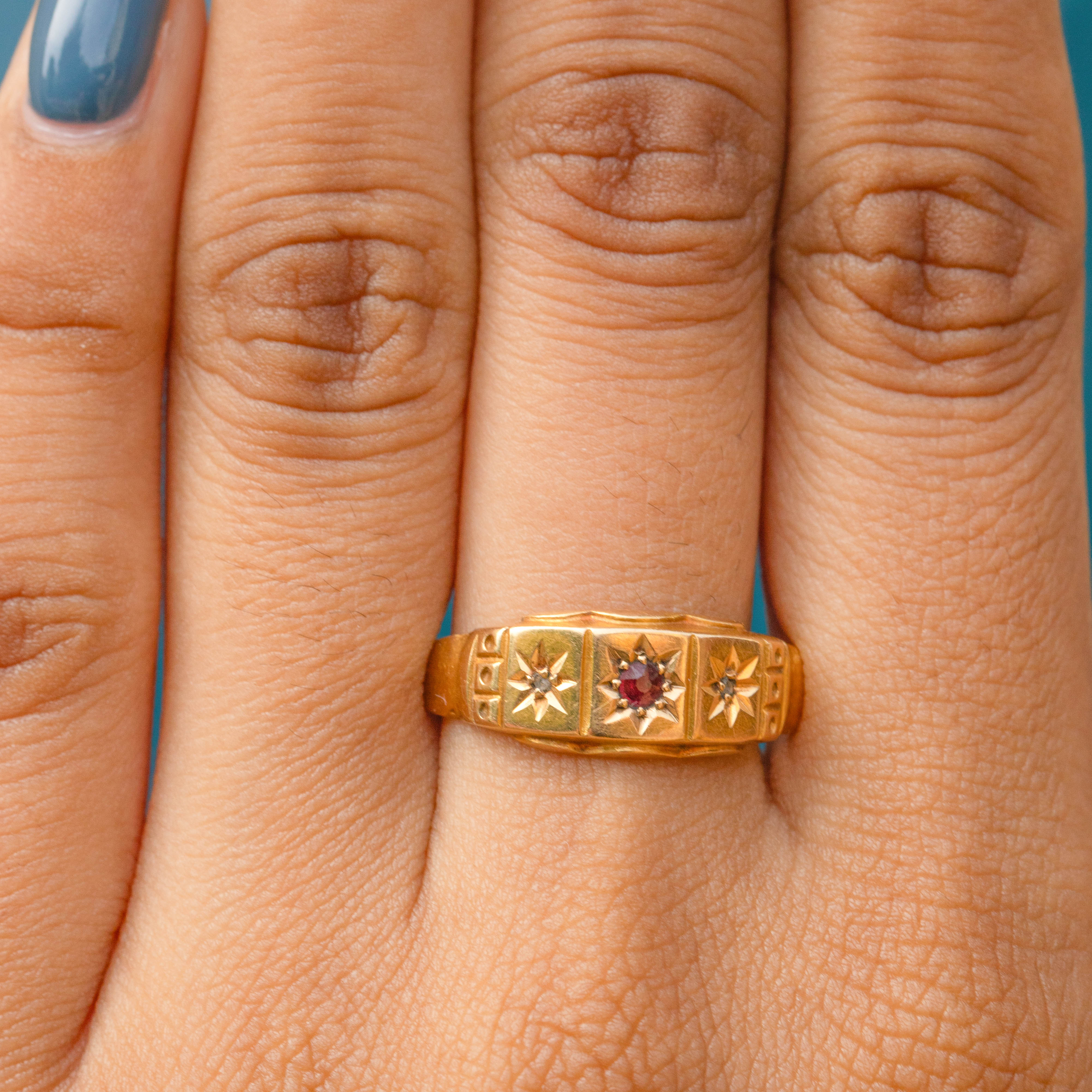 アンティーク 18ct ゴールド ガーネット ダイヤモンド ジプシーリング