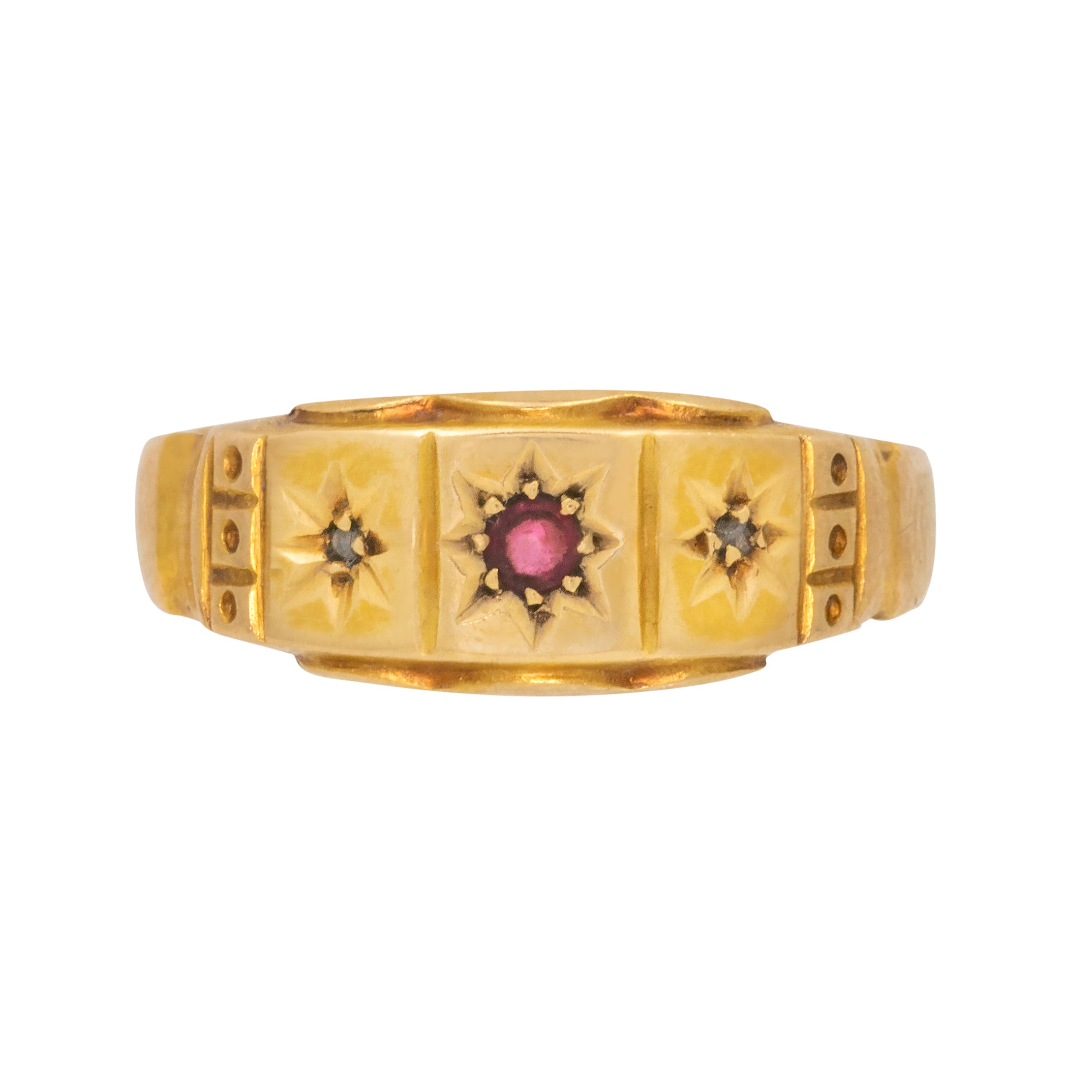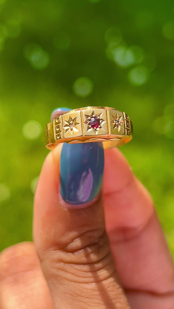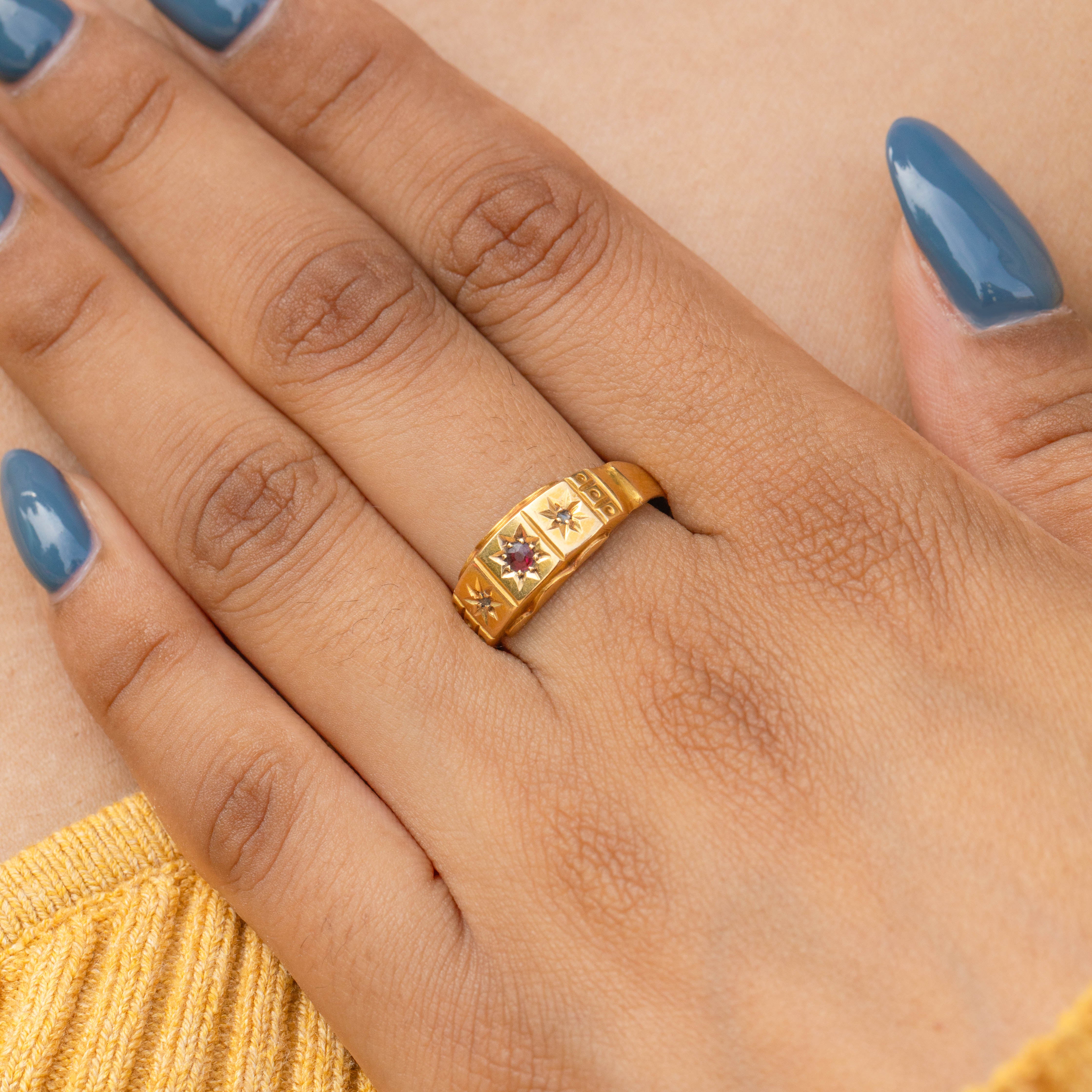 アンティーク 18ct ゴールド ガーネット ダイヤモンド ジプシーリング