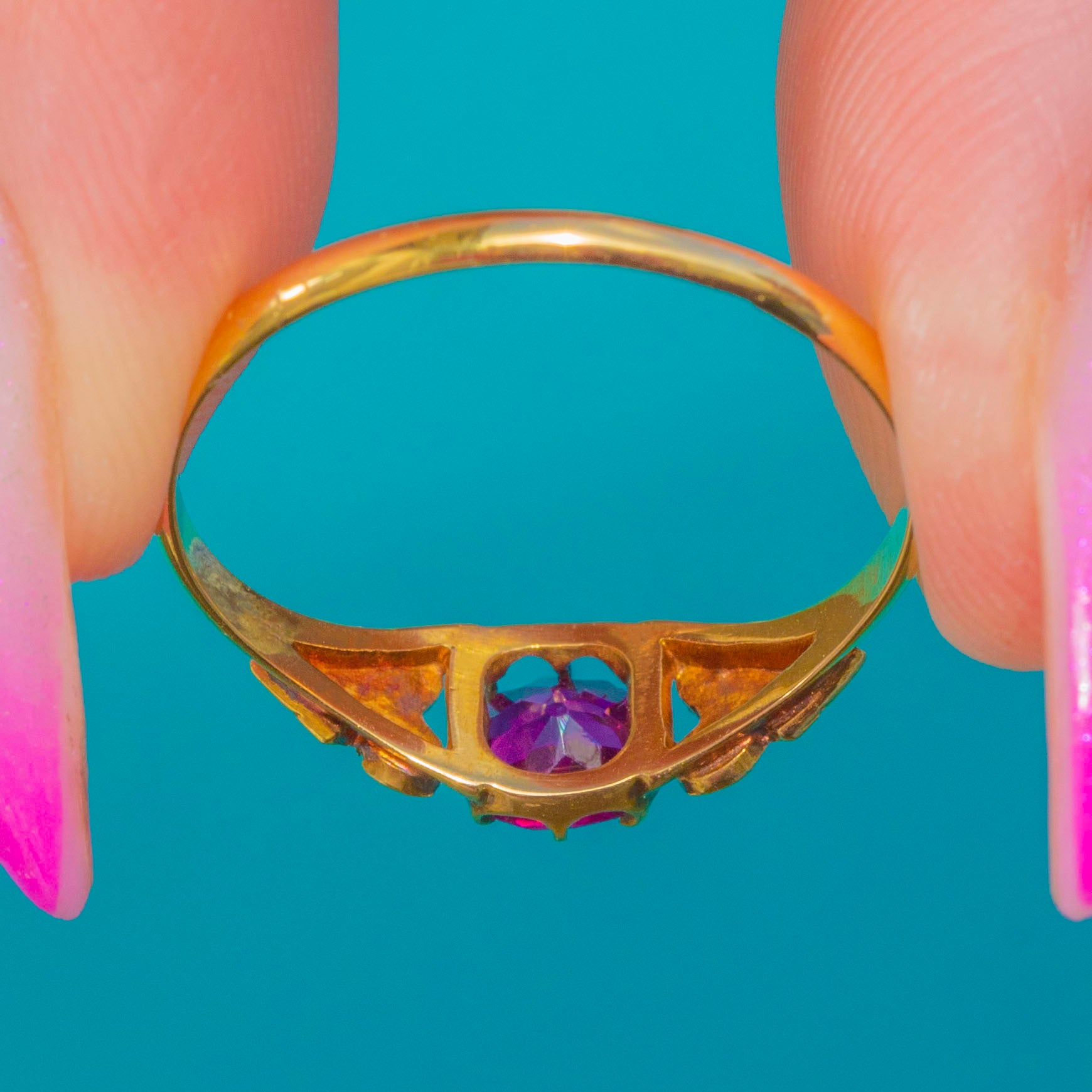 アンティーク 18ct ゴールド ピンクガーネット パール トレフォイル リング