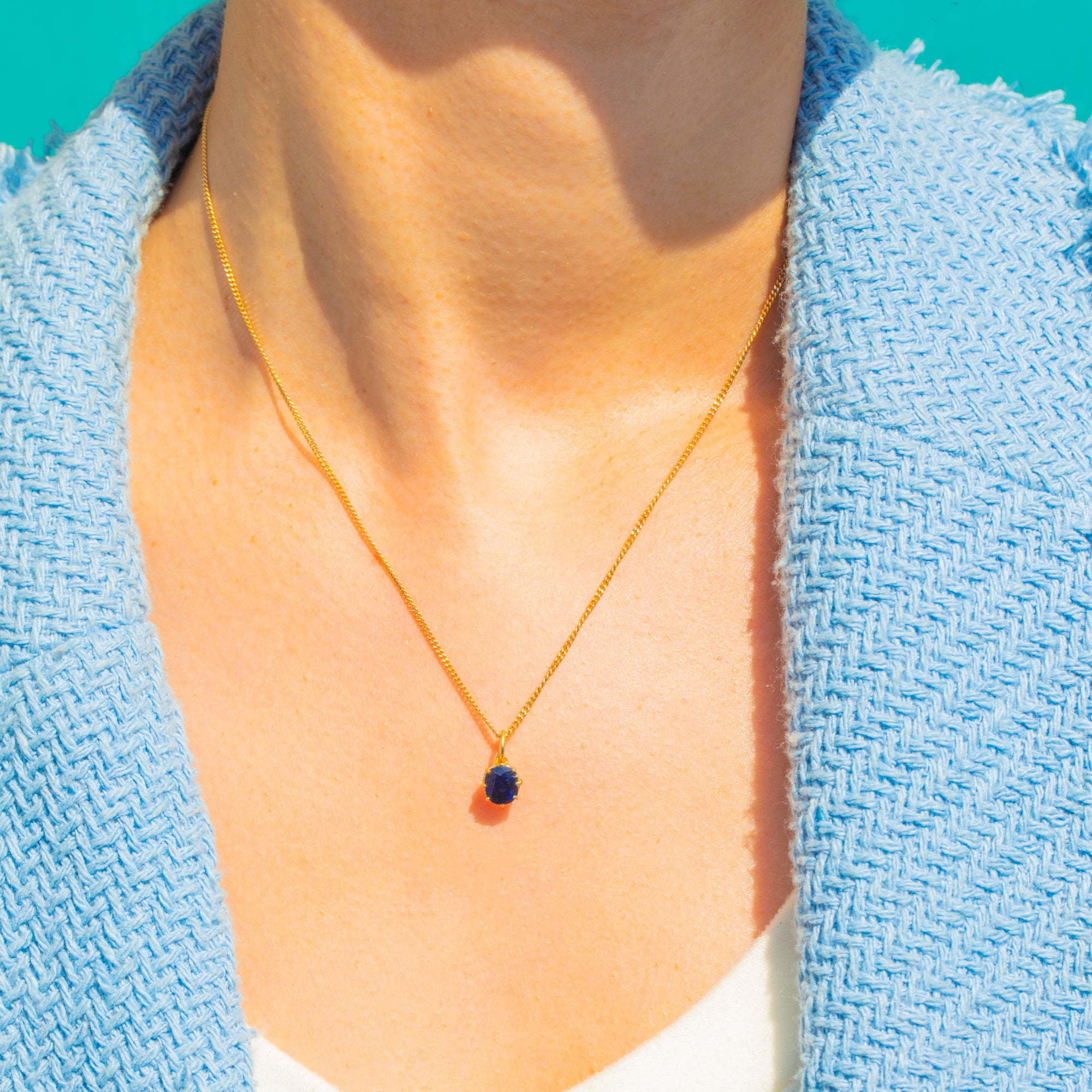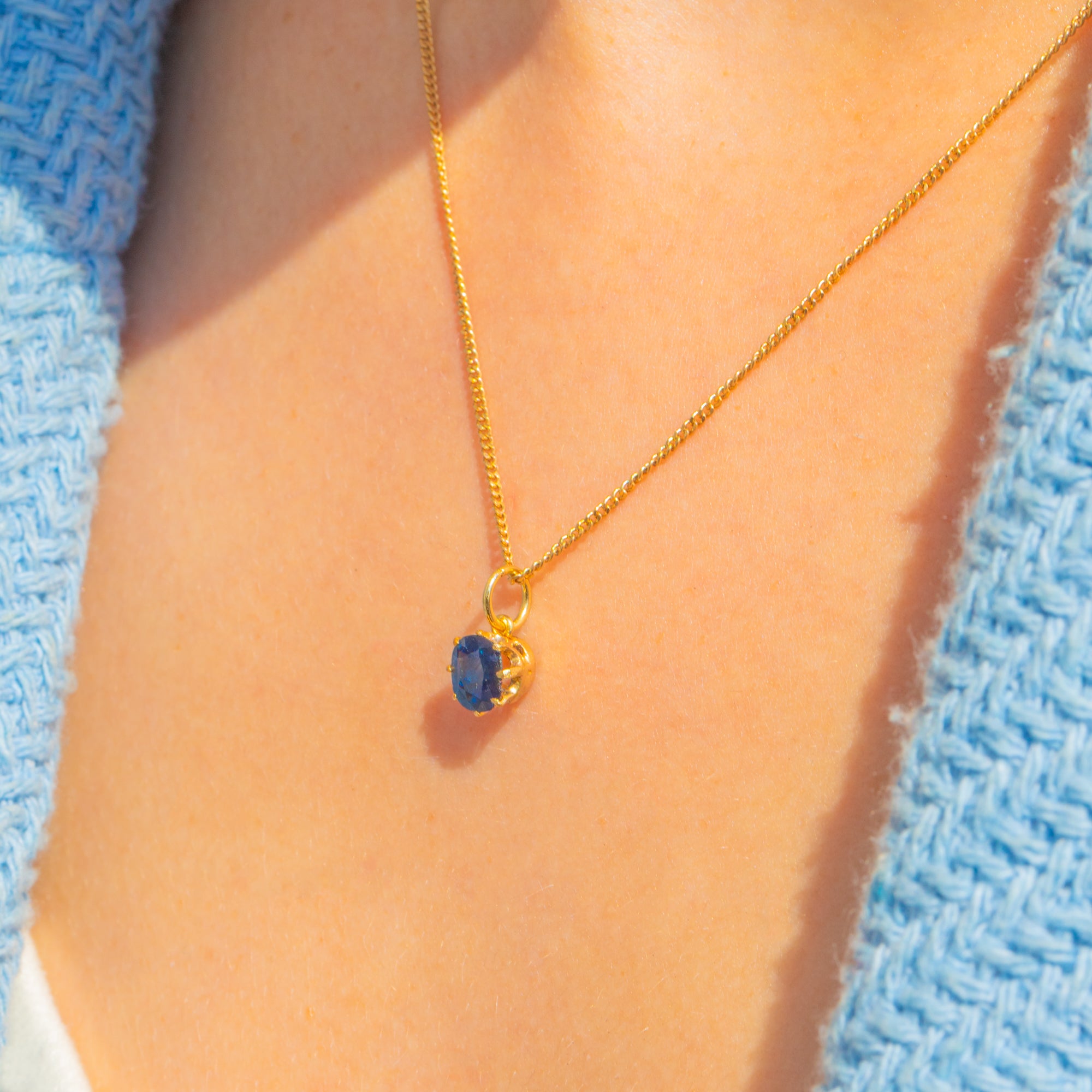 小ぶりなVictorianの逸品。18金ゴールドにセットされたサファイアチャームは、濃密なブルーの天然サファイアが主役です。アンティークのオーバルファセットカットストーンは、約0.65カラットで加熱処理の痕跡はなく、気品ある深みと生き生きとした輝きを放ちます。温かみのある18金ゴールドのクラシックな爪留めで美しく包み込まれています。