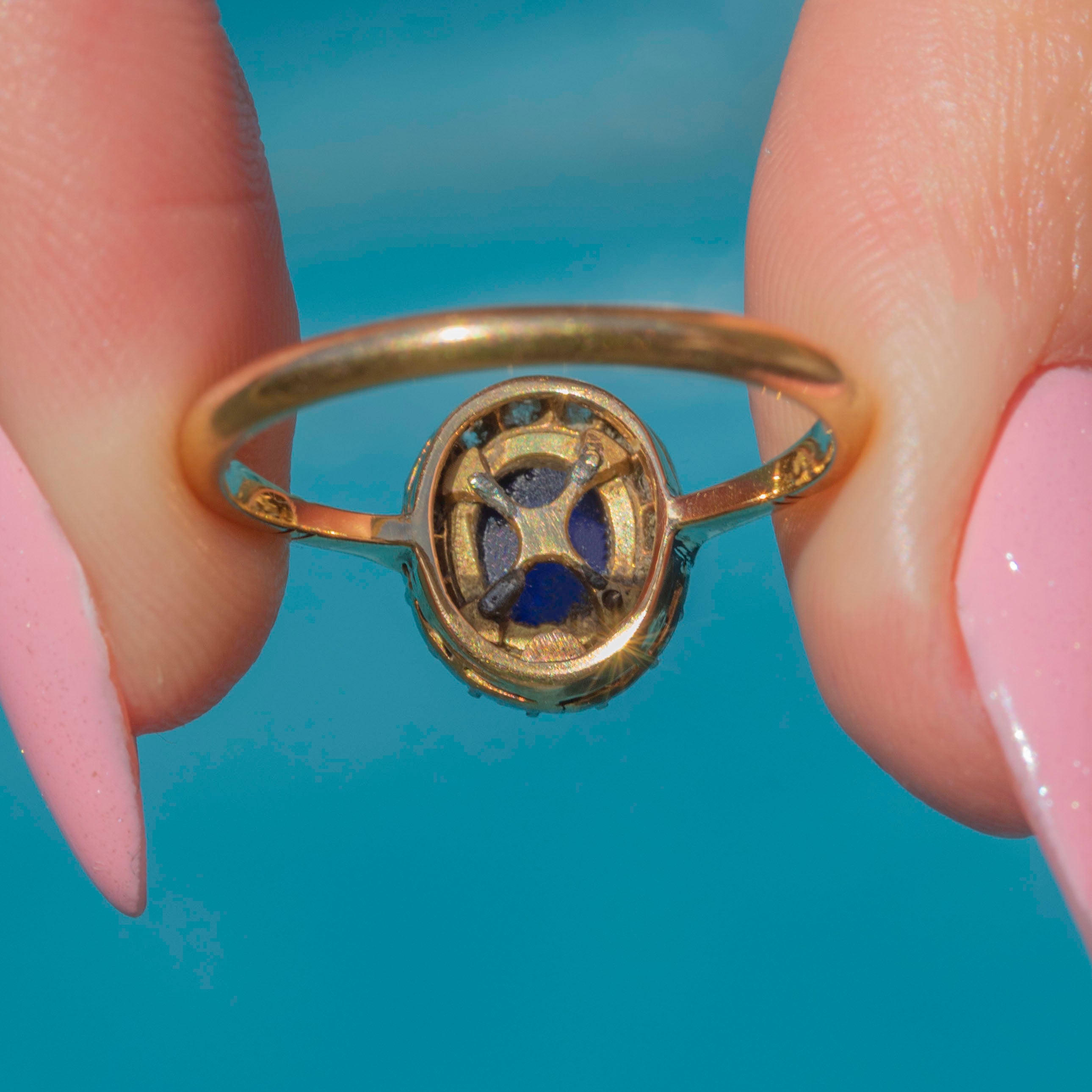 This antique 18ct Gold Natural Sapphire cabochon Diamond cluster ring is an absolutely exquisite and remarkable piece!