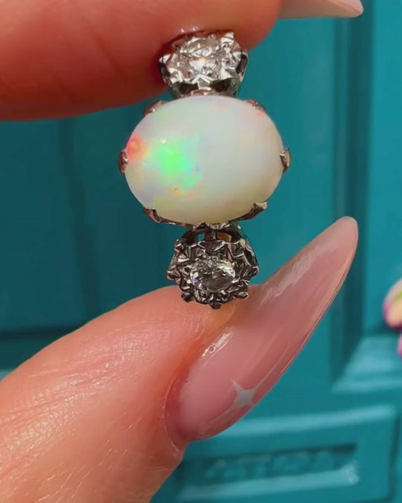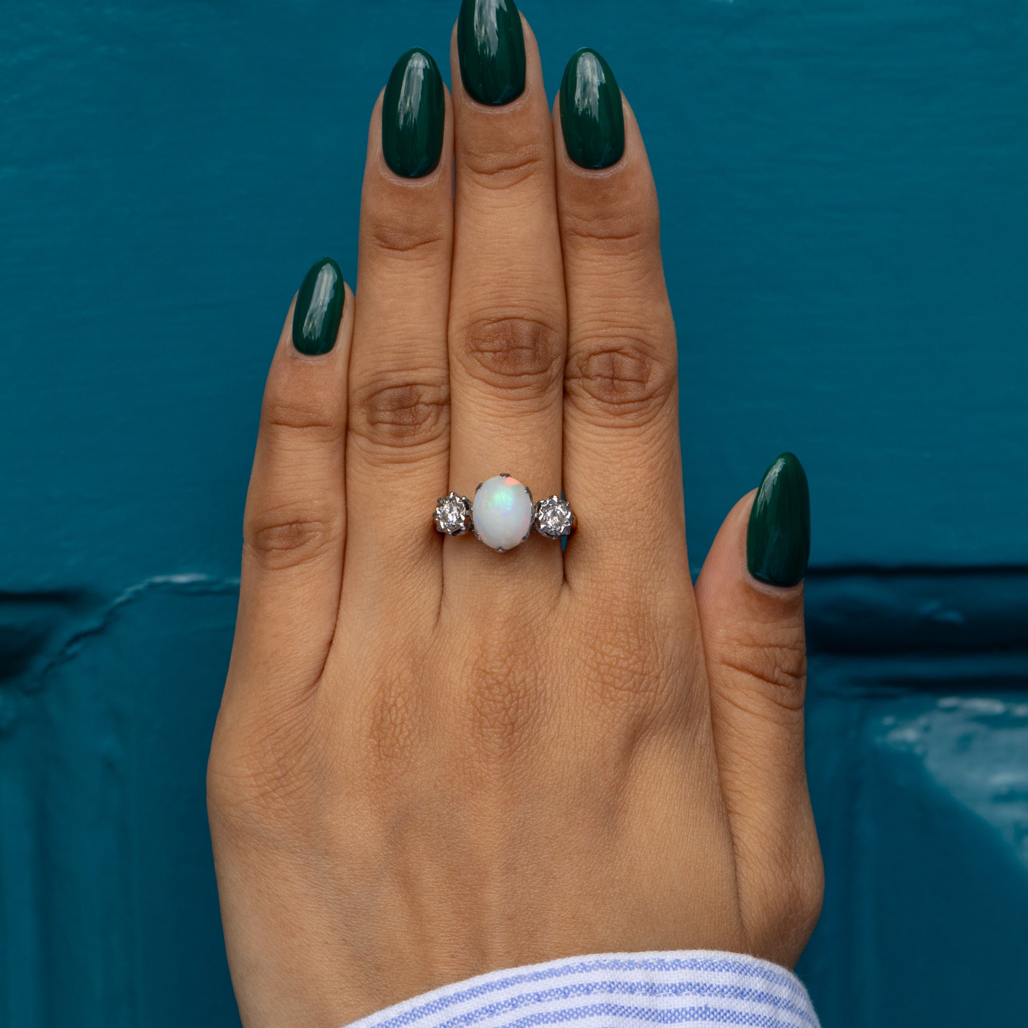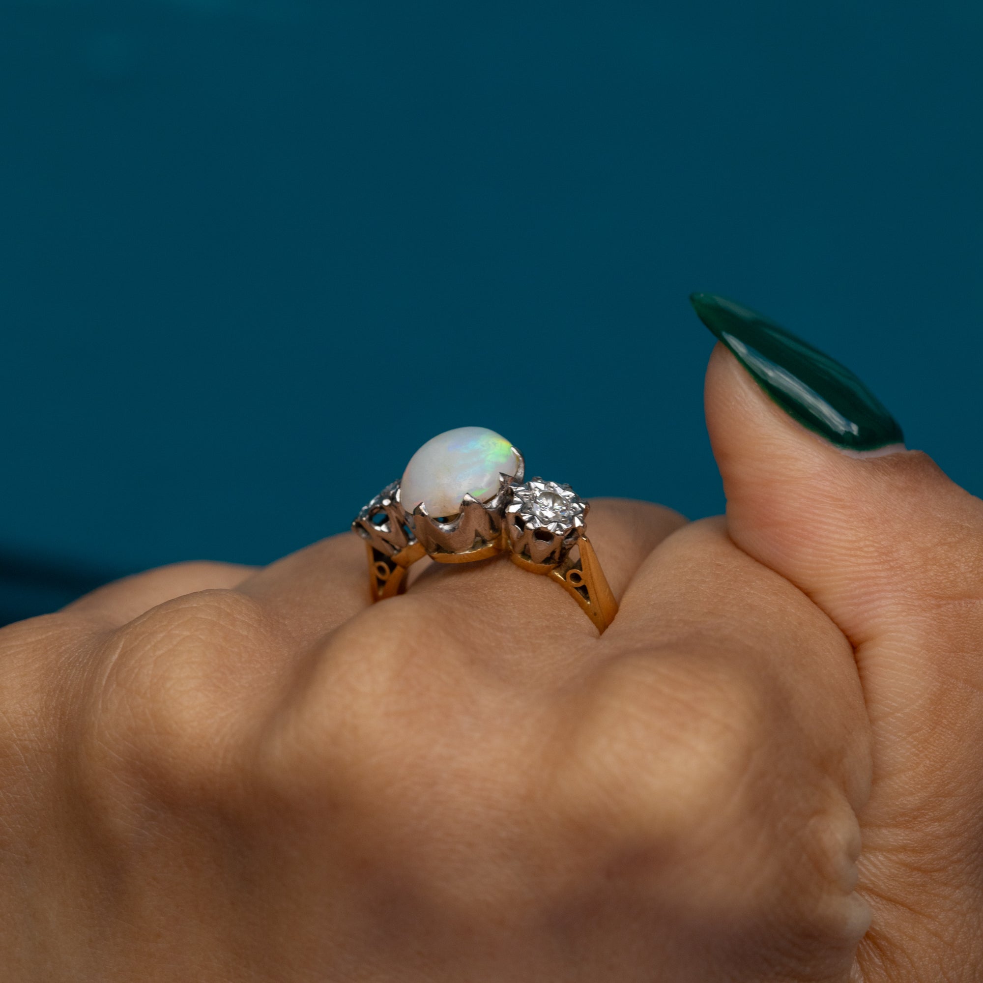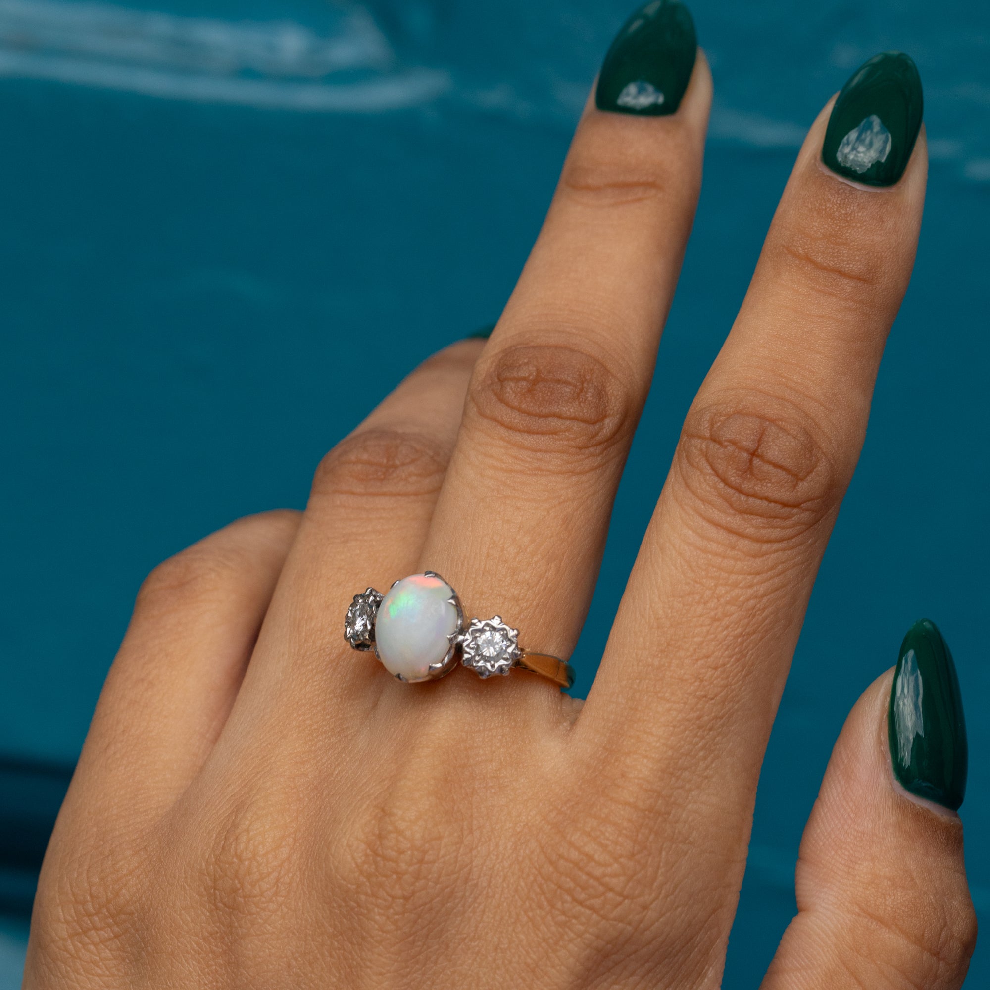 アンティーク 18ct ゴールド オパール ダイヤモンド トリロジーリング、1.80ct オパール