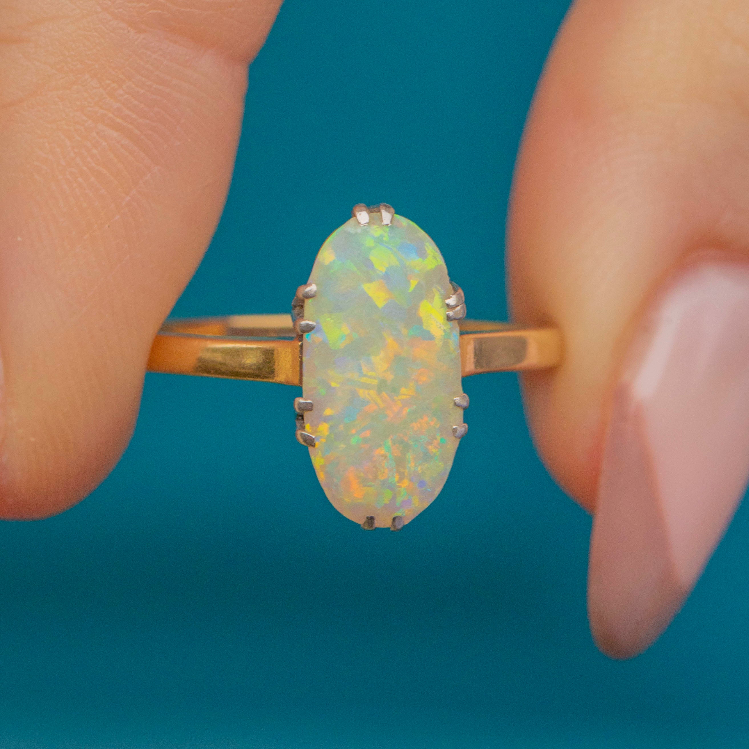 Antique 18ct Gold Opal Solitaire Ring, 0.96ct