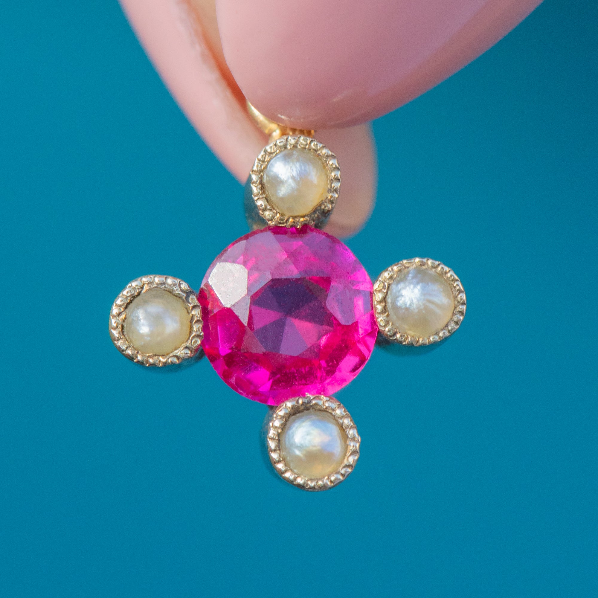 Antique 18ct Gold Pink Sapphire Pearl Charm, 0.50ct