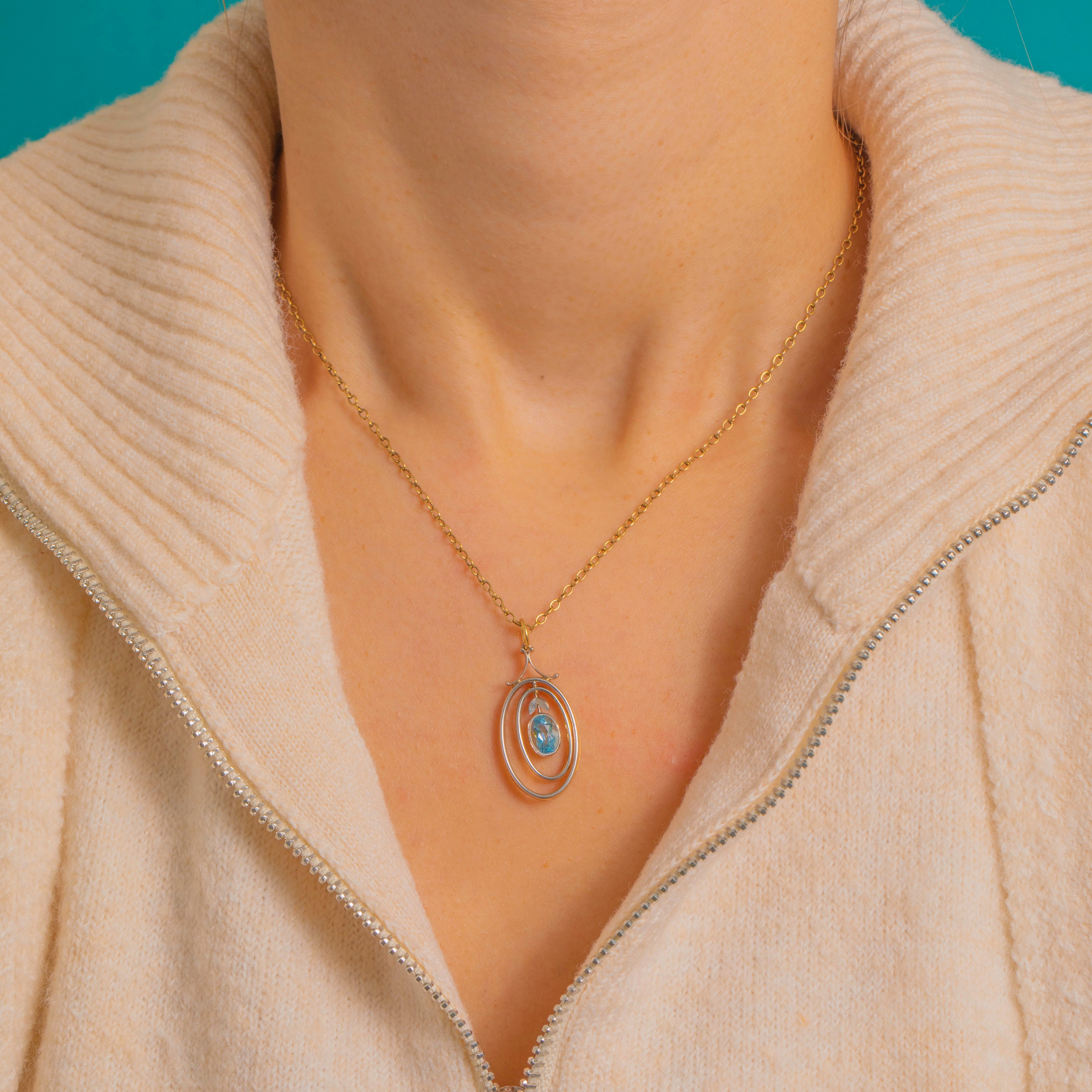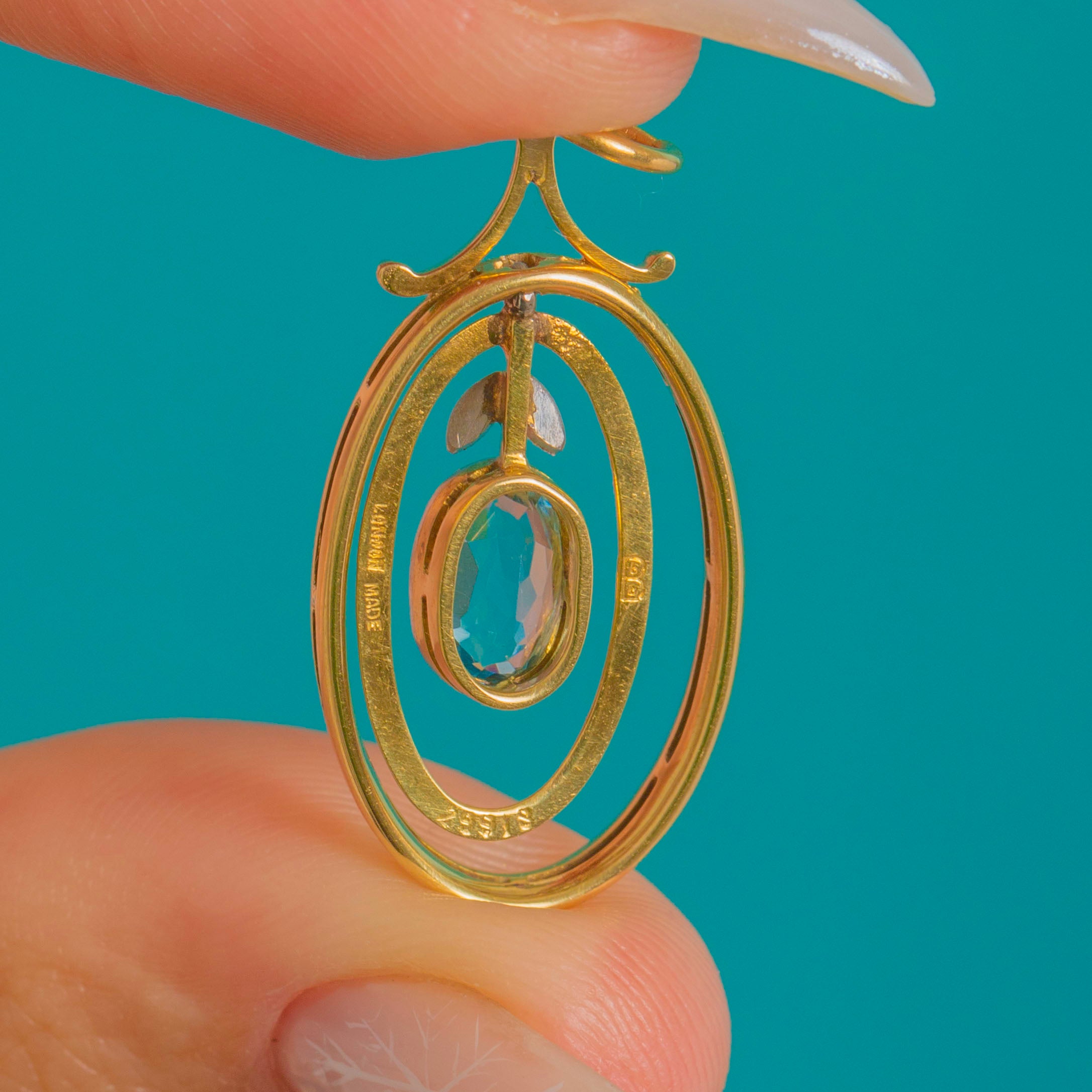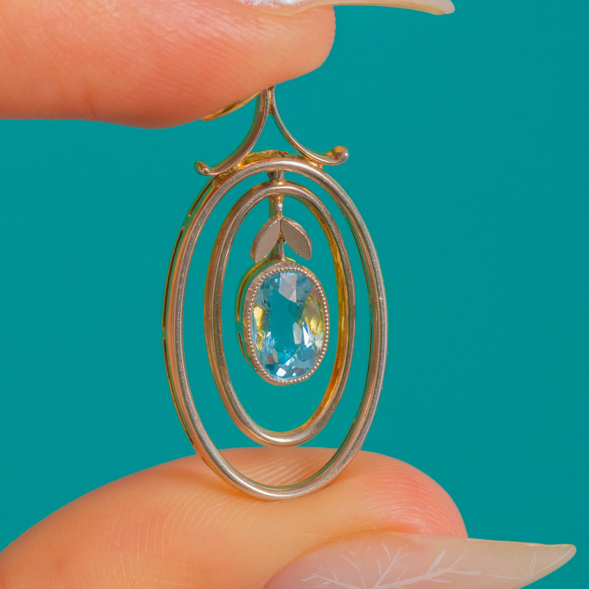 アンティーク 18金ゴールド&プラチナ アクアマリン ドロップペンダント 0.53カラット アクアマリン