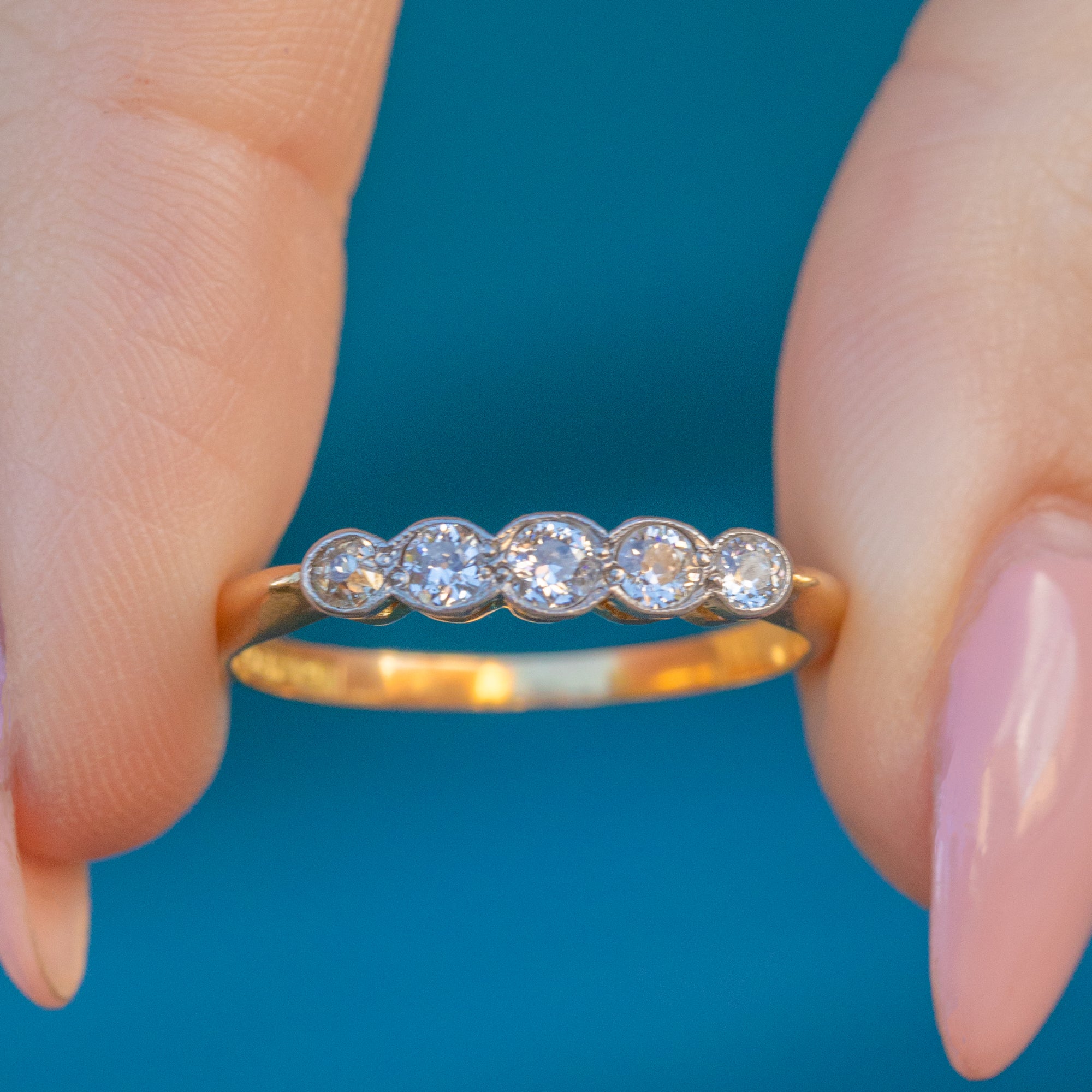 Antique 18ct Gold & Platinum Diamond Five Stone Ring, 0.30ct