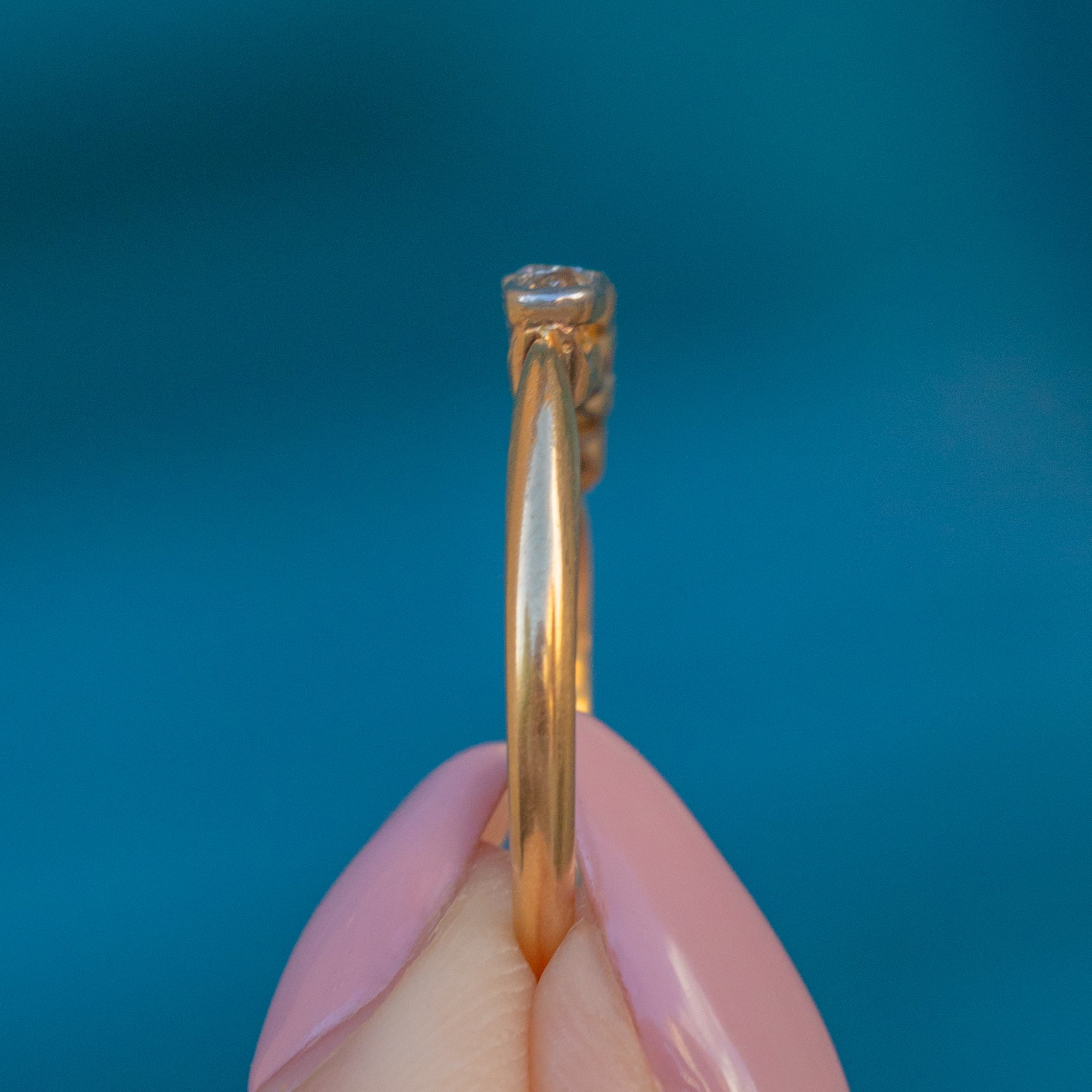 This Edwardian Diamond ring has a beautiful feminine quality and exudes elegance. The ring band is crafted from buttery 18ct Gold, and sits daintily on the finger, making this piece ideal for an upcoming engagement!