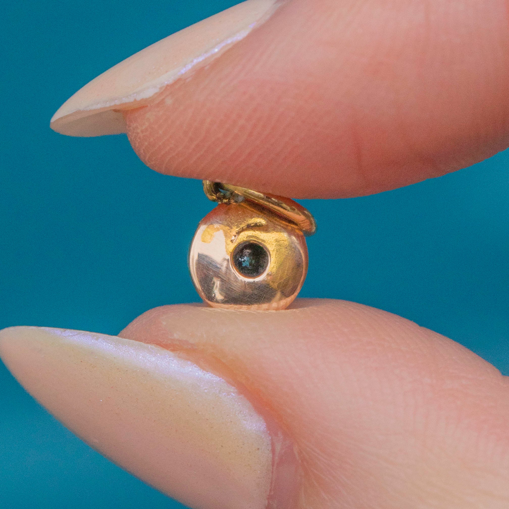 This exquisite antique 18ct Gold puffy Diamond charm is destined to be a treasured piece in your jewellery collection! Fashioned from rich, radian 18ct Gold, her softly rounded shape reflects light beautifully, and the flush-set Diamond adds a touch of brilliance.