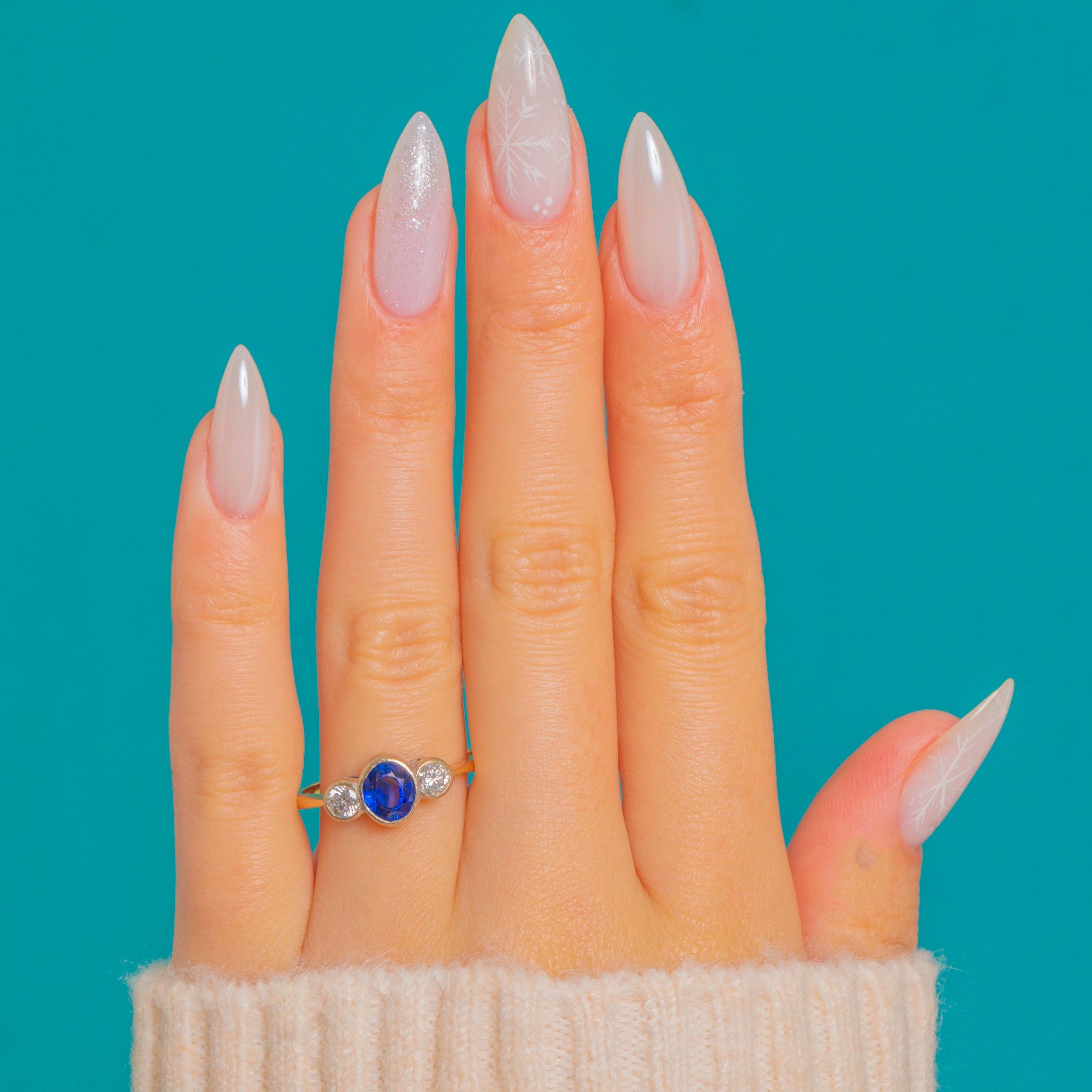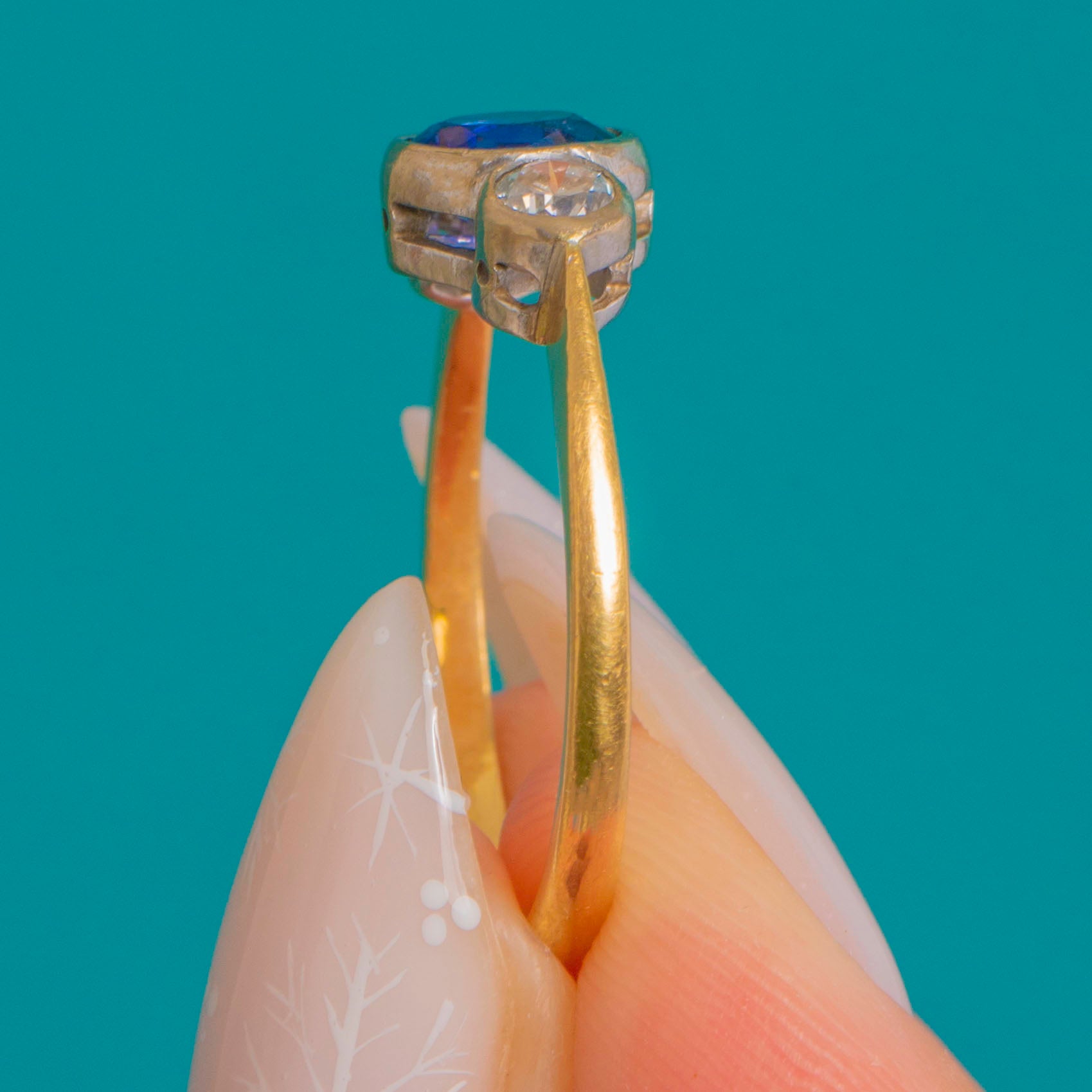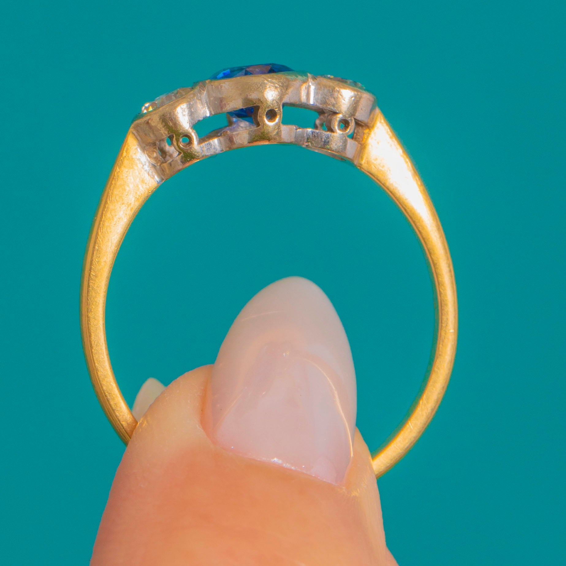 アンティーク 18ct ゴールド ロイヤルブルーサファイア ダイヤモンド トリロジーリング
