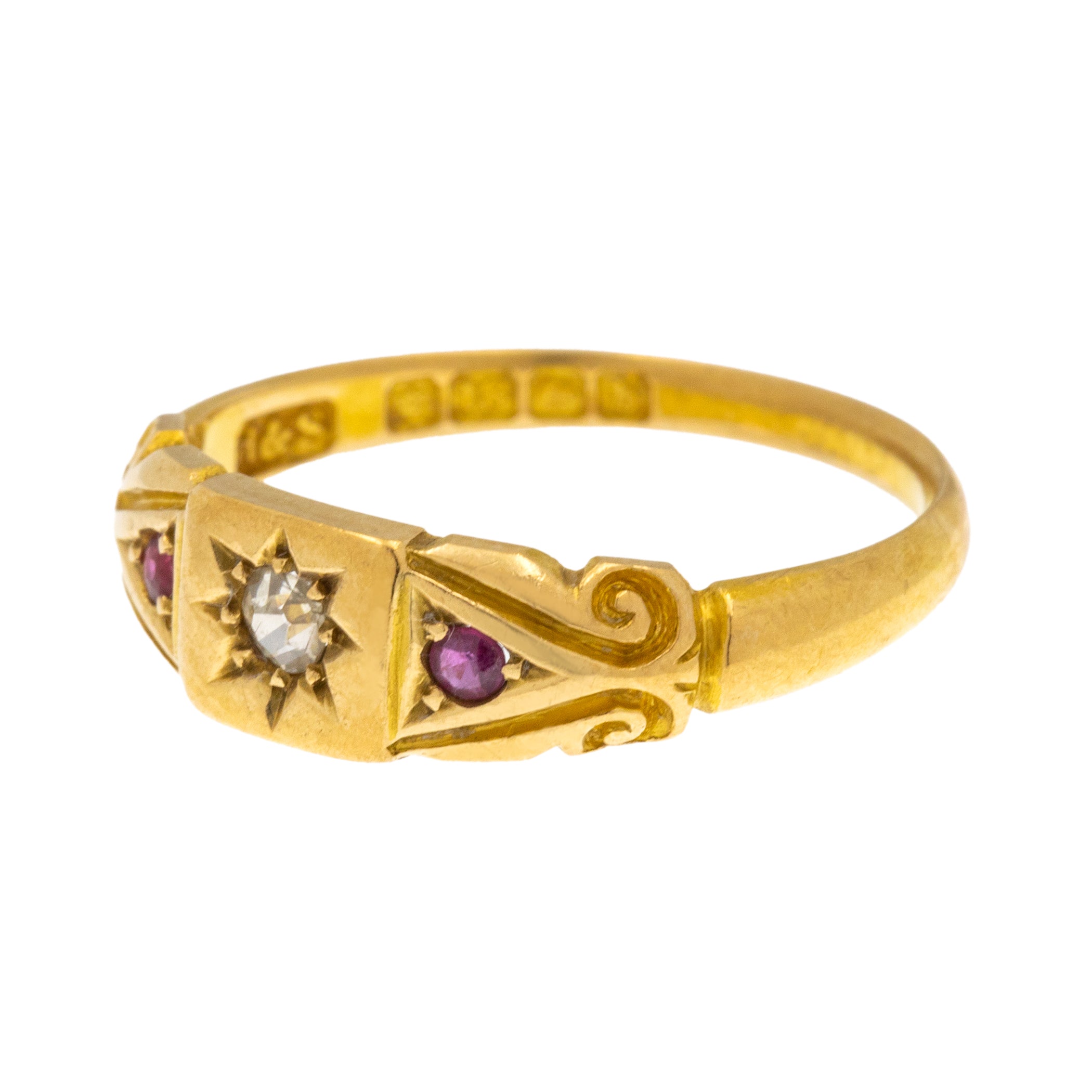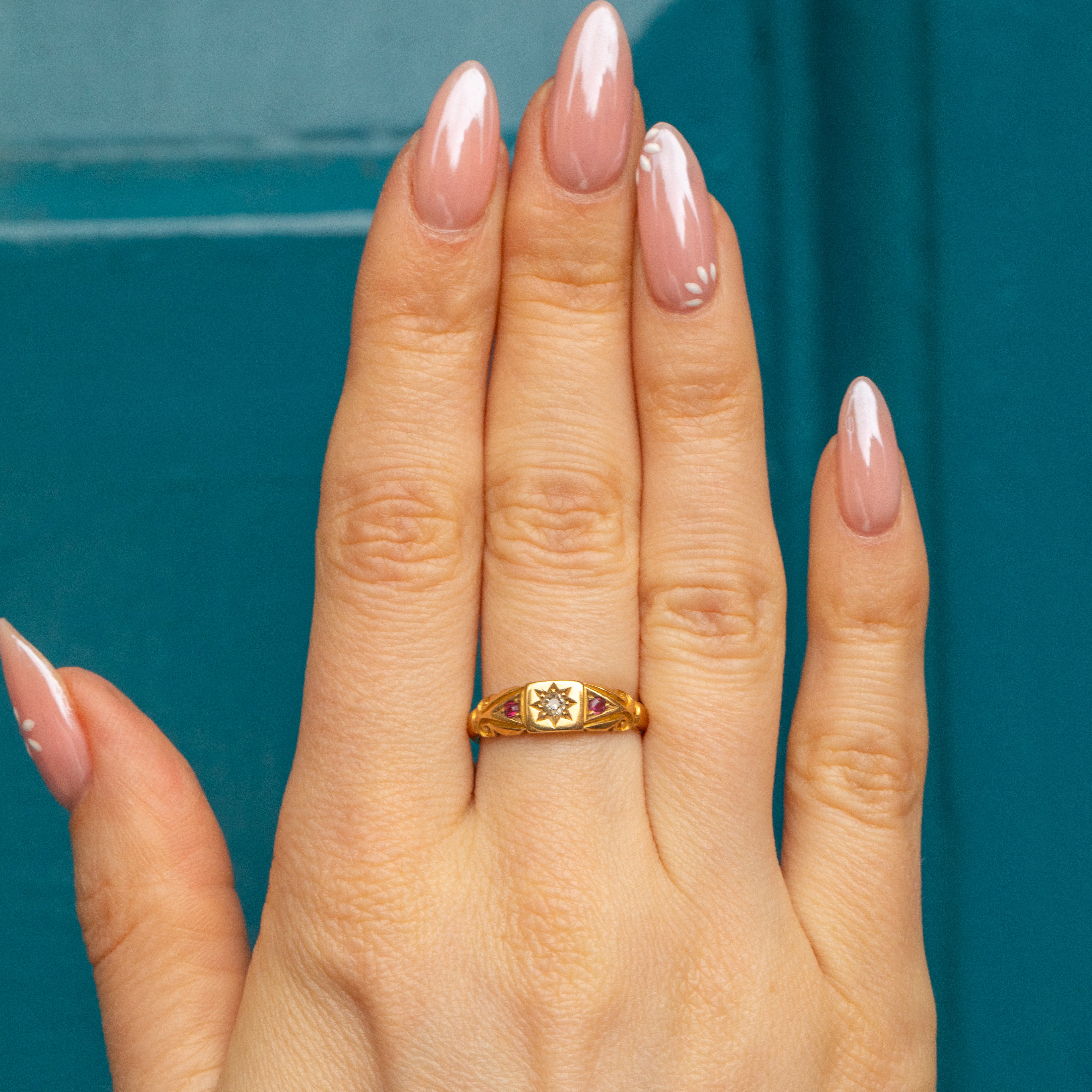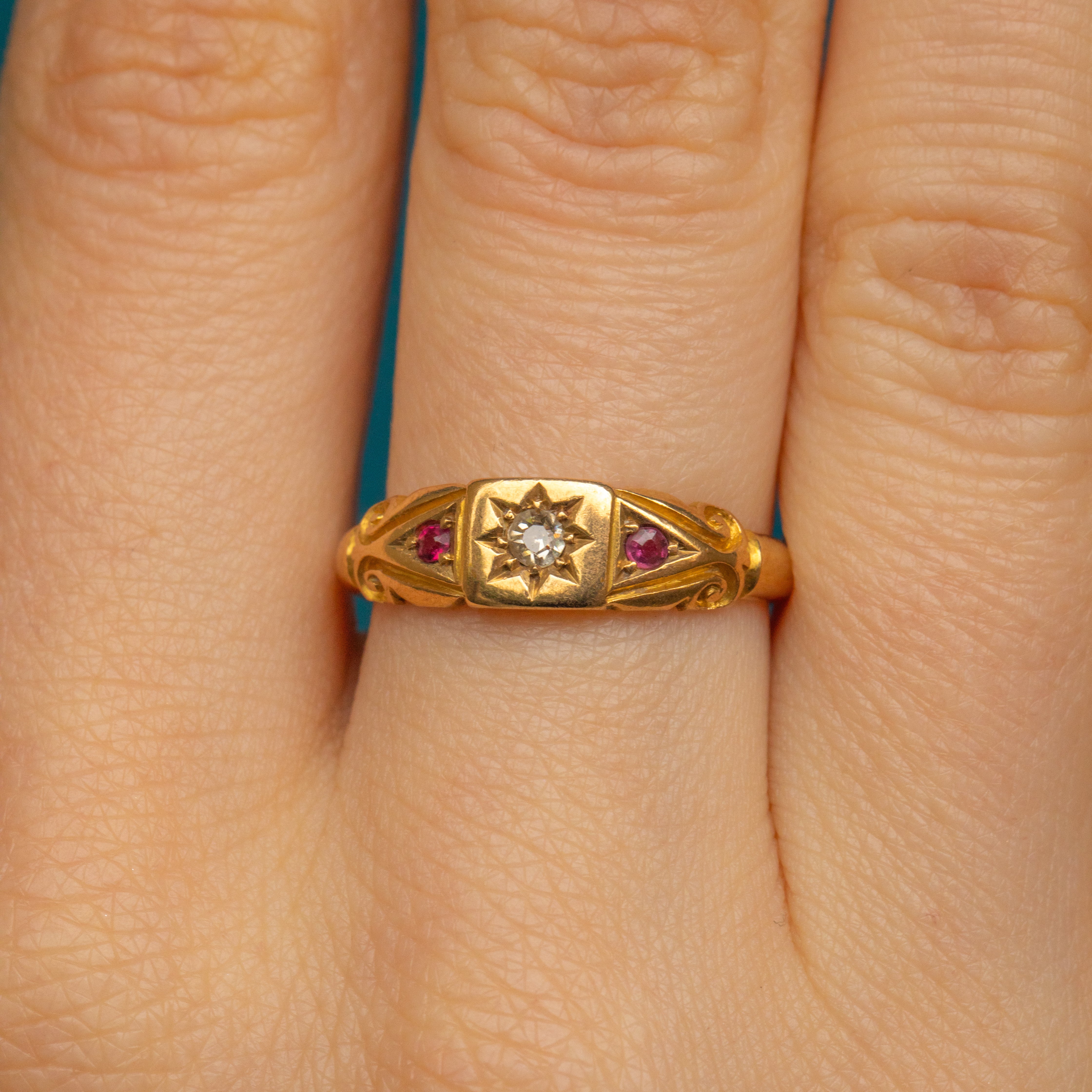 アンティーク 18ct ゴールド ルビー ダイヤモンド ジプシーリング