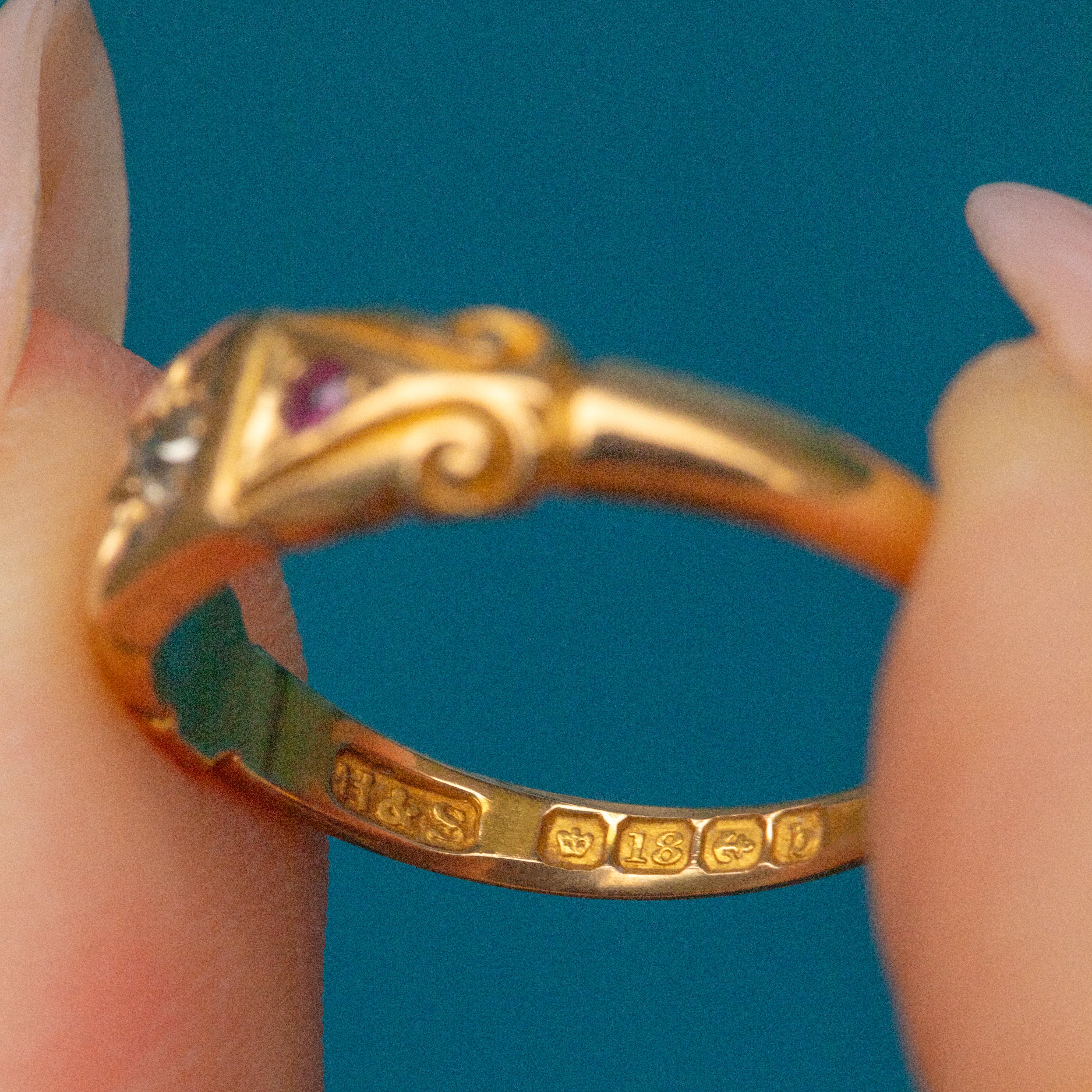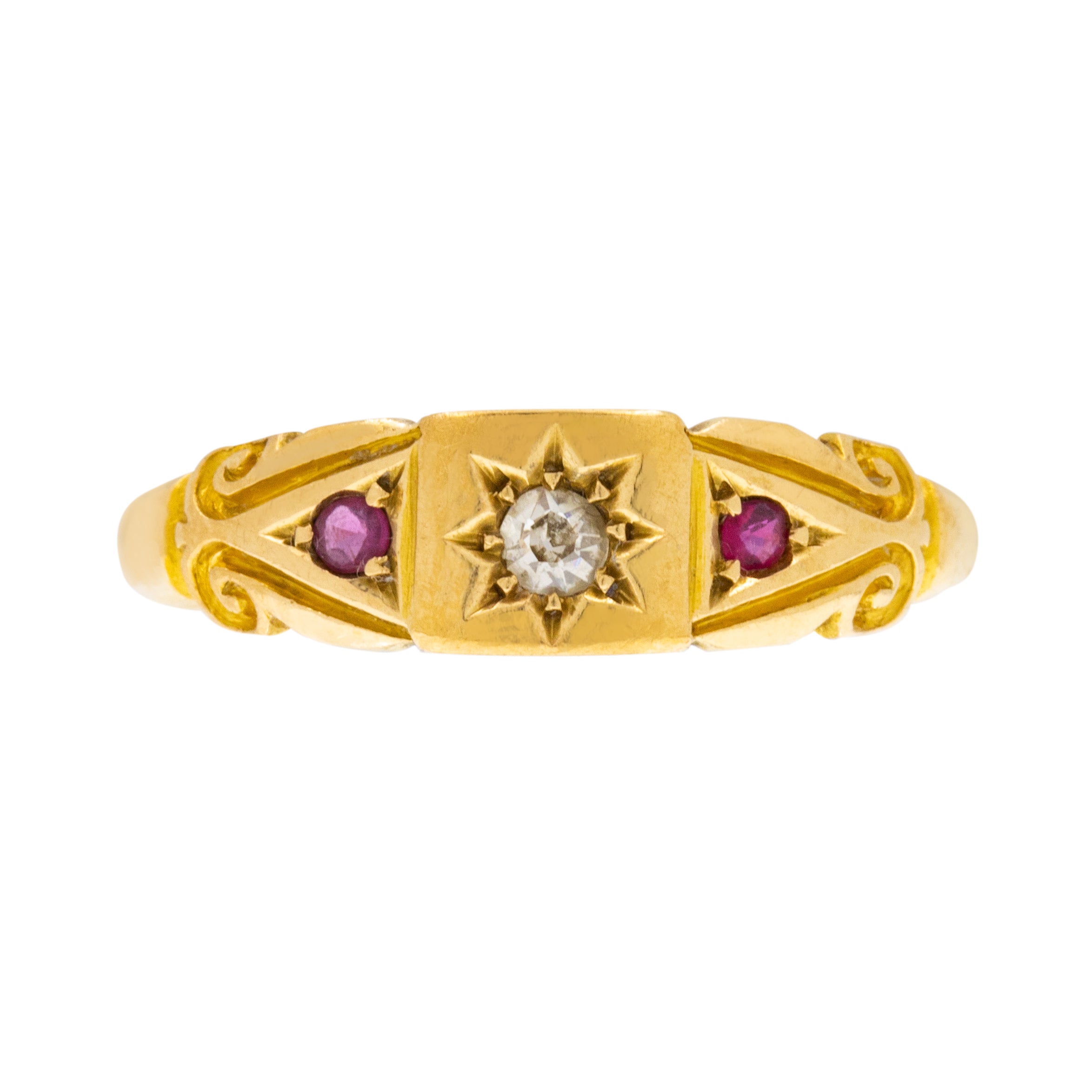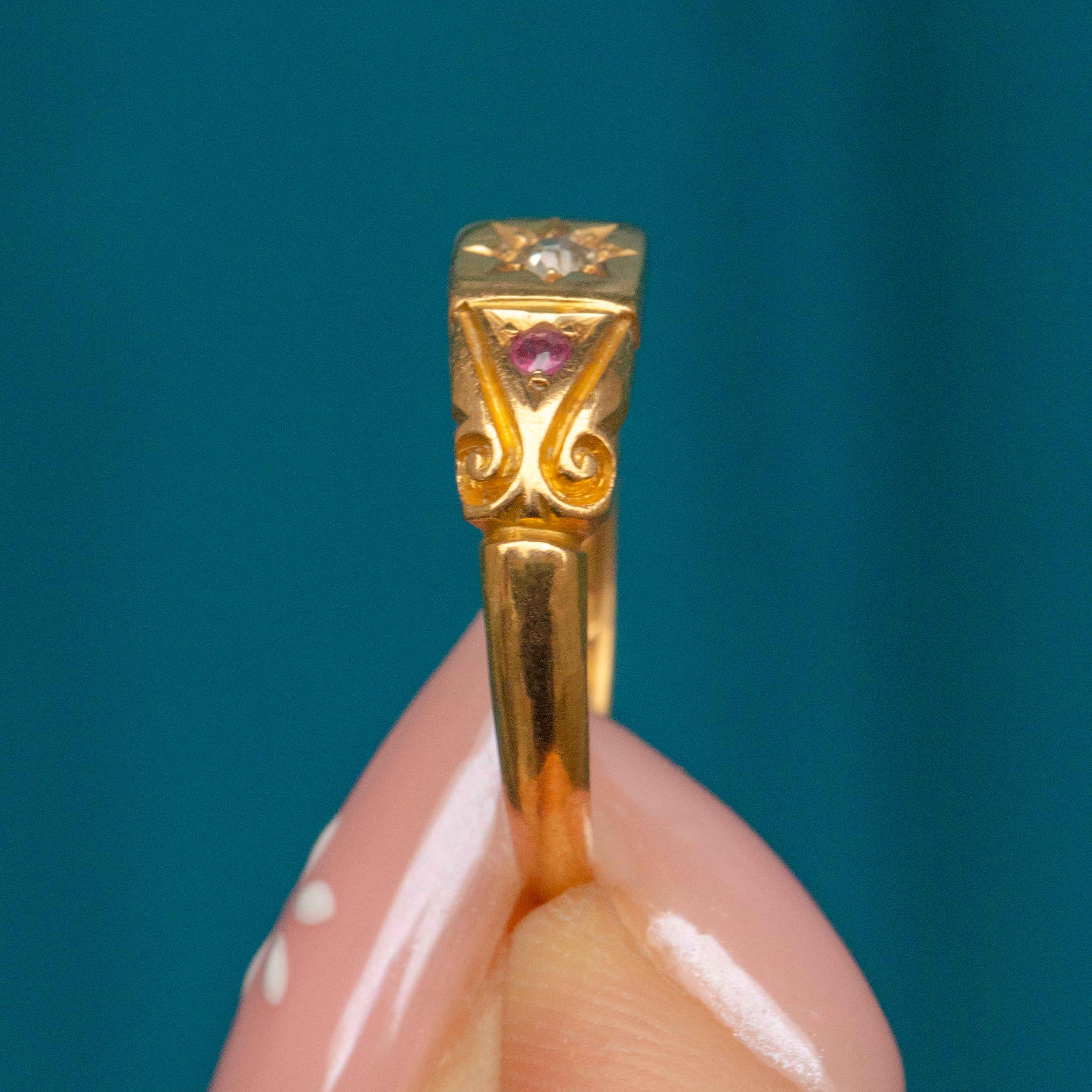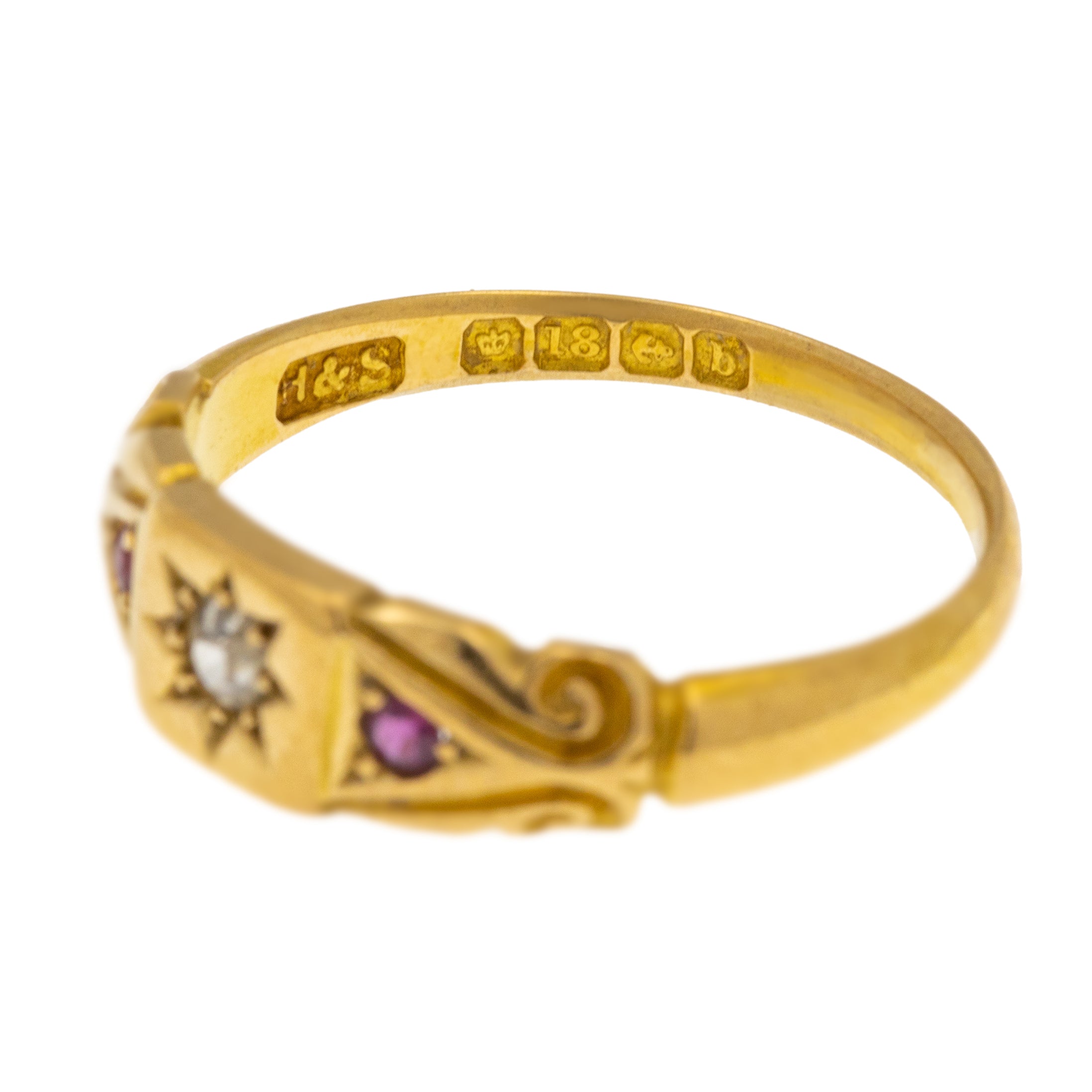 アンティーク 18ct ゴールド ルビー ダイヤモンド ジプシーリング