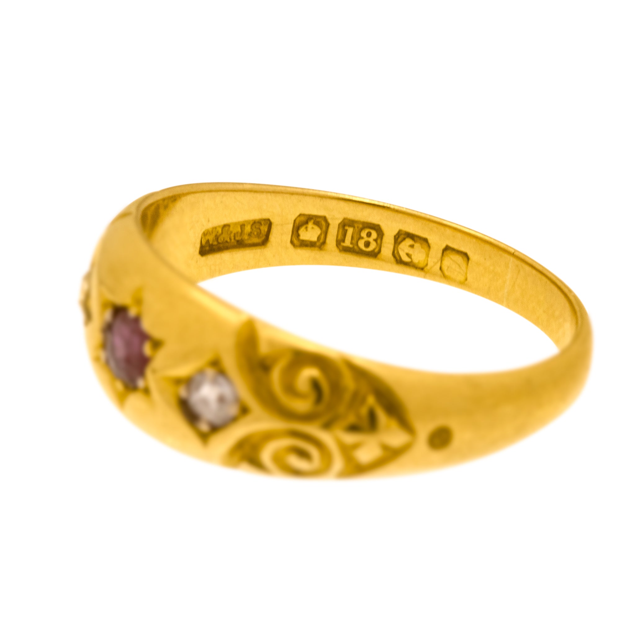 Antique 18ct Gold Ruby Diamond Gypsy Ring