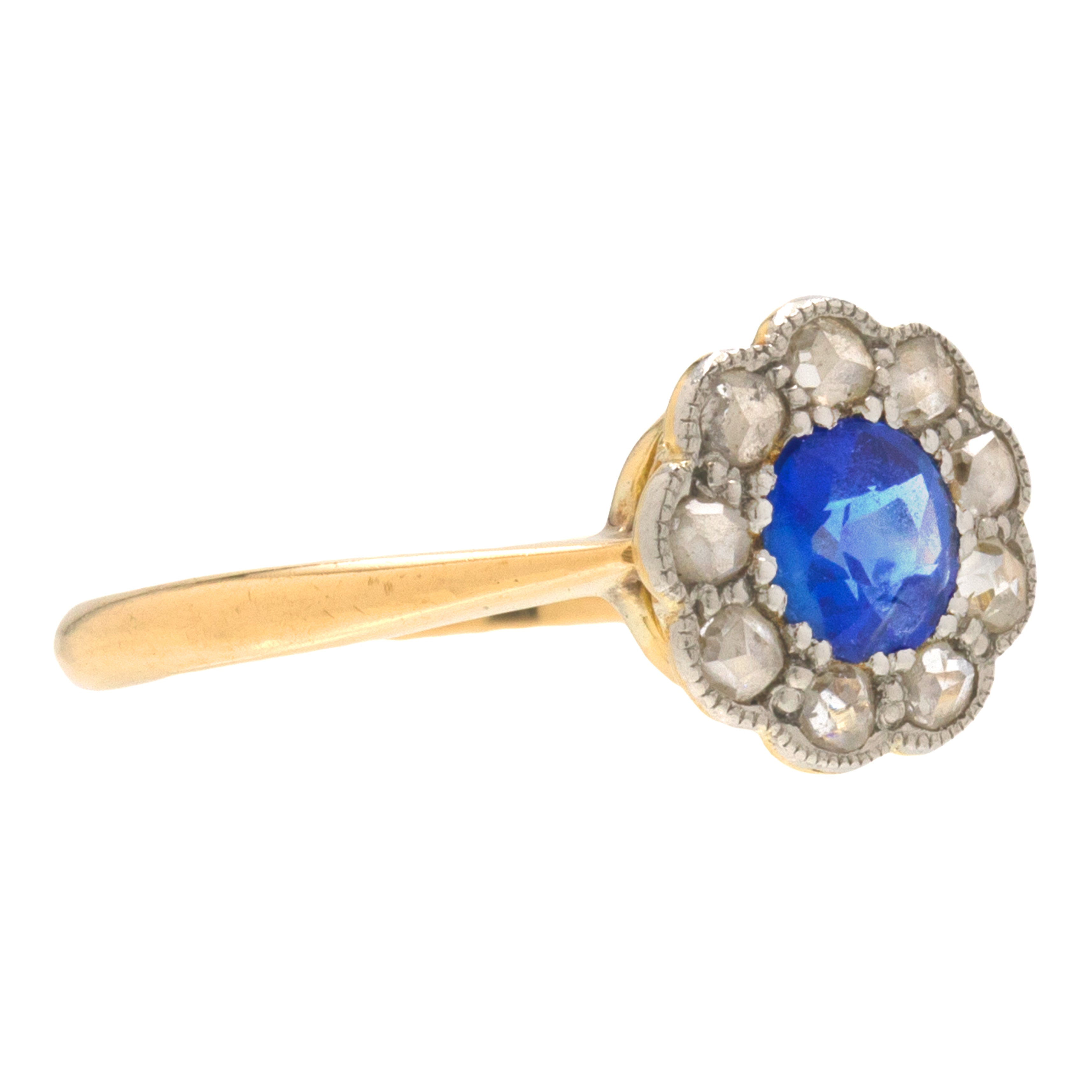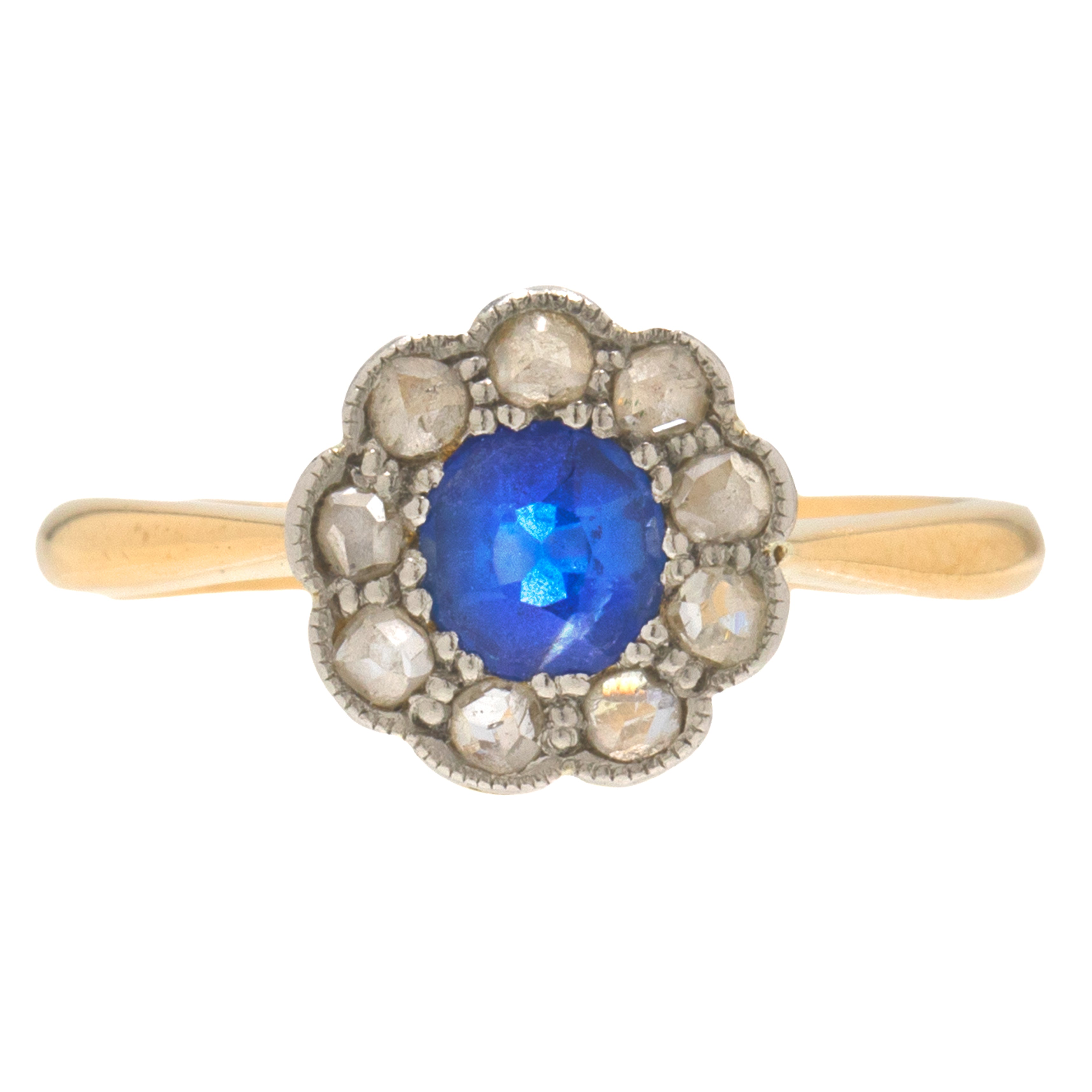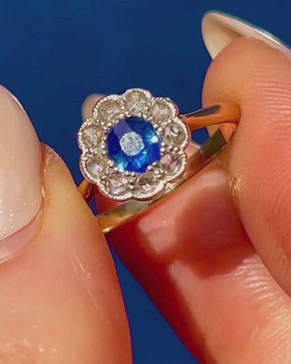 アンティーク 18ct ゴールド サファイア ダイヤモンド フラワークラスターリング、0.30ct サファイア