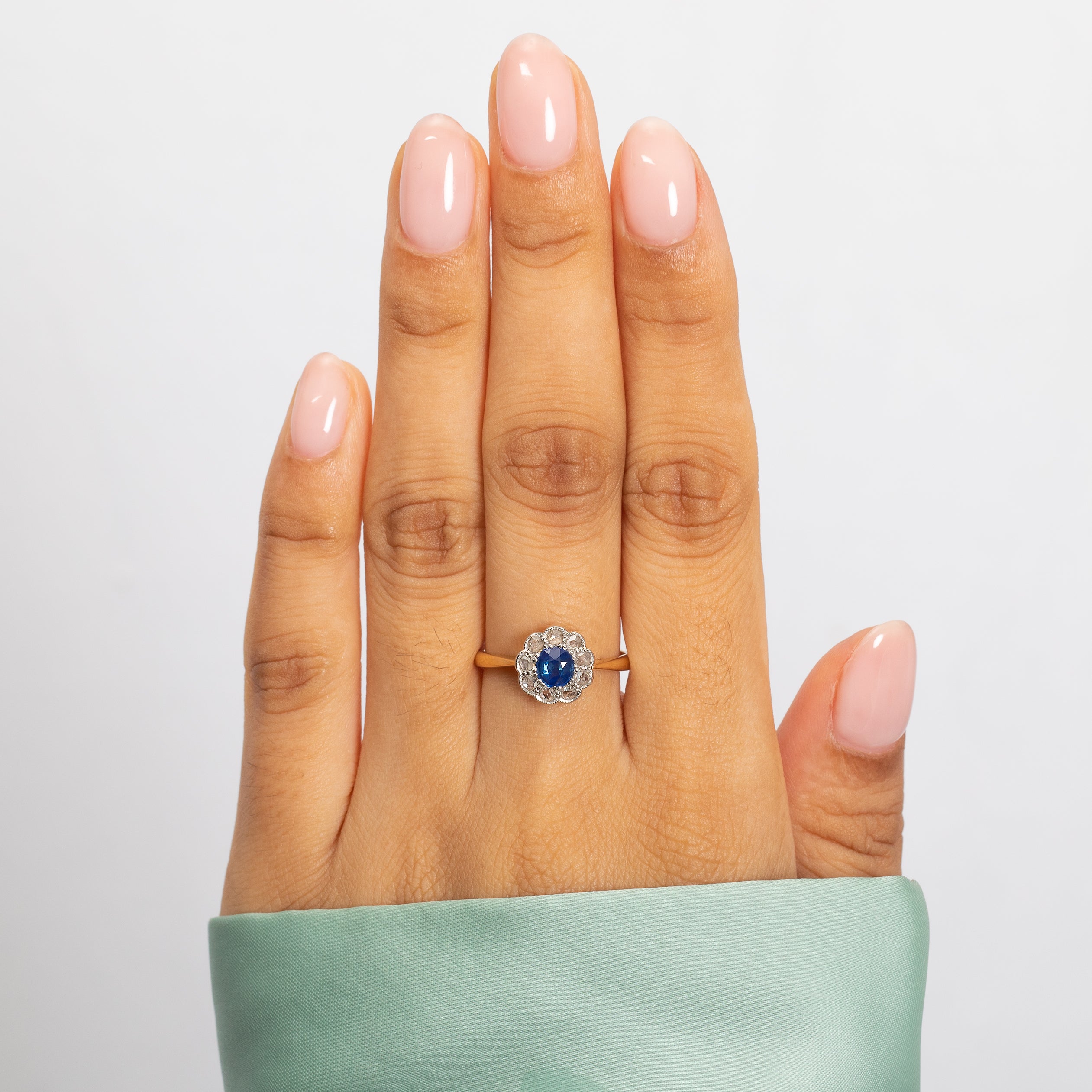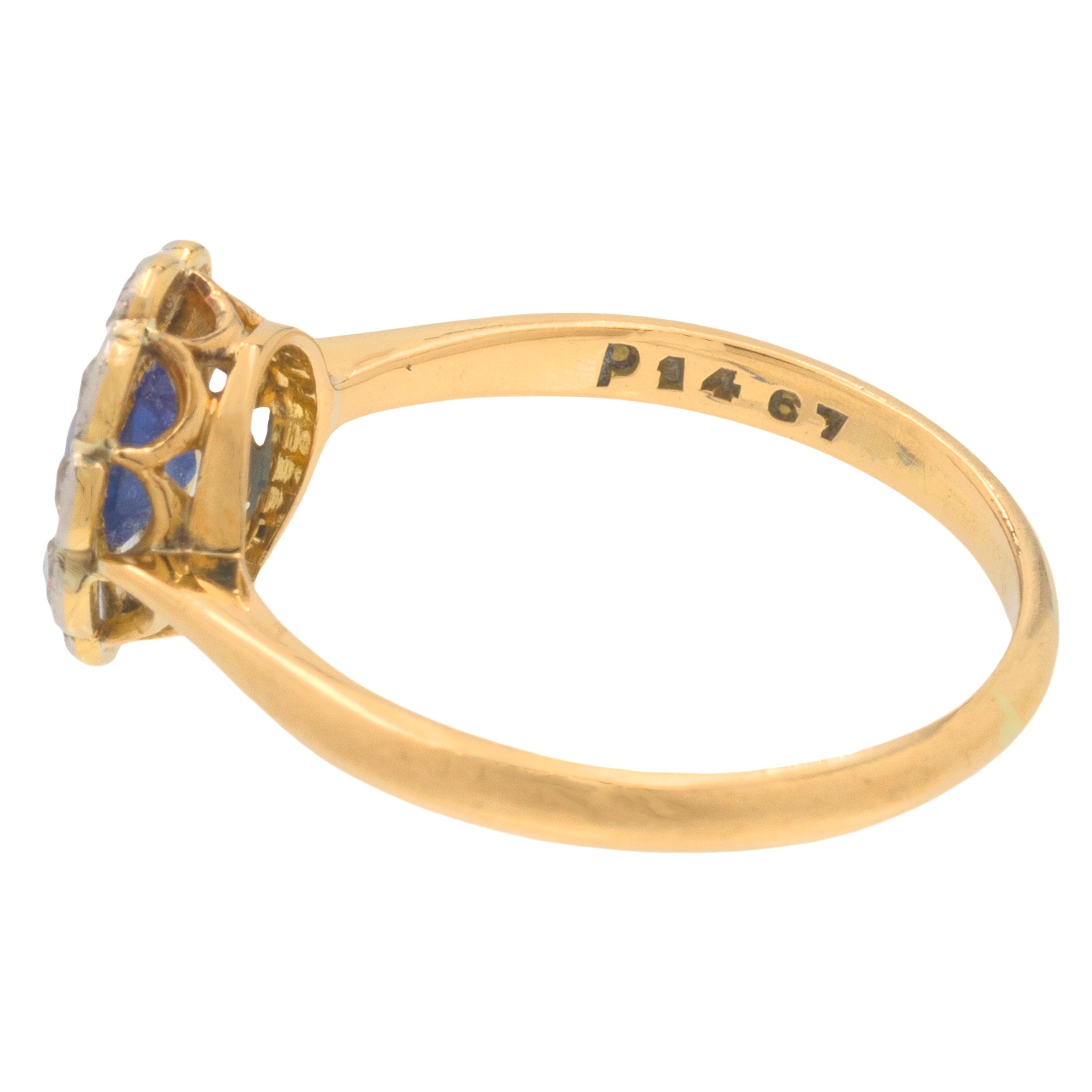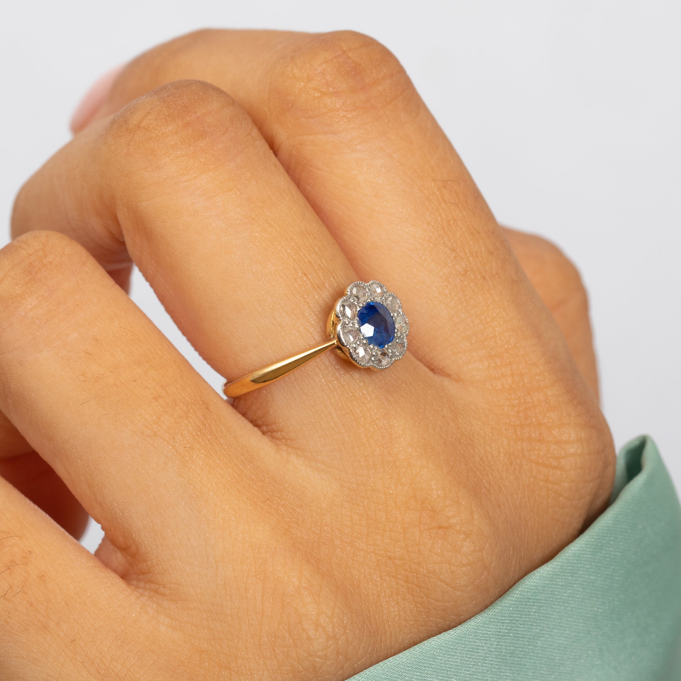 アンティーク 18ct ゴールド サファイア ダイヤモンド フラワークラスターリング、0.30ct サファイア