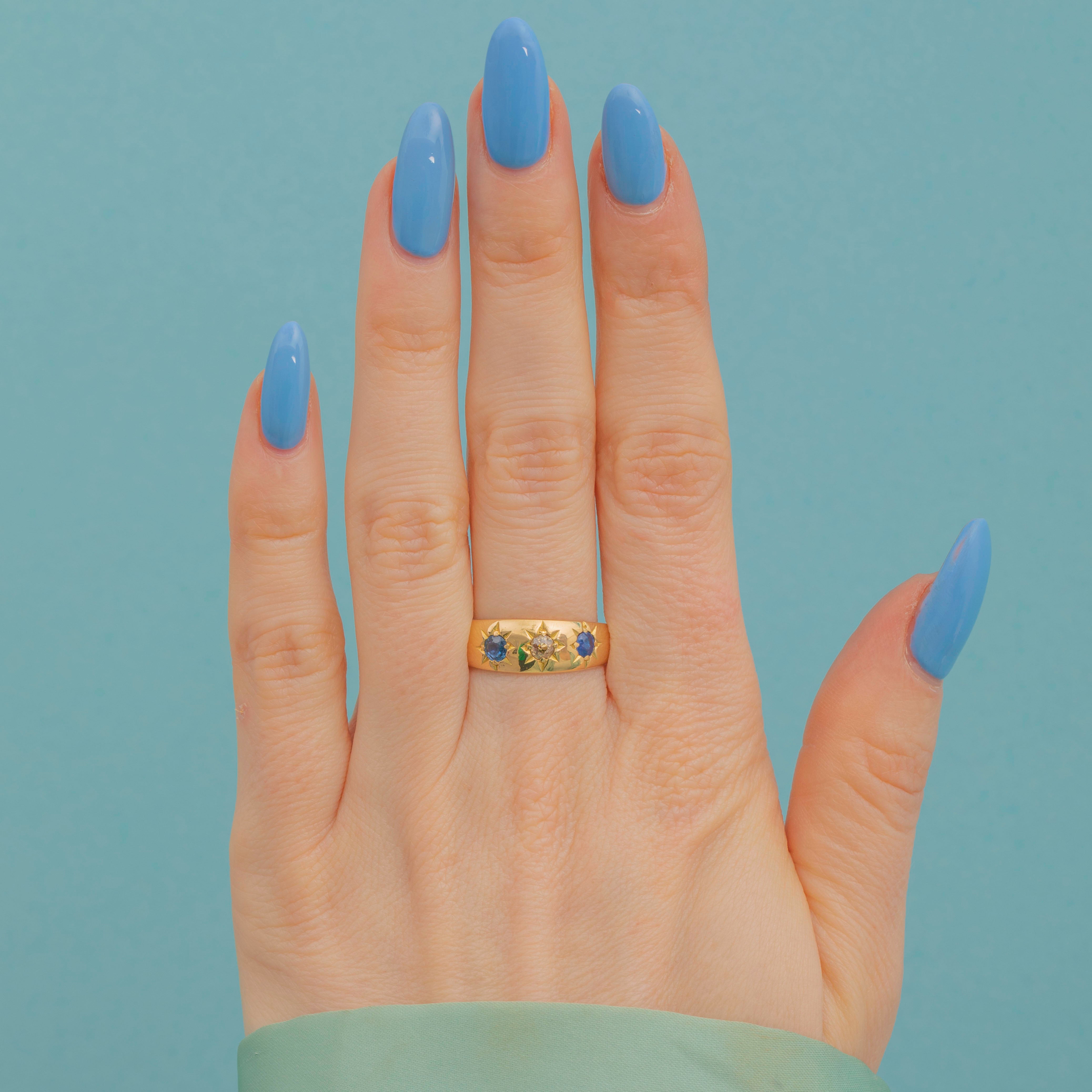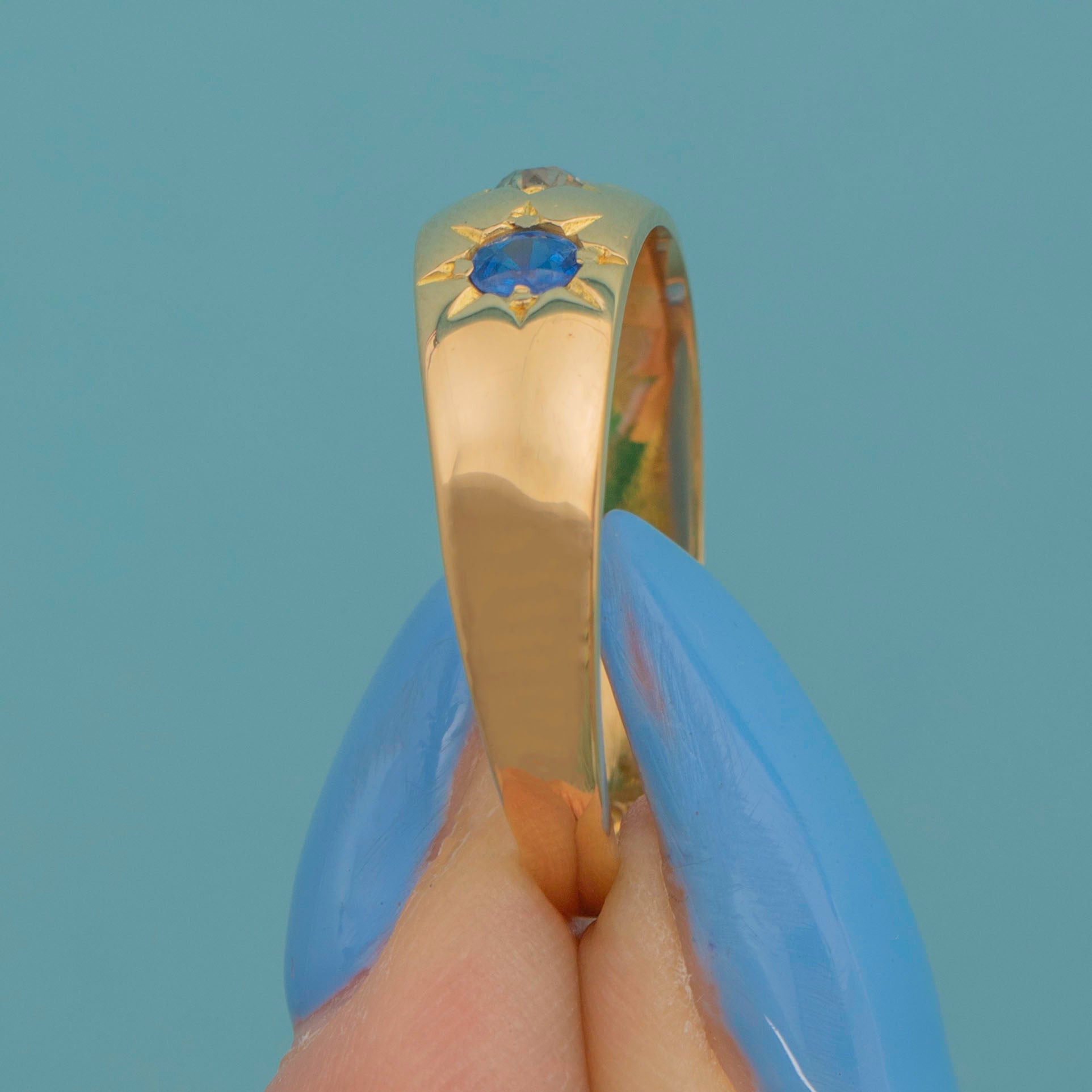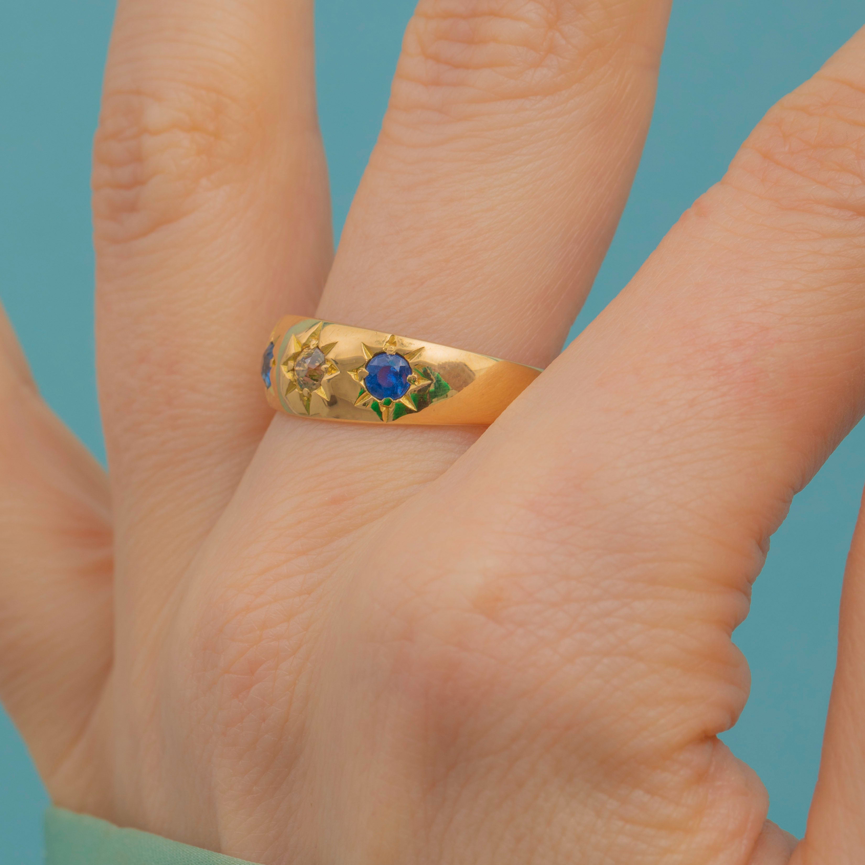 アンティーク 18ct ゴールド サファイア ダイヤモンド ジプシーリング、約1915年製