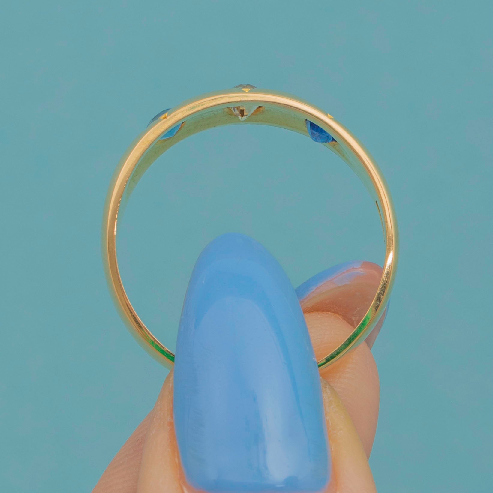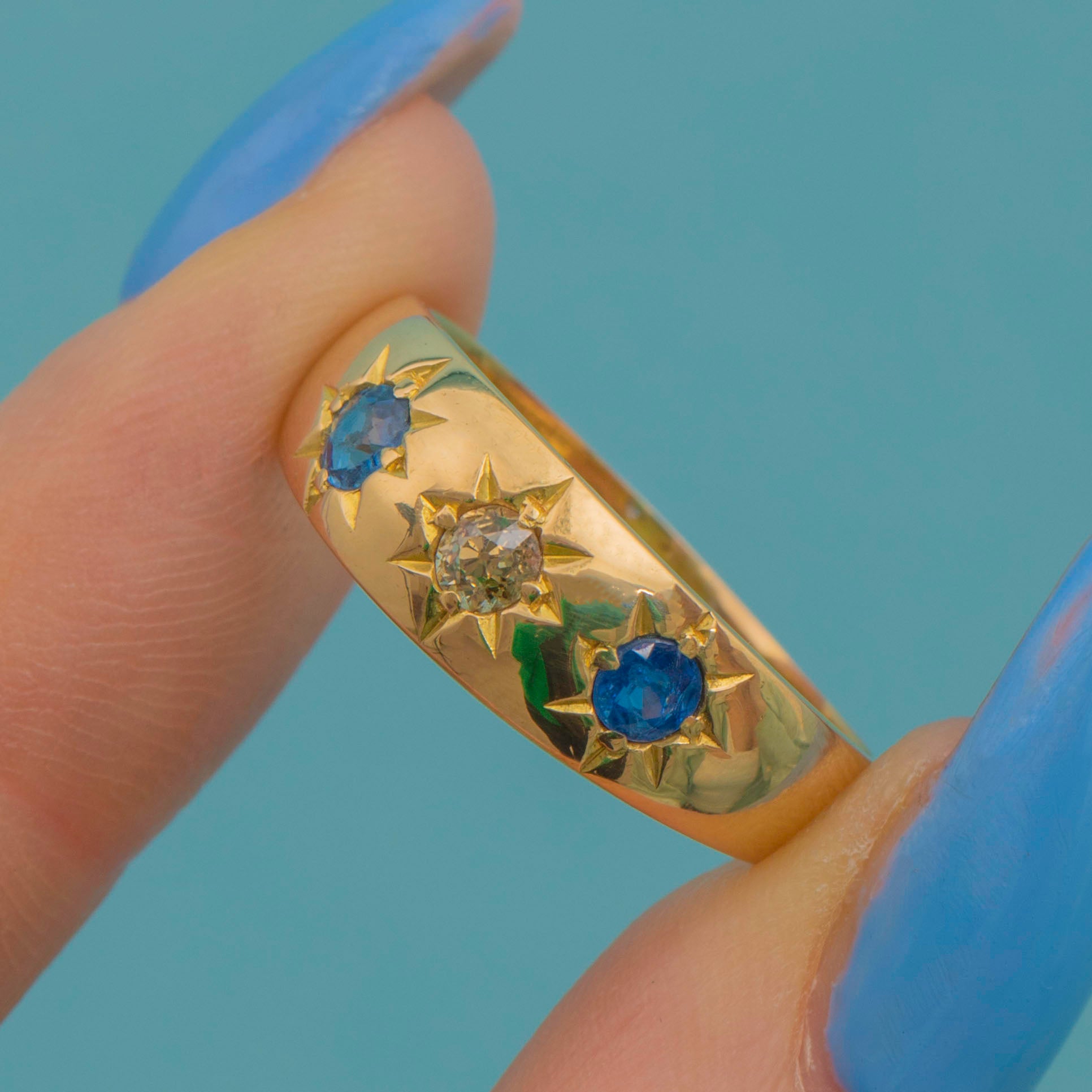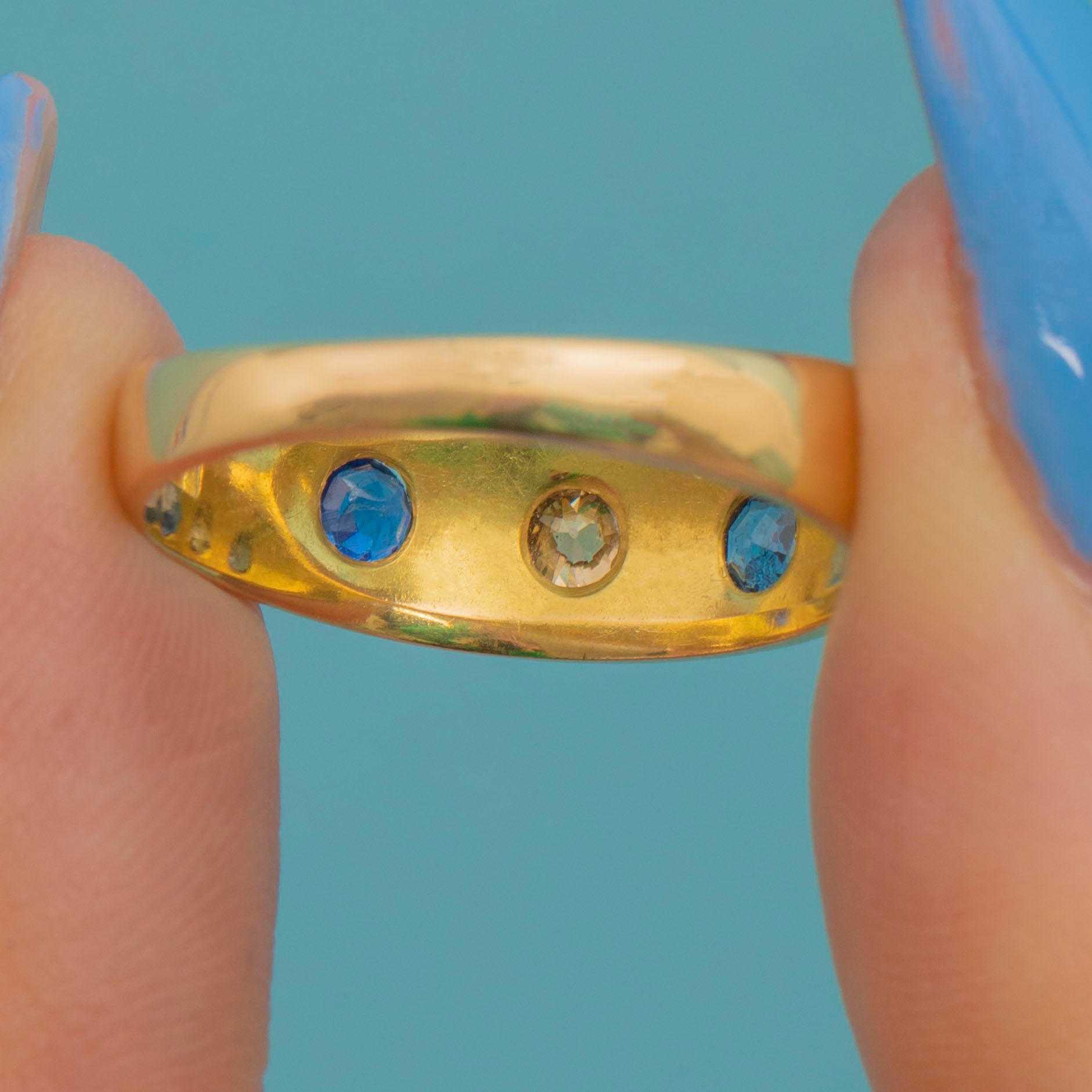 アンティーク 18ct ゴールド サファイア ダイヤモンド ジプシーリング、約1915年製