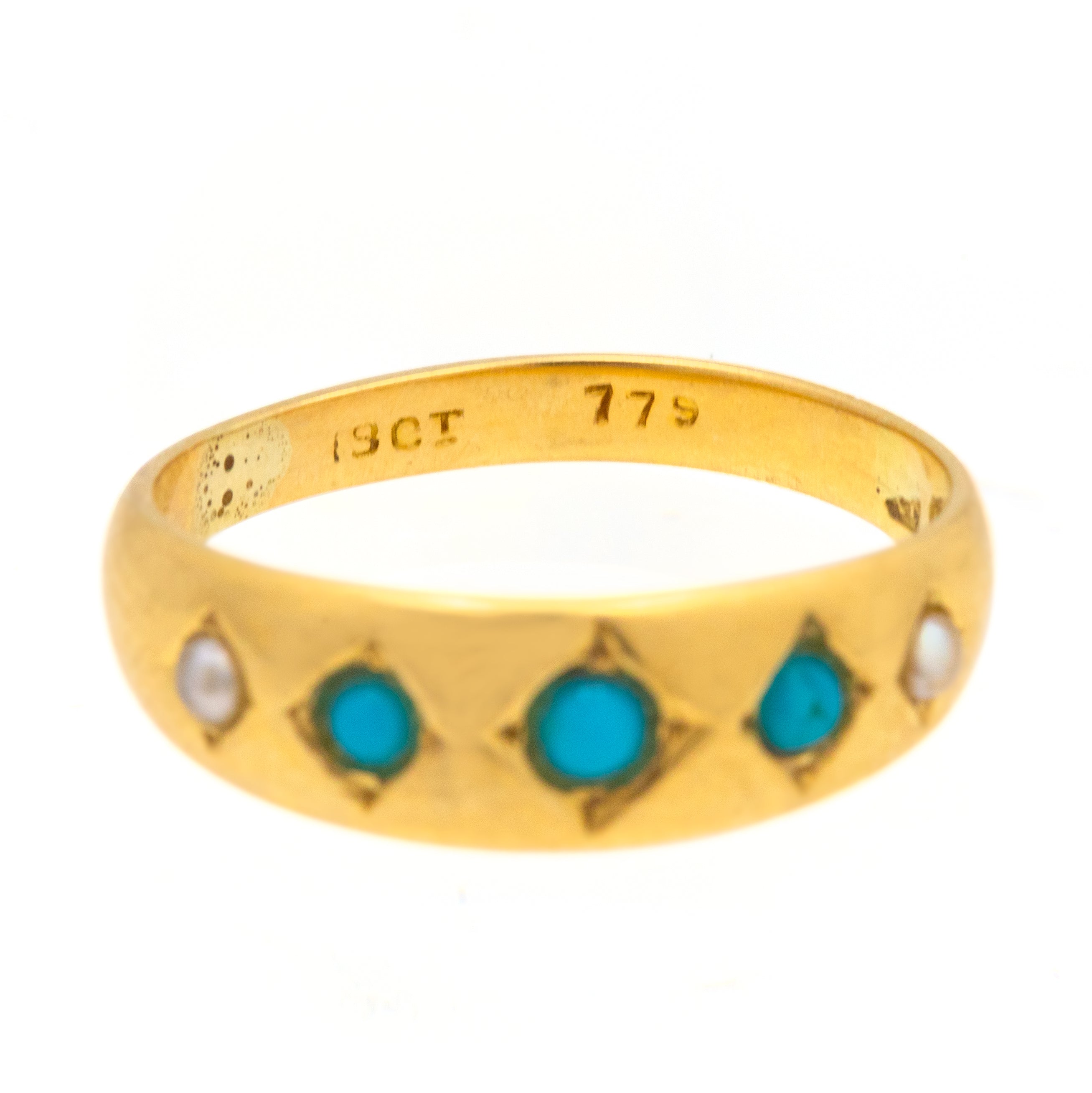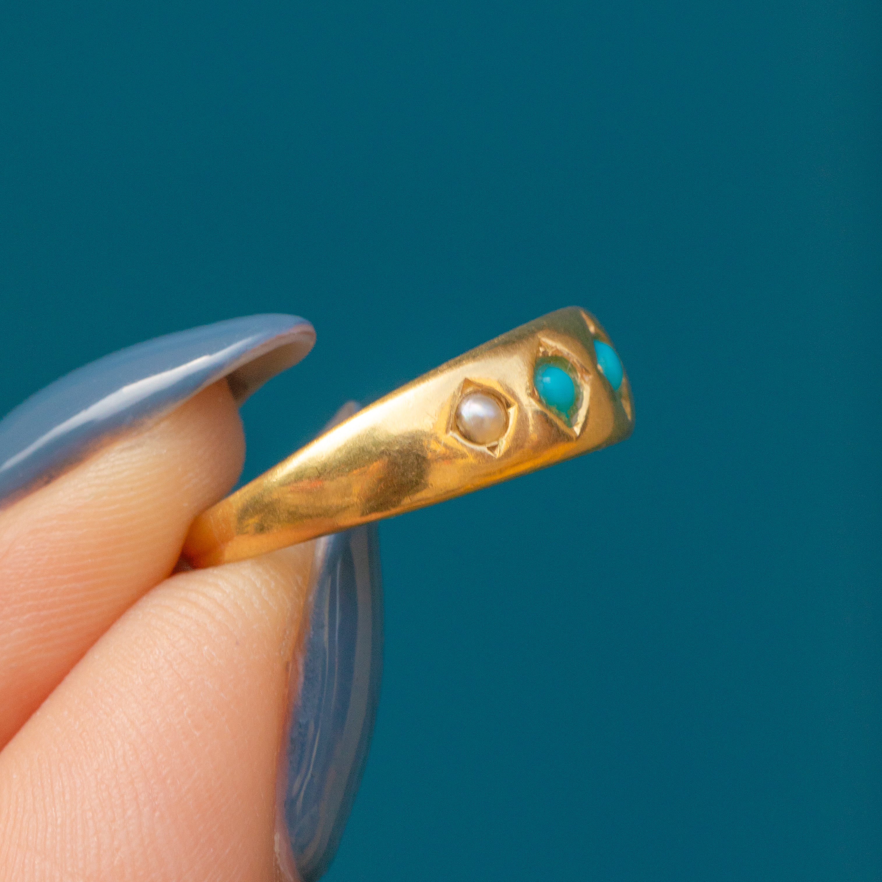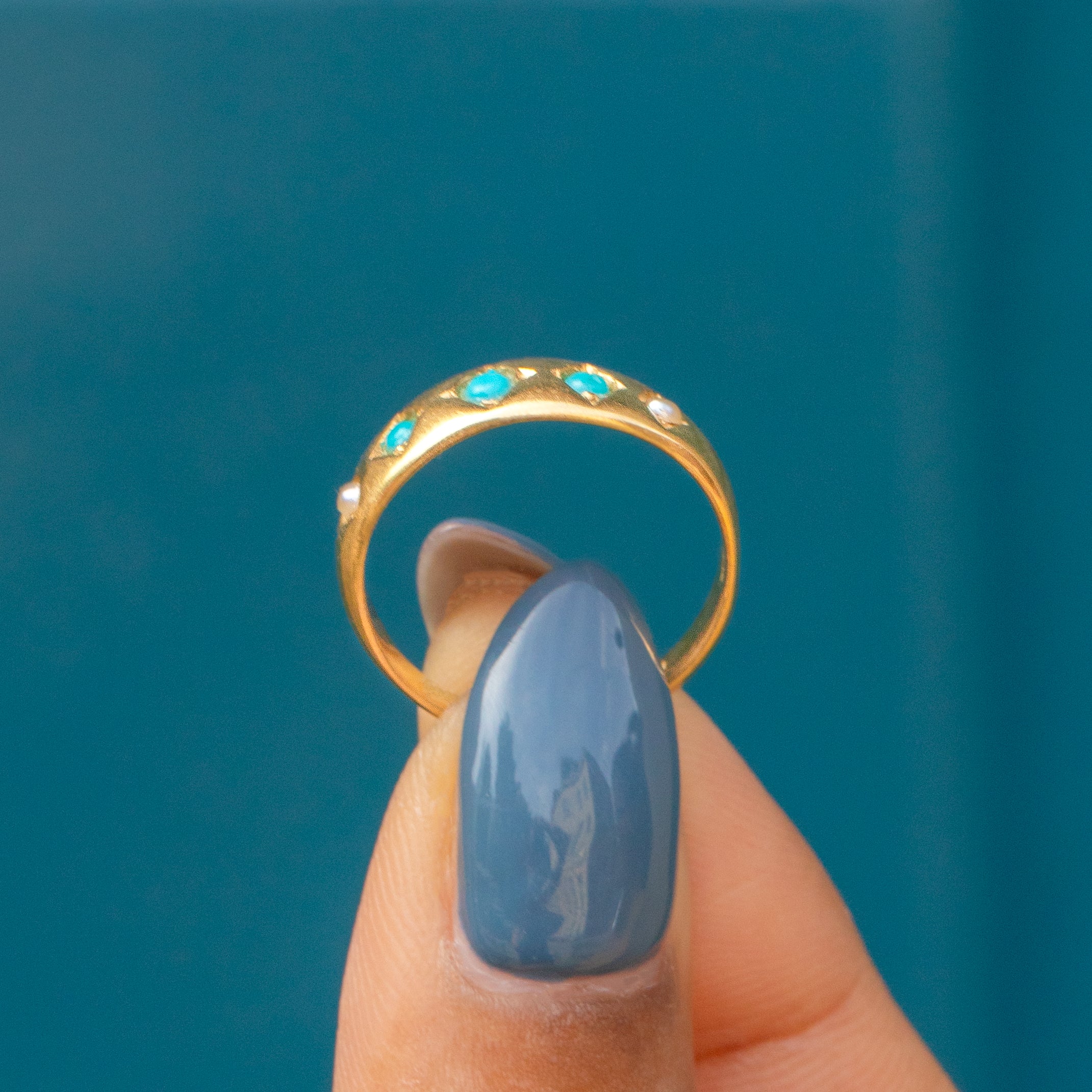 アンティーク 18ct ゴールド ターコイズ パール ジプシー リング