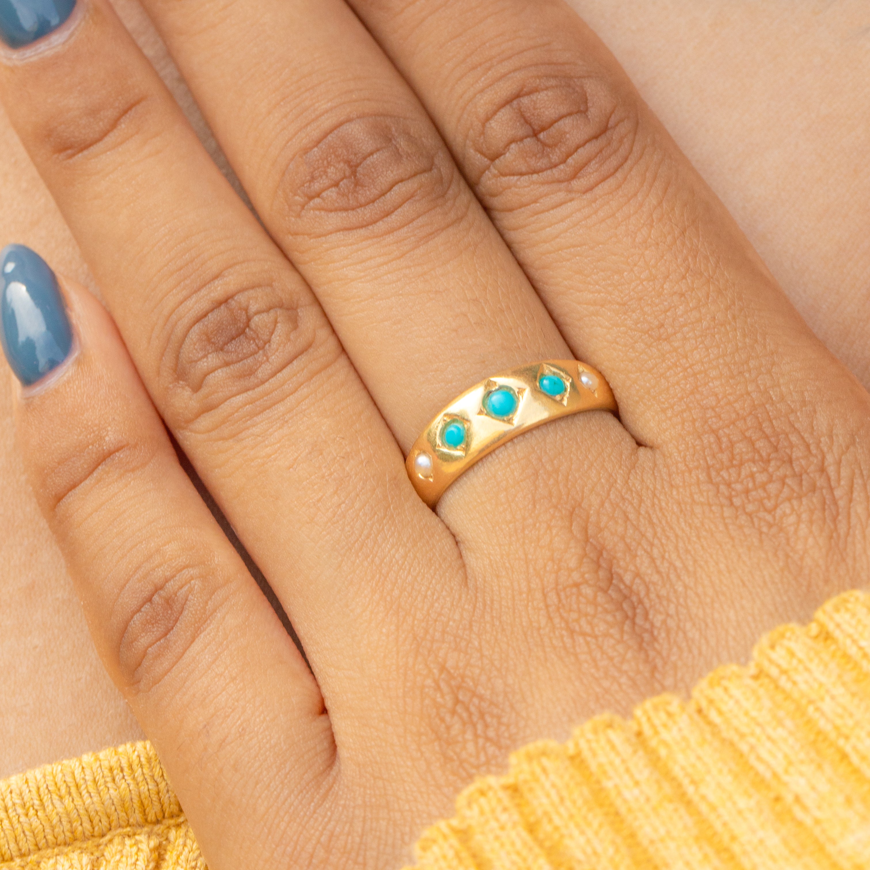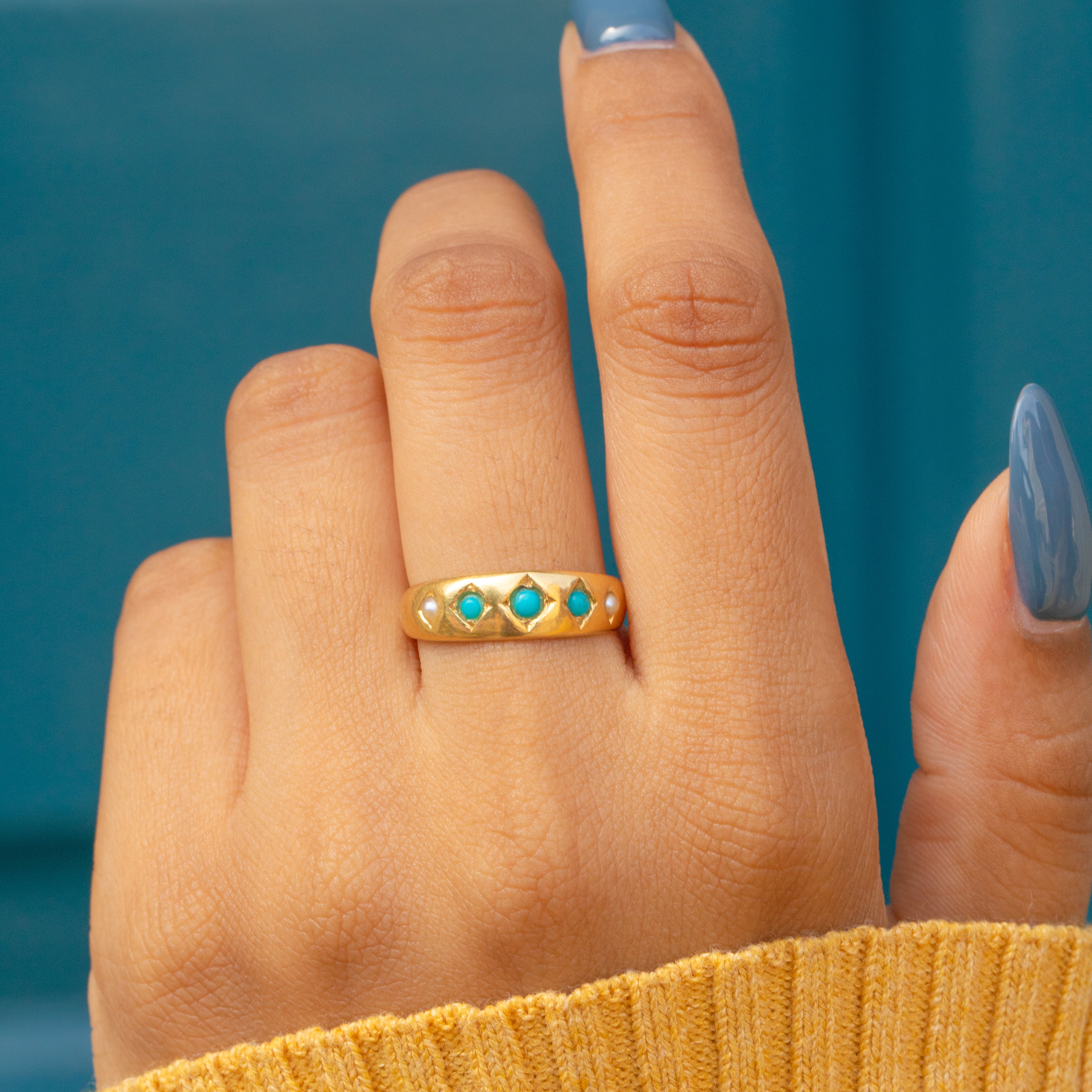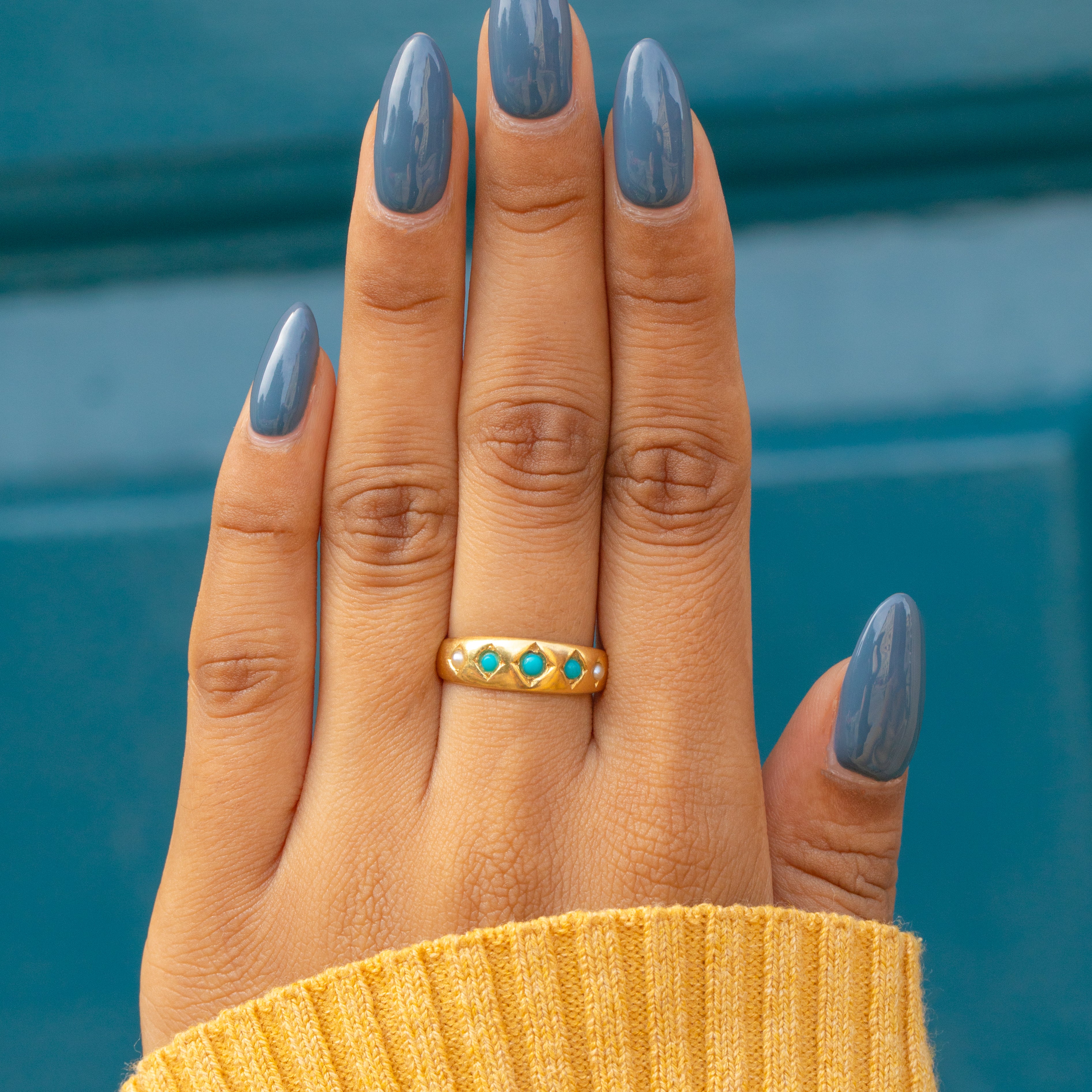 アンティーク 18ct ゴールド ターコイズ パール ジプシー リング